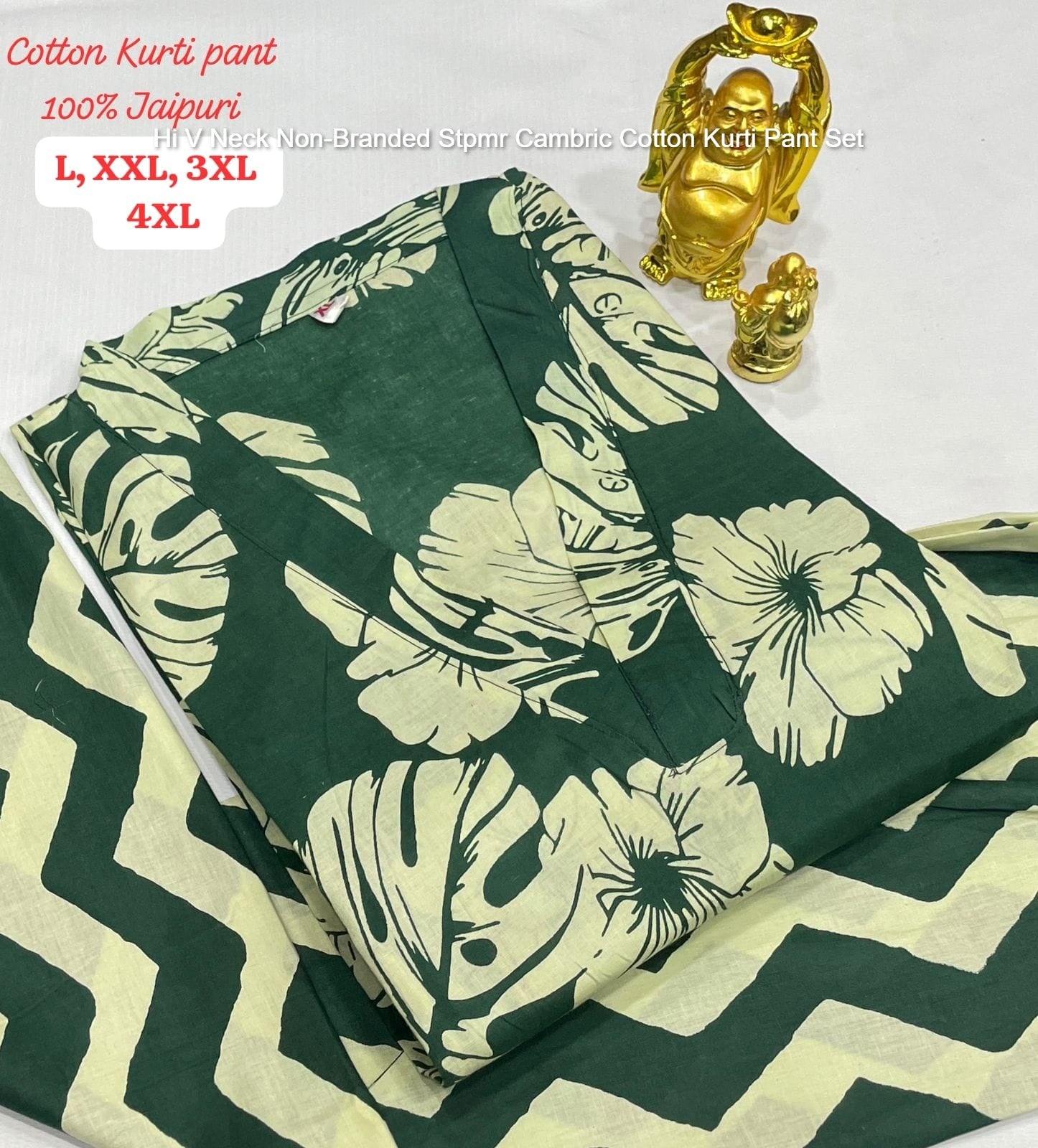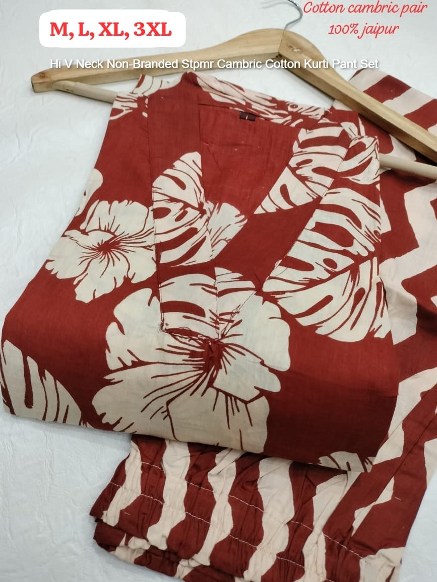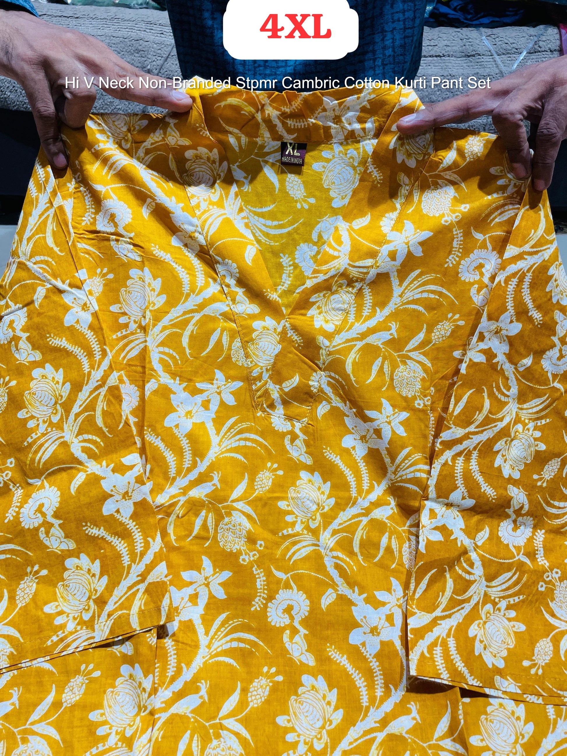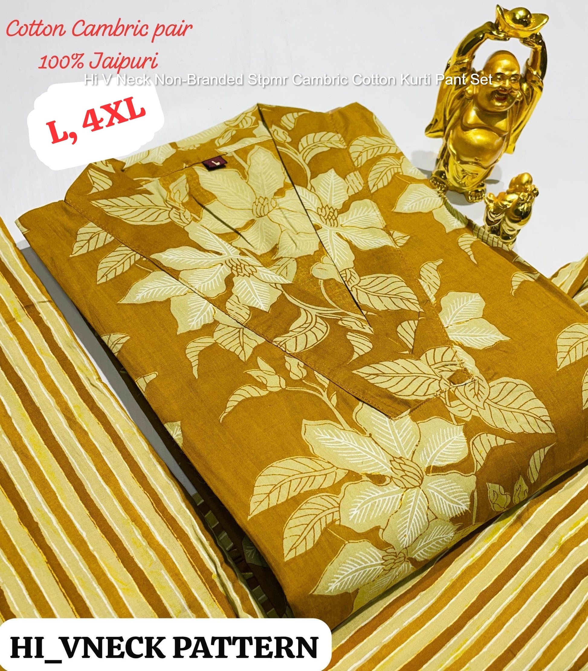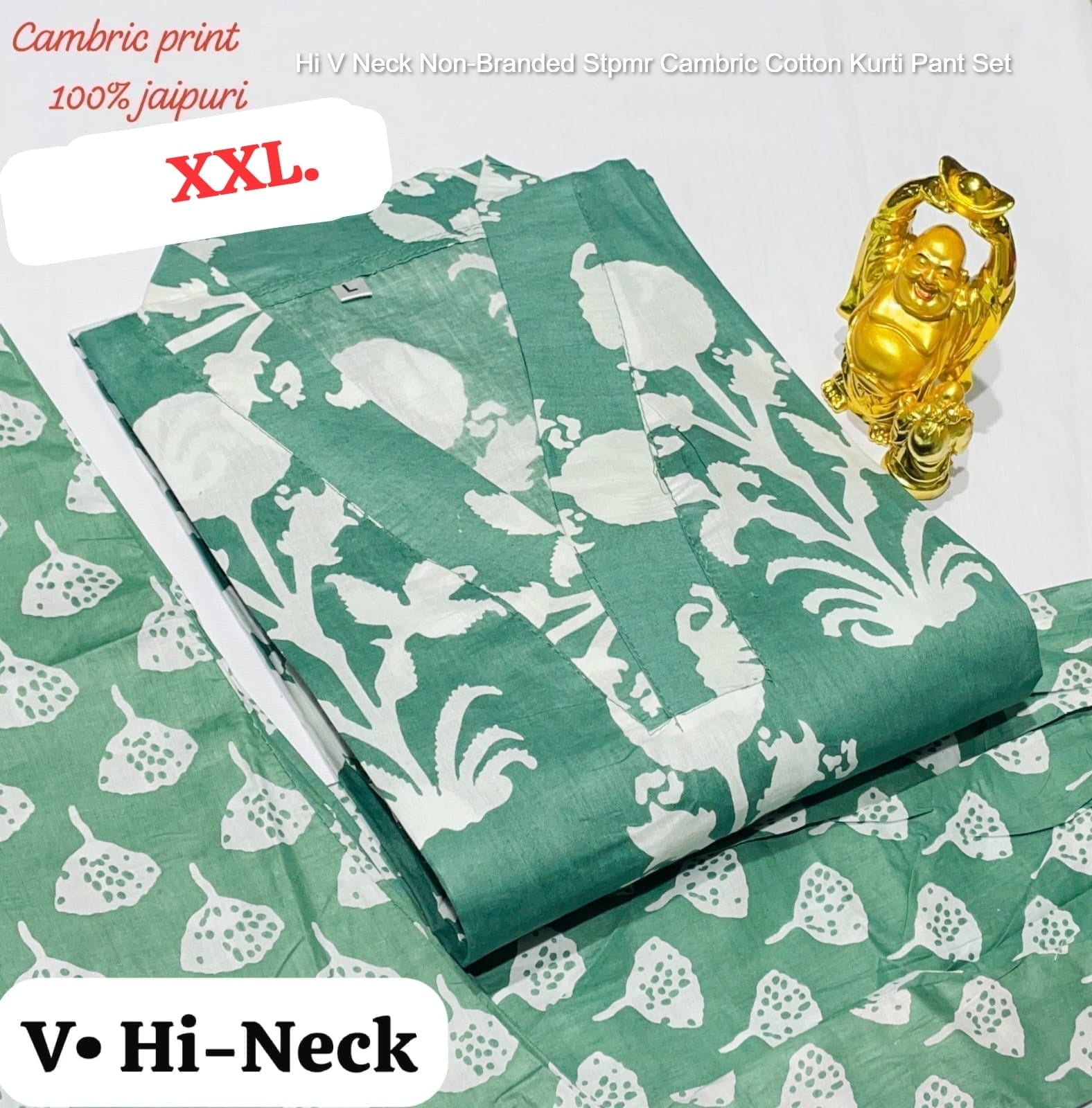 Hi V Neck Non-Branded Stpmr Cambric Cotton Kurti Pant Set