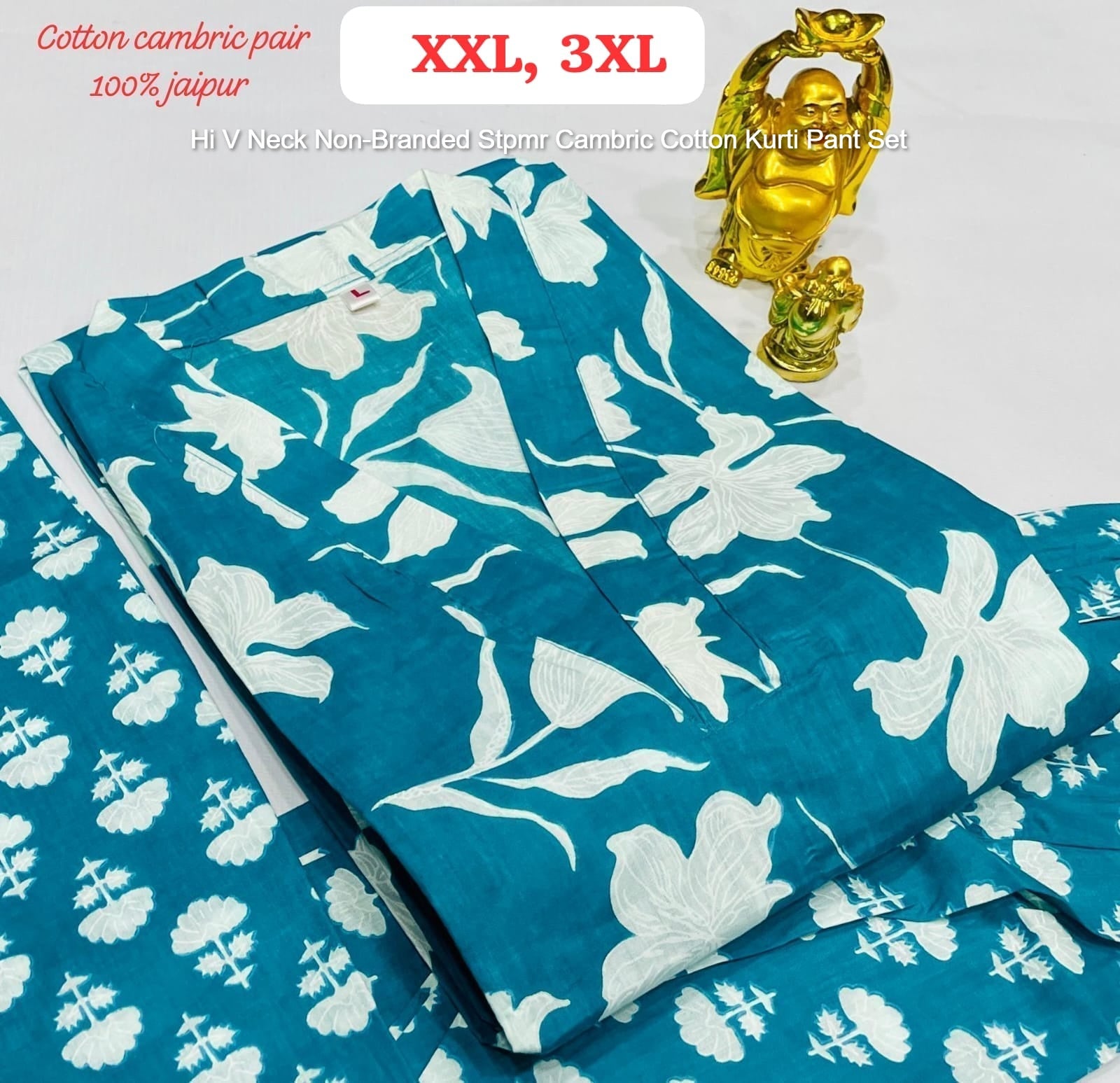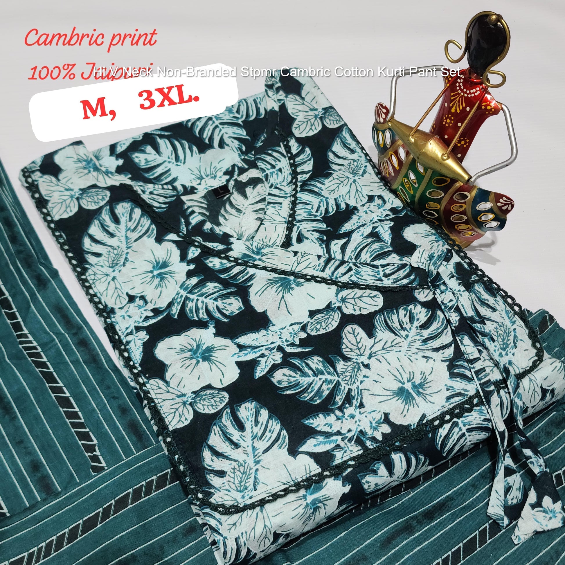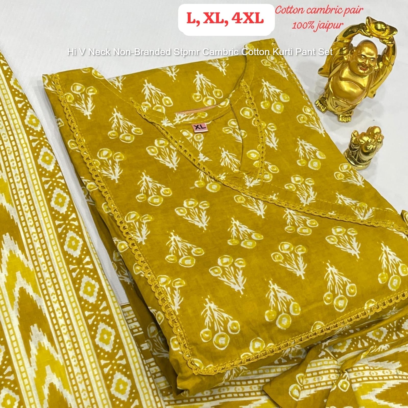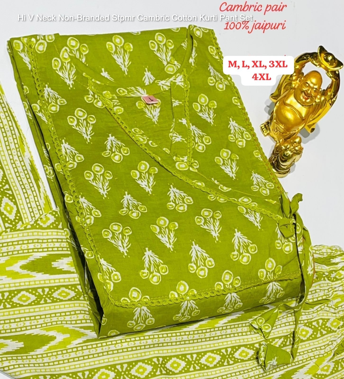 Hi V Neck Non-Branded Stpmr Cambric Cotton Kurti Pant Set