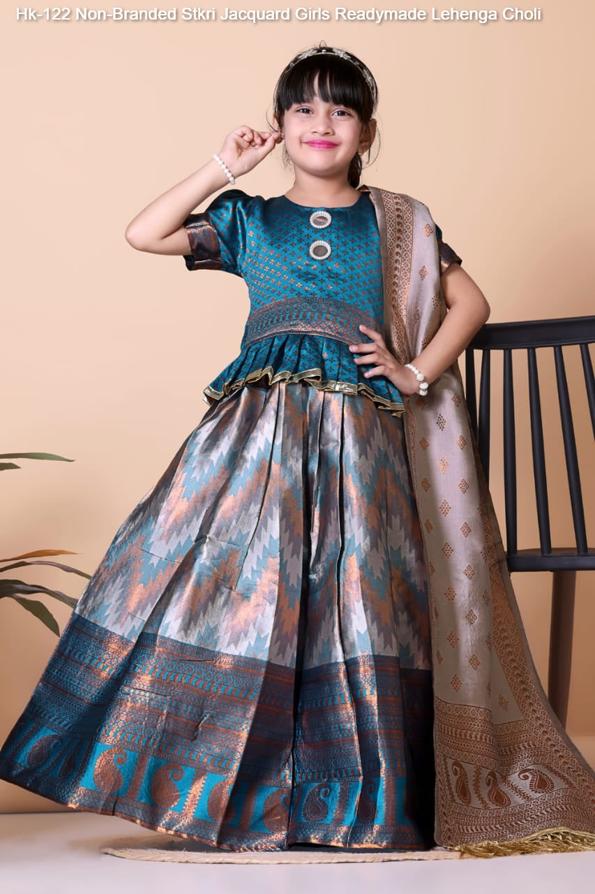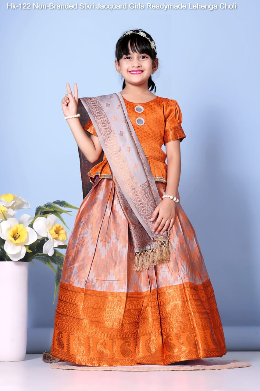 Hk-122 Non-Branded Stkri Jacquard Girls Readymade Lehenga Choli
