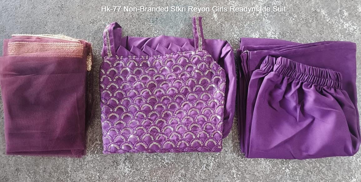 Hk-77 Non-Branded Stkri Reyon Girls Readymade Suit