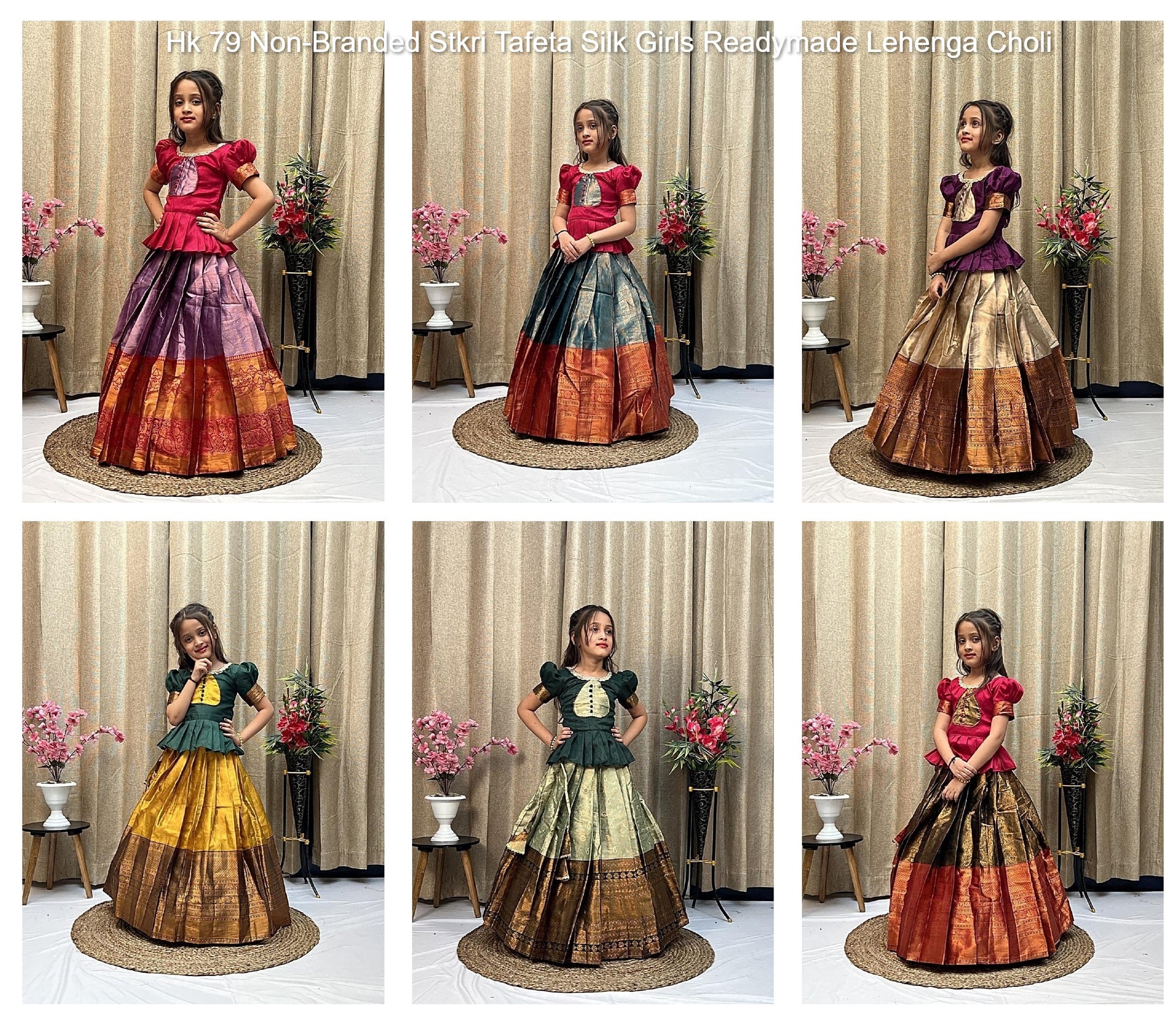 Hk 79 Non-Branded Stkri Tafeta Silk Girls Readymade Lehenga Choli