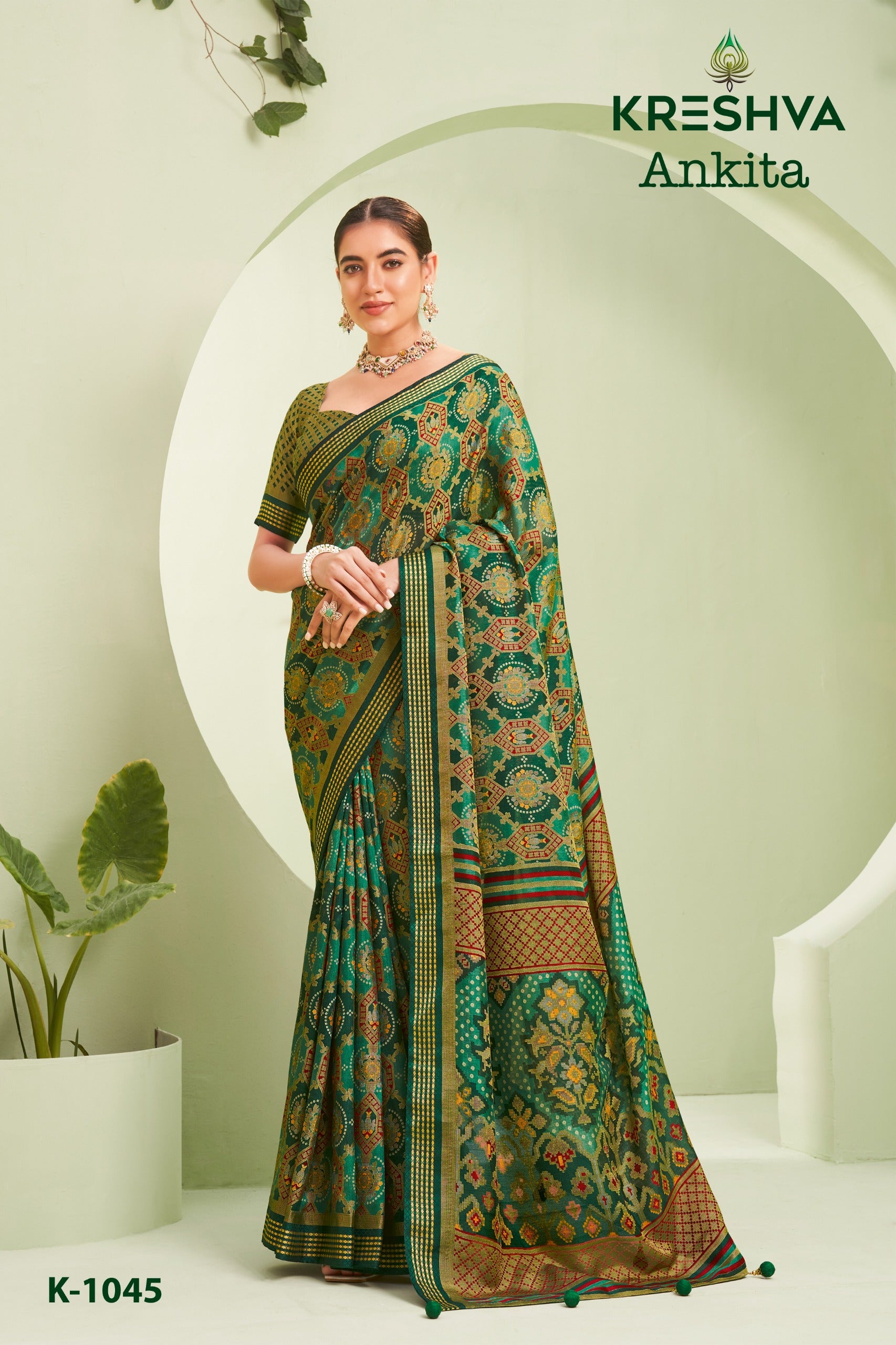 - K1045 Ankita Kreshva Georgette Sarees Dealer Ahmedabad Surat Wholesale Gujarat India Lowest Price Best Quality Buy Purchase Shipping Kurta Salwaar Kameez Also free Cash on delivery