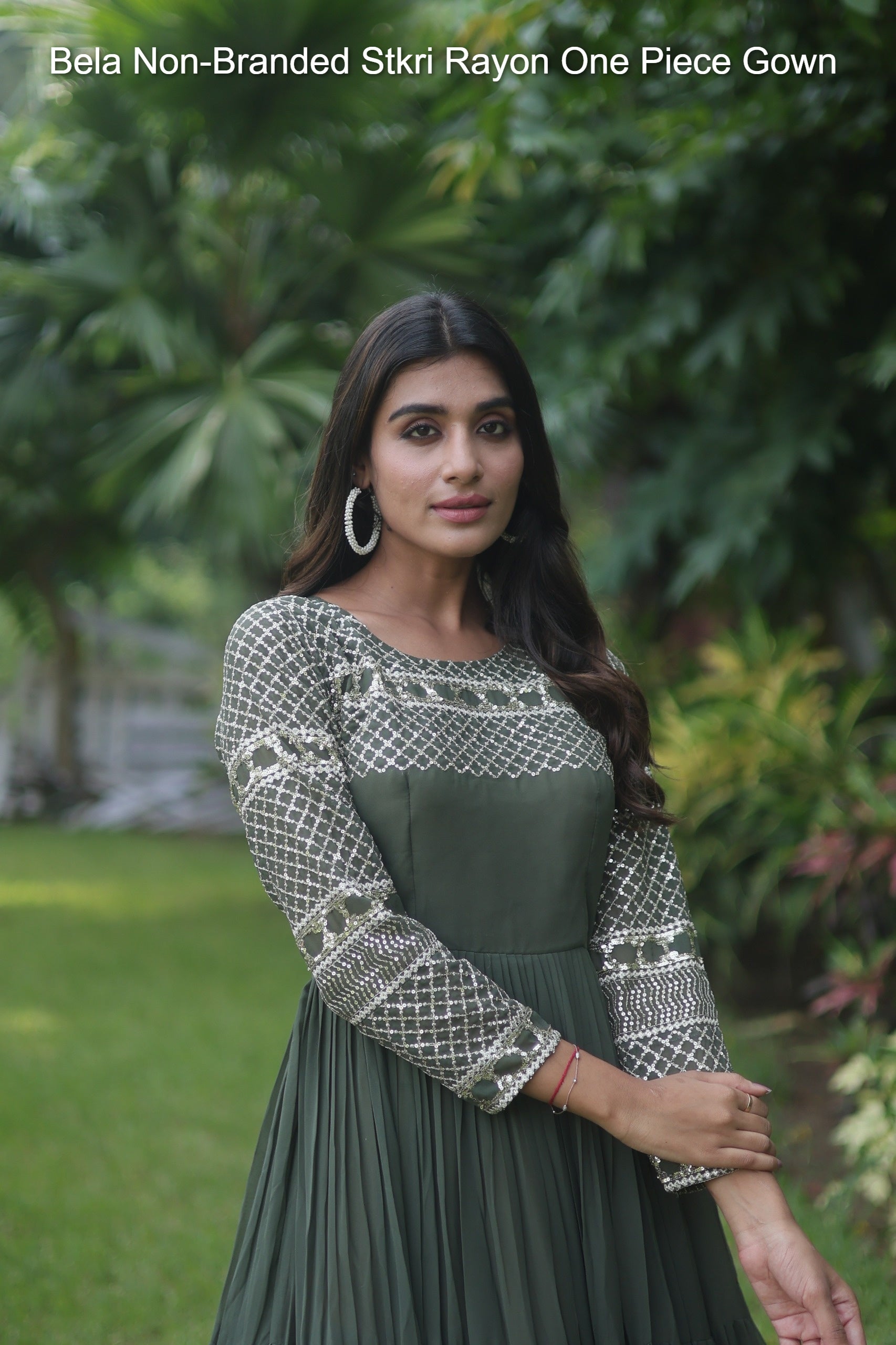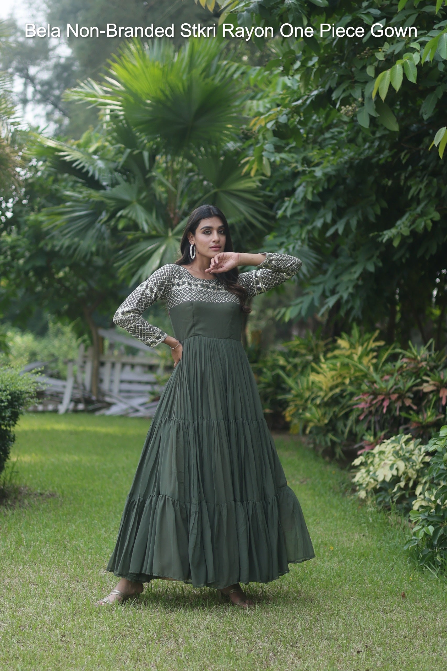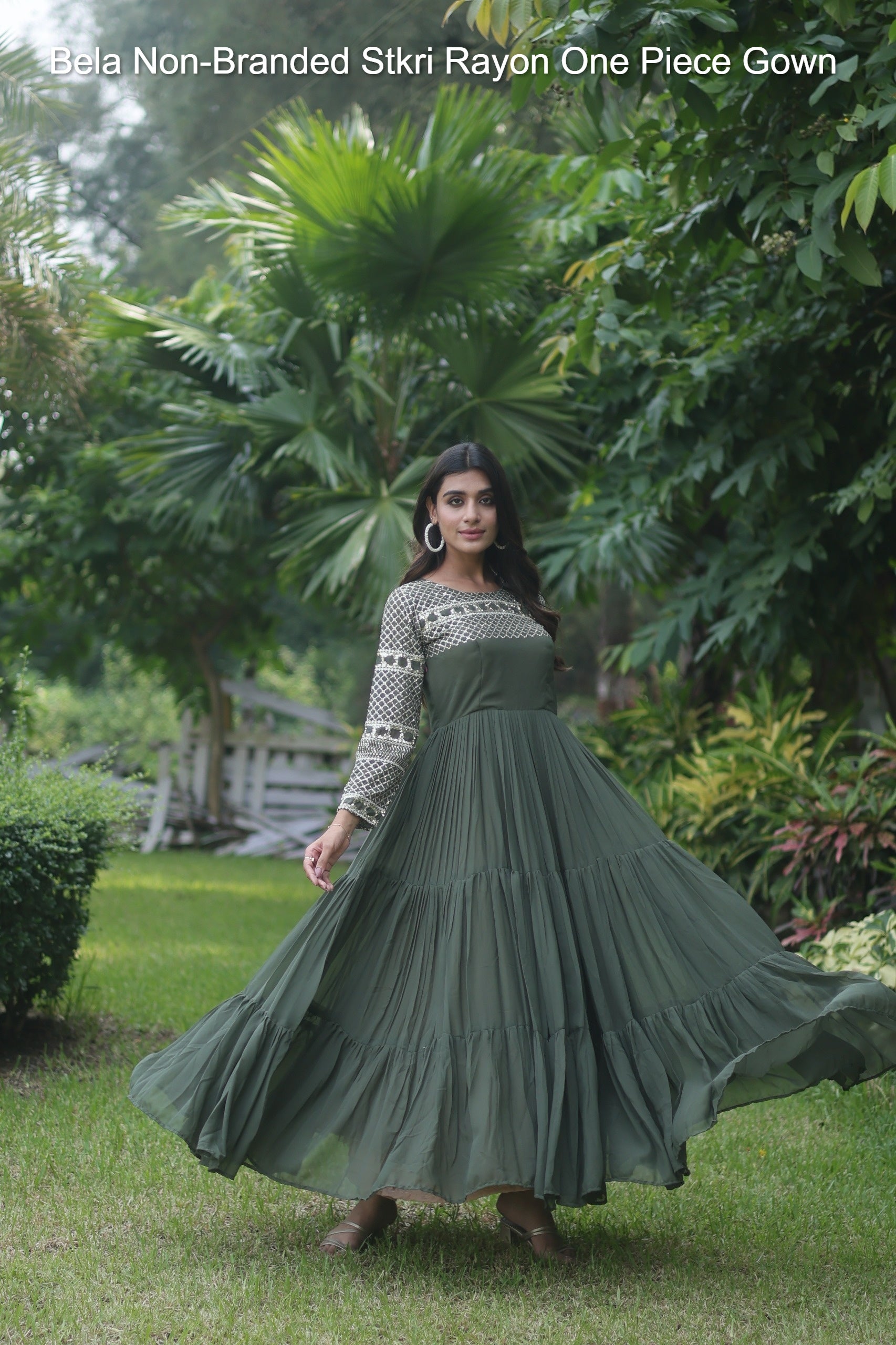 - Fabric Detail: Faux Blooming With Embroidery Zari Sequence Work Round Neck Full Sleeves, Length : 56 Apx, Flair : 12 Mtr, Linning Cotton Full Inner Top To Bottom One Piece Gown , , , Size : 40 Inch Stitched (User Can Adjust From 38 To 44 For Your Body Comfort