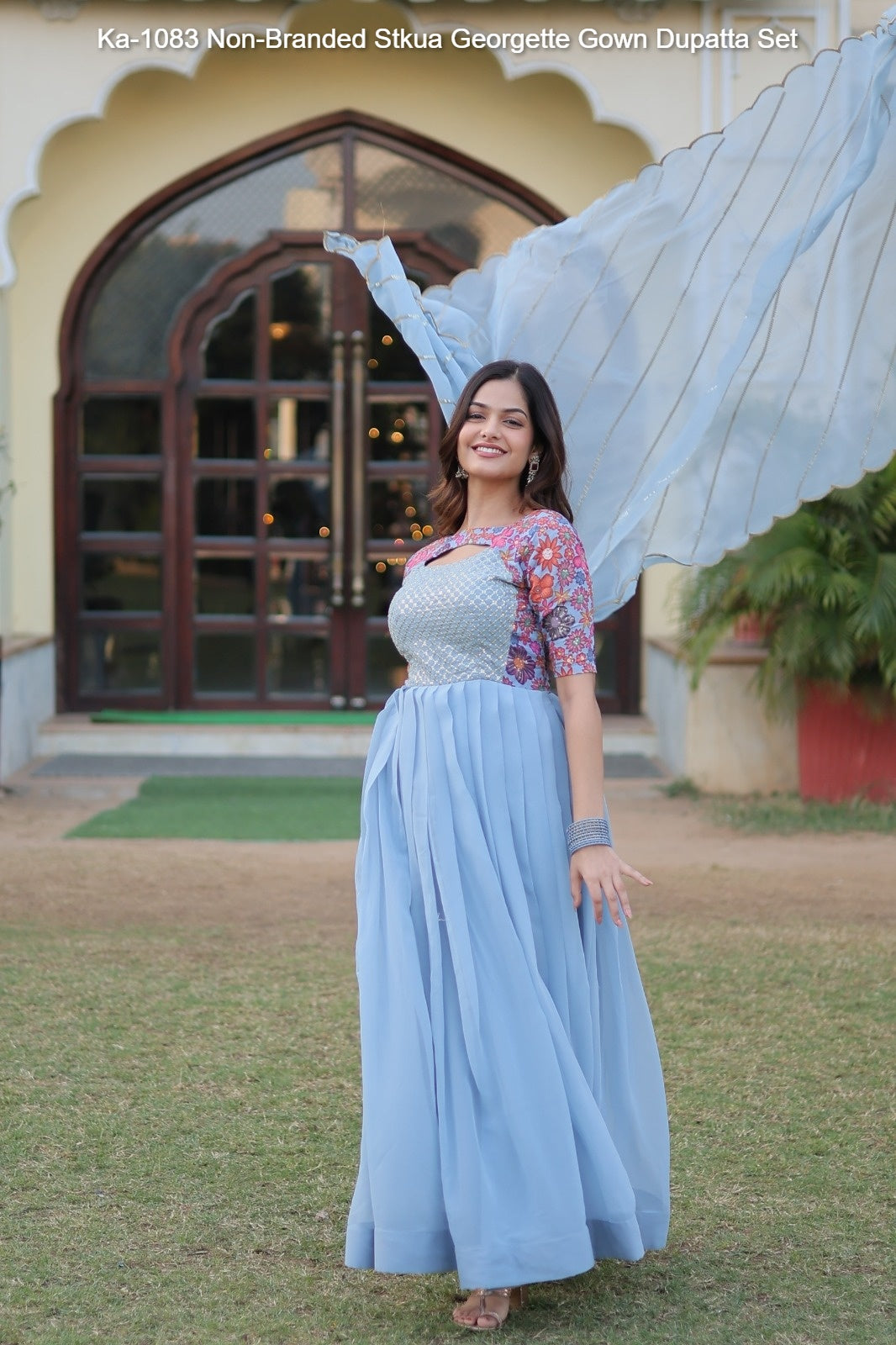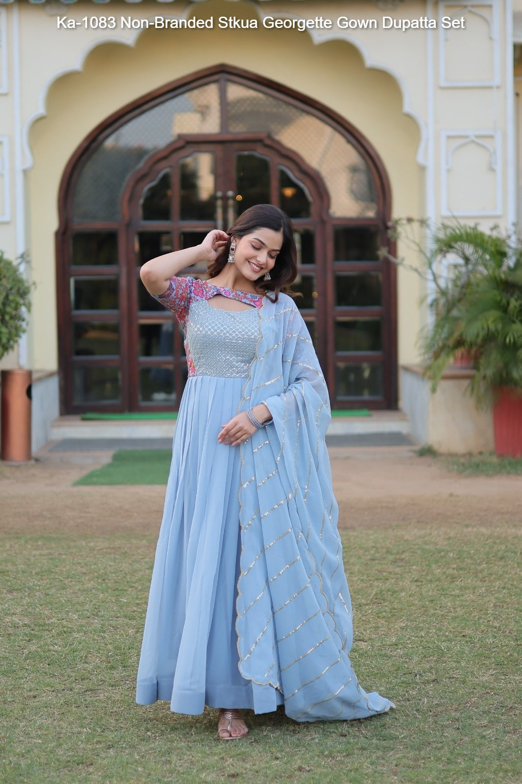 Ka-1083 Non-Branded Stkua Georgette Gown Dupatta Set