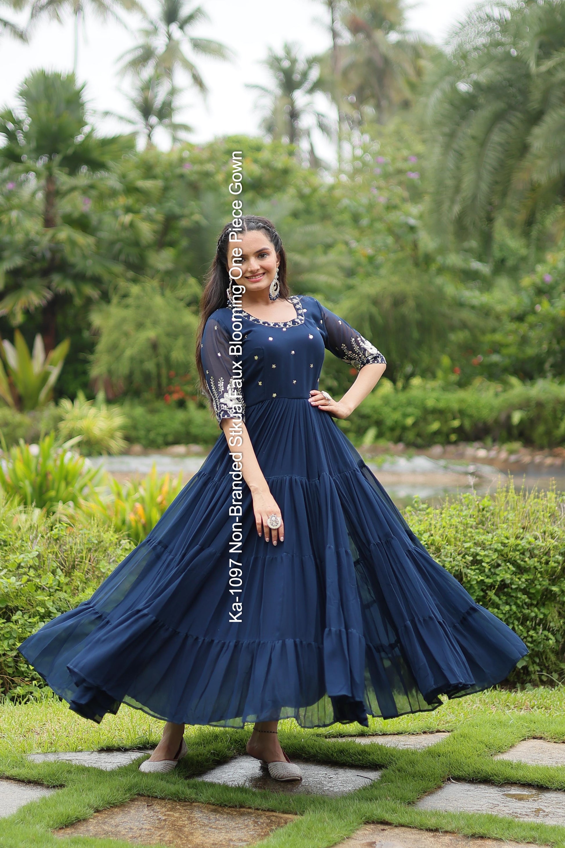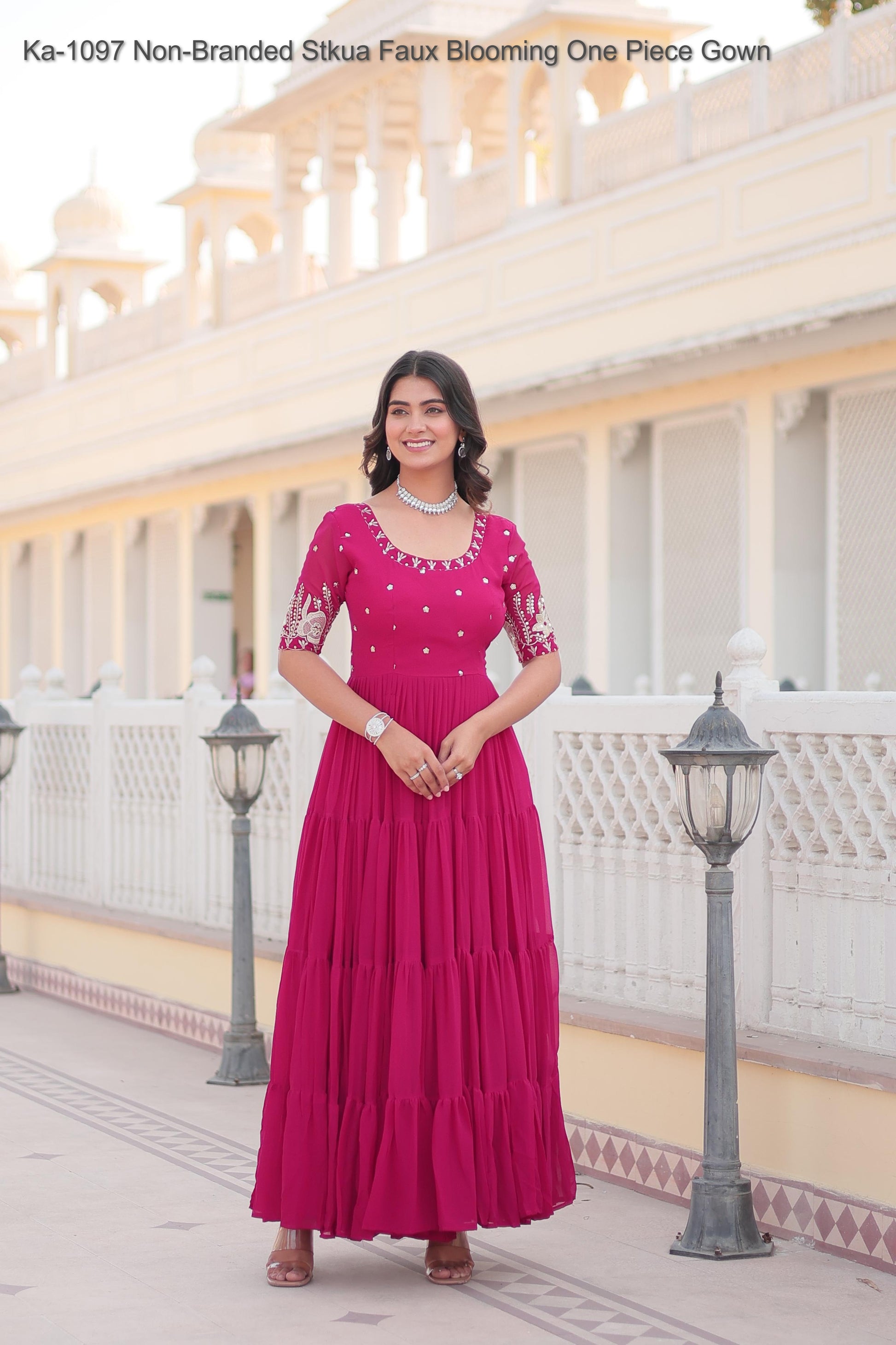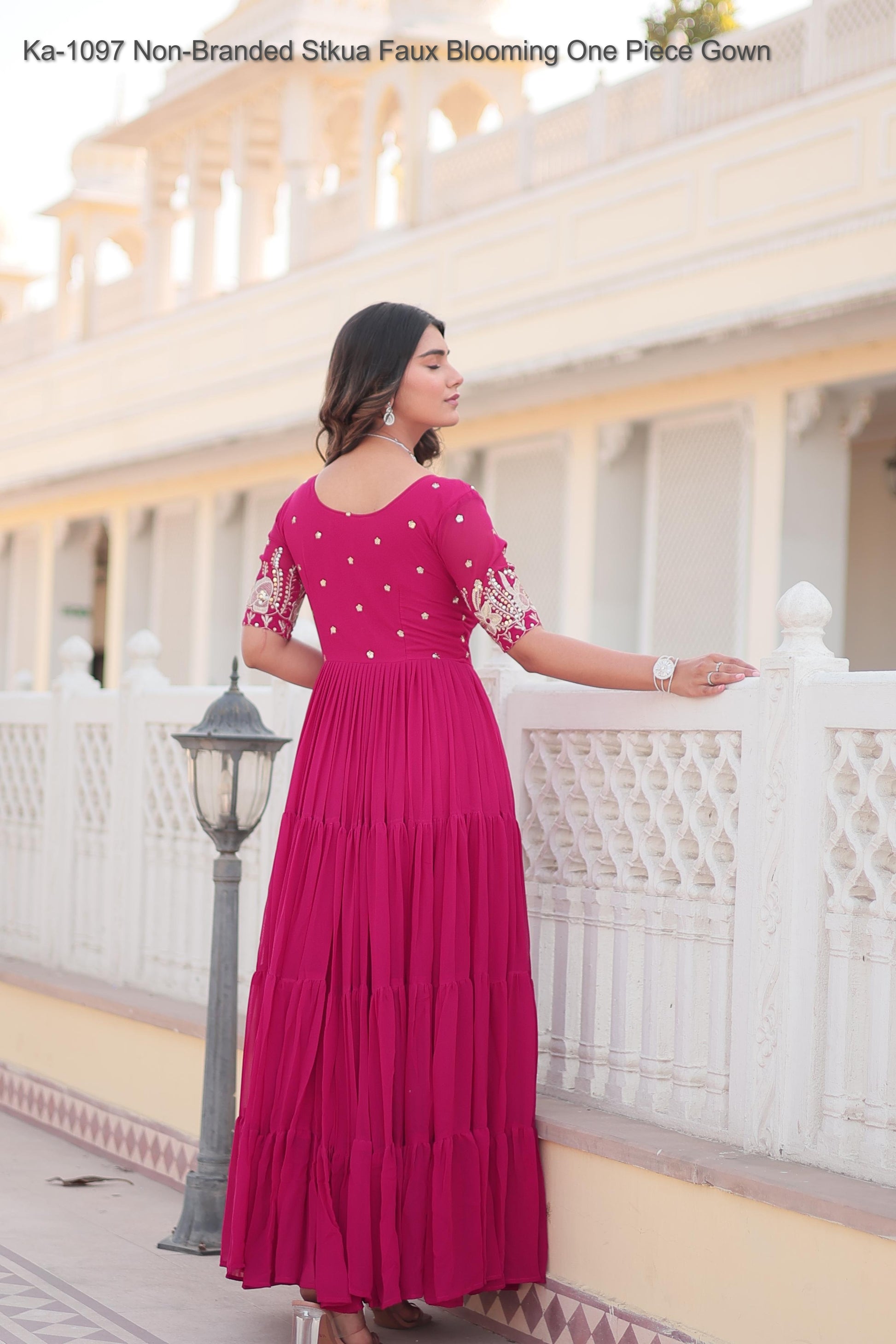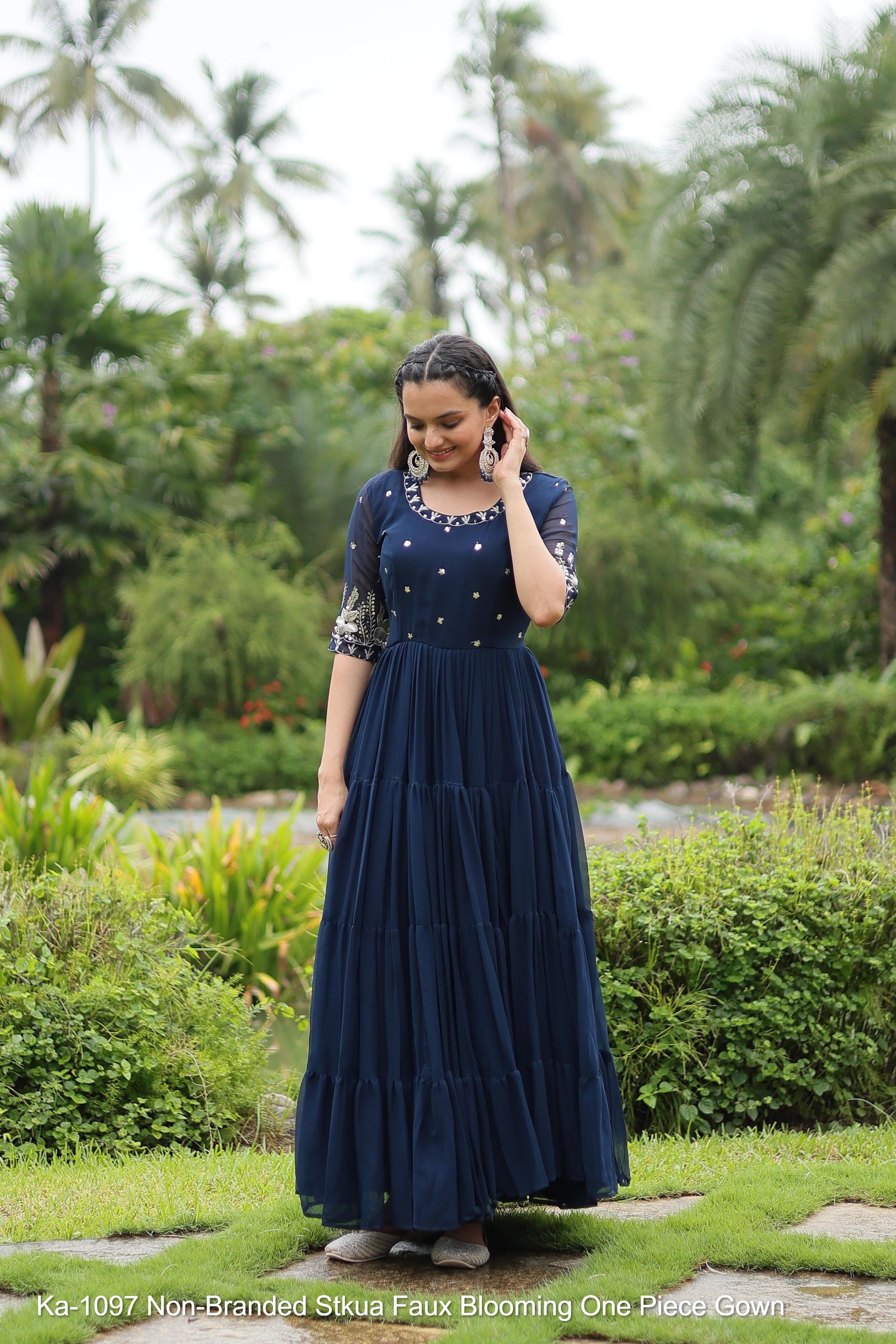 - Ka-1097 Non-Branded Stkua Faux Blooming One Piece Gown Dealer Ahmedabad Surat Wholesale Gujarat India Lowest Price Best Quality Buy Purchase Shipping Kurta Salwaar Kameez Also free Cash on delivery