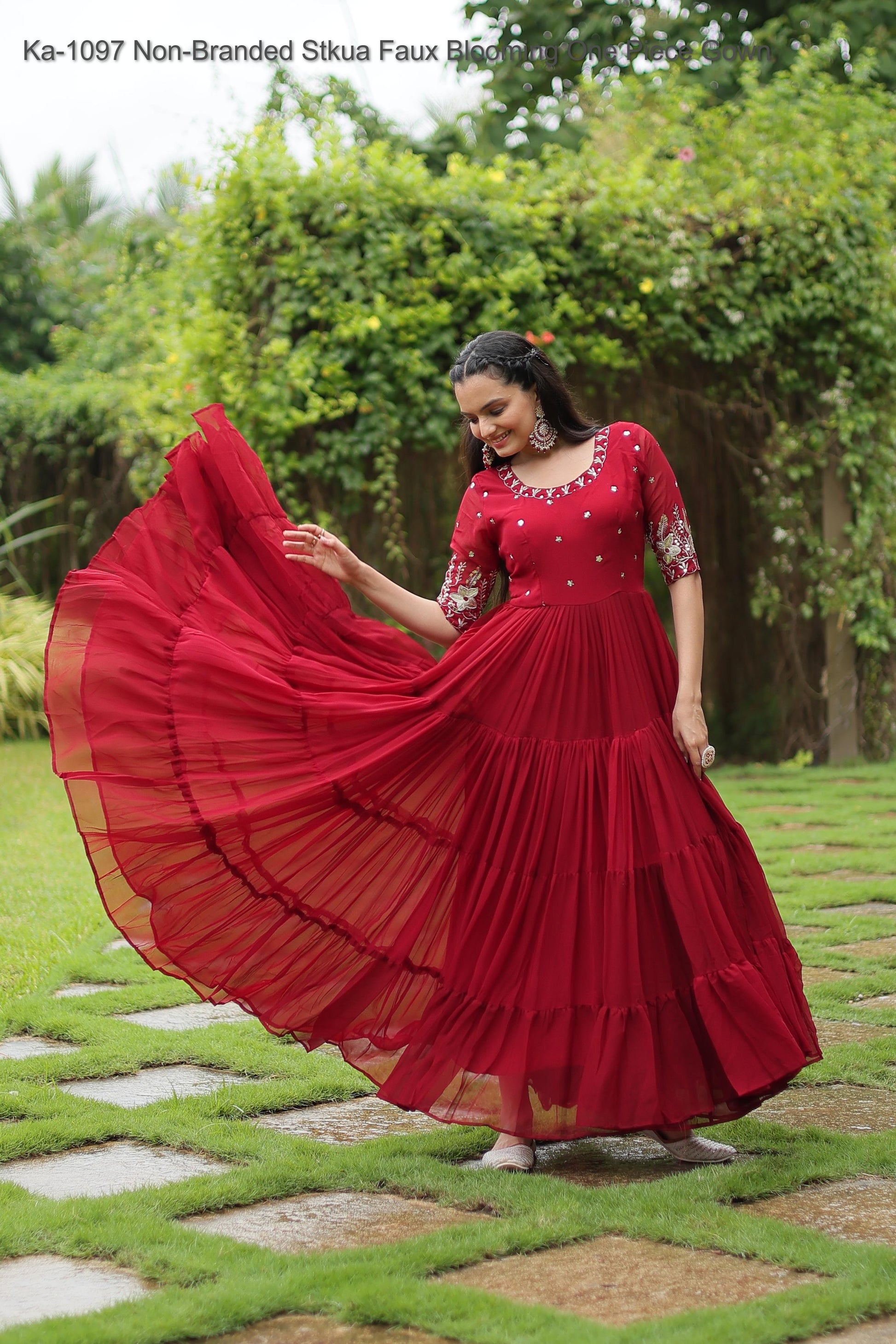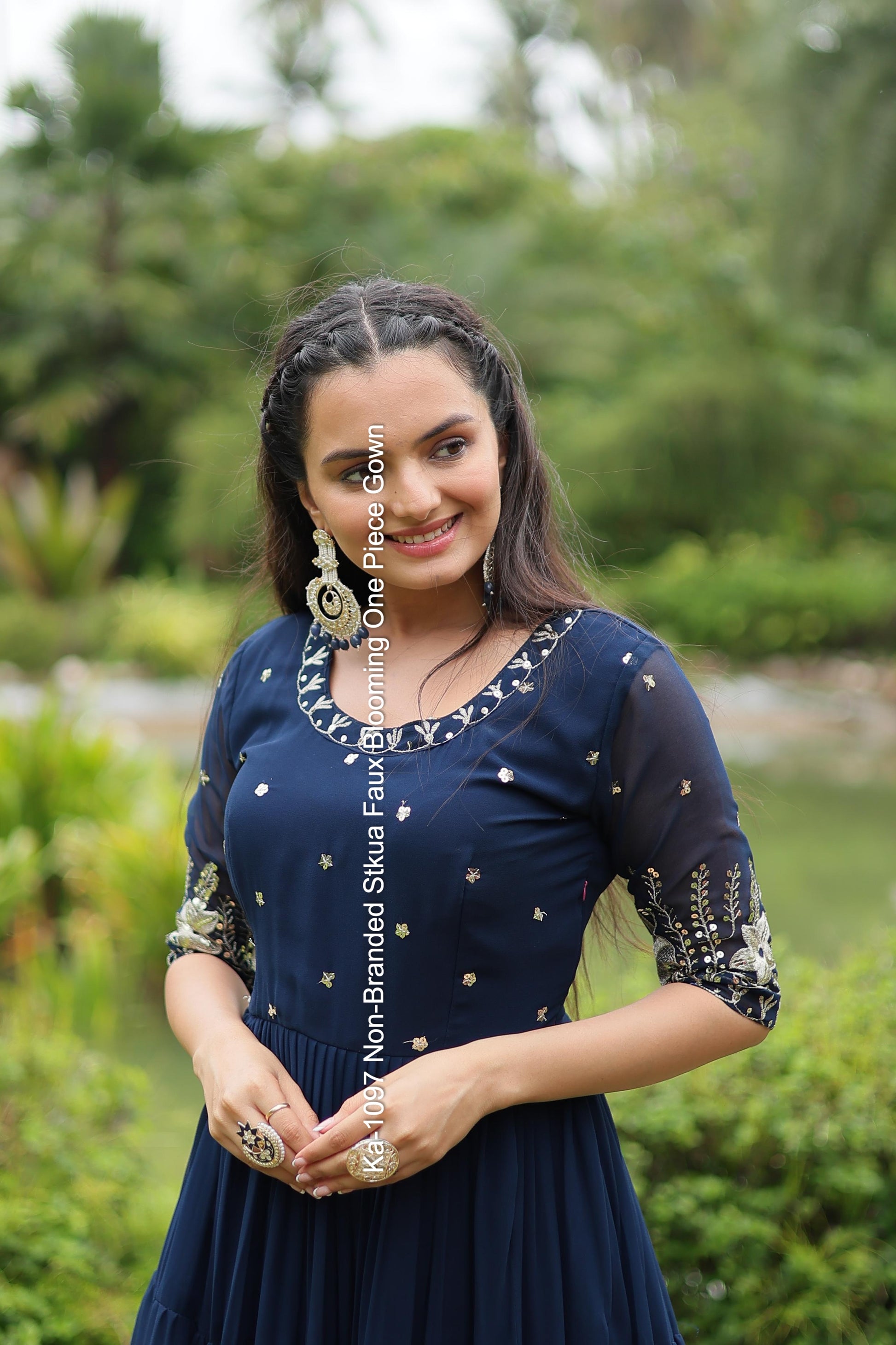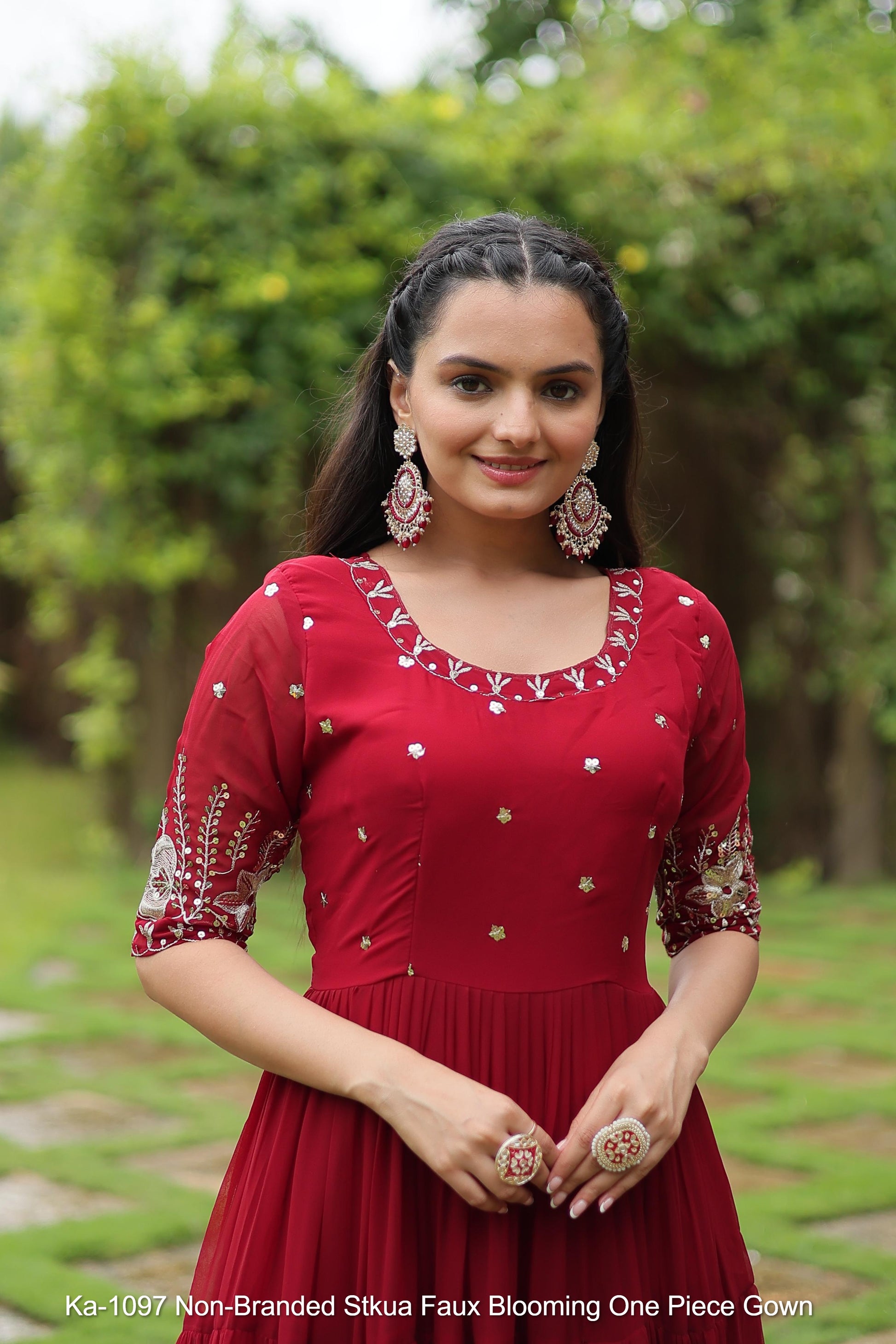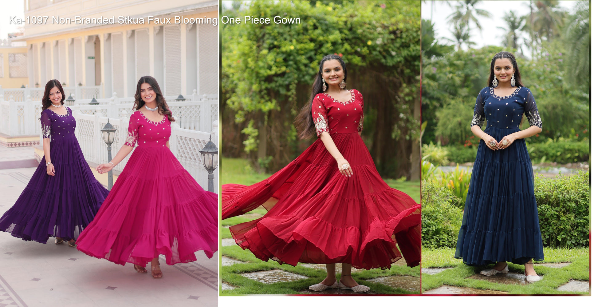 - Ka-1097 Non-Branded Stkua Faux Blooming One Piece Gown Dealer Ahmedabad Surat Wholesale Gujarat India Lowest Price Best Quality Buy Purchase Shipping Kurta Salwaar Kameez Also free Cash on delivery