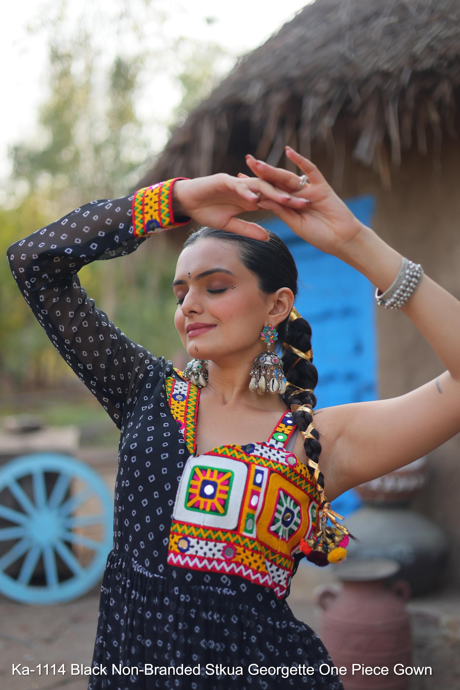- Ka-1114 Black Non-Branded Stkua Georgette One Piece Gown Dealer Ahmedabad Surat Wholesale Gujarat India Lowest Price Best Quality Buy Purchase Shipping Kurta Salwaar Kameez Also free Cash on delivery