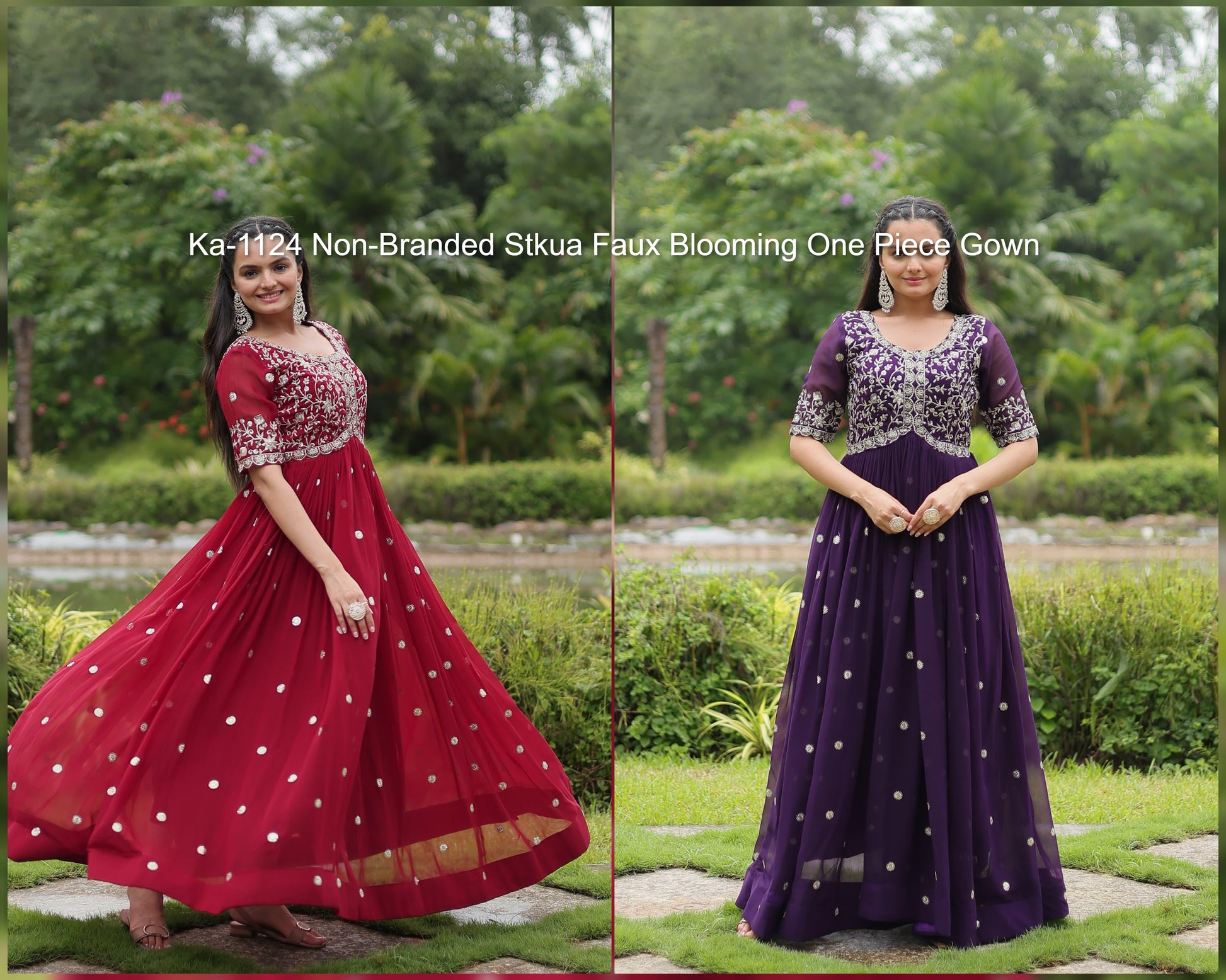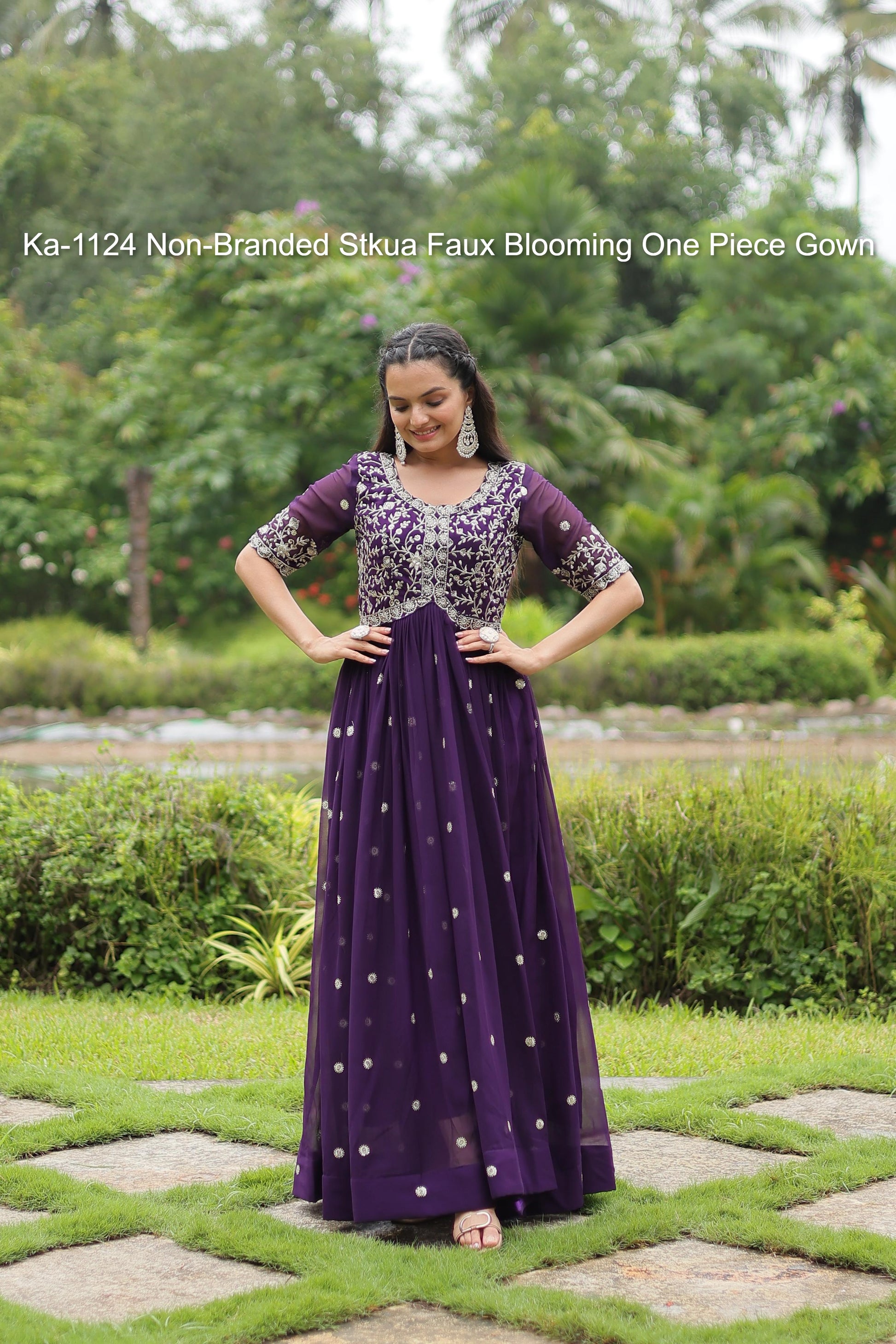 - Ka-1124 Non-Branded Stkua Faux Blooming One Piece Gown Dealer Ahmedabad Surat Wholesale Gujarat India Lowest Price Best Quality Buy Purchase Shipping Kurta Salwaar Kameez Also free Cash on delivery