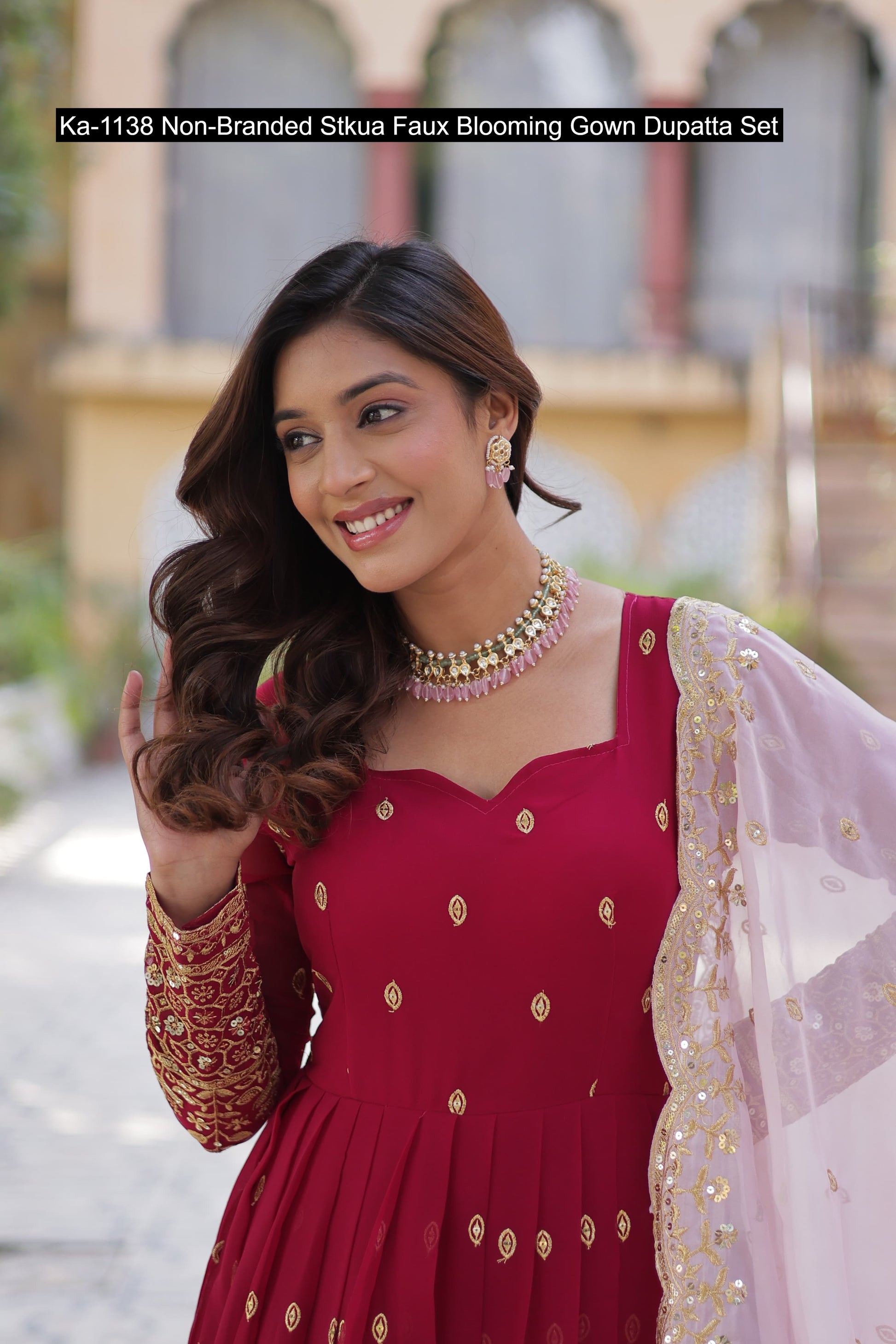 Ka-1138 Non-Branded Stkua Faux Blooming Gown Dupatta Set