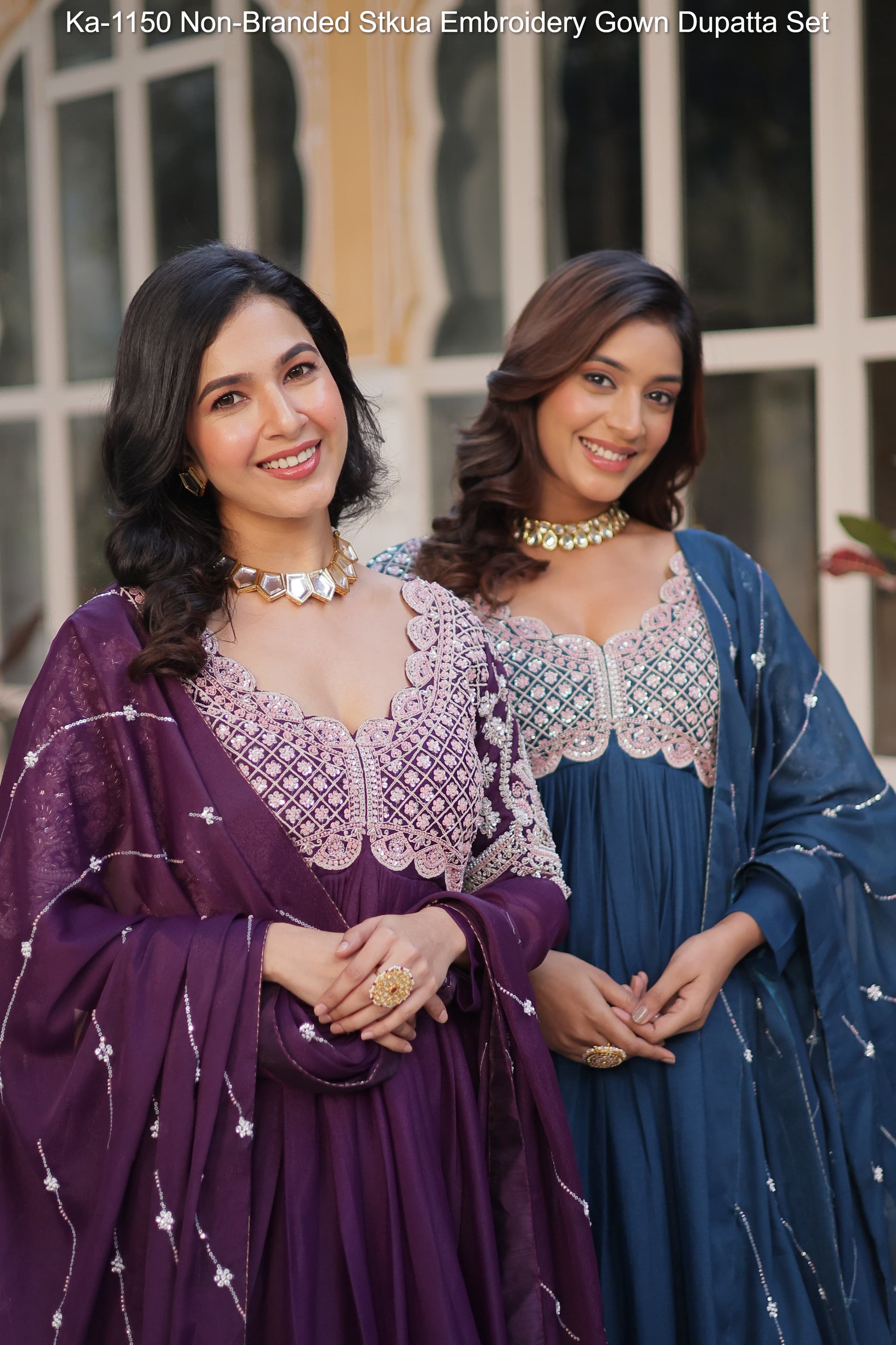Ka-1150 Non-Branded Stkua Embroidery Gown Dupatta Set
