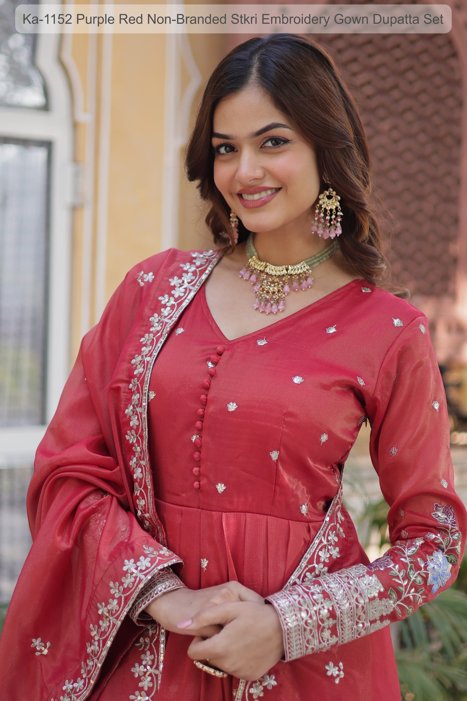Ka-1152 Purple Red Non-Branded Stkri Embroidery Gown Dupatta Set