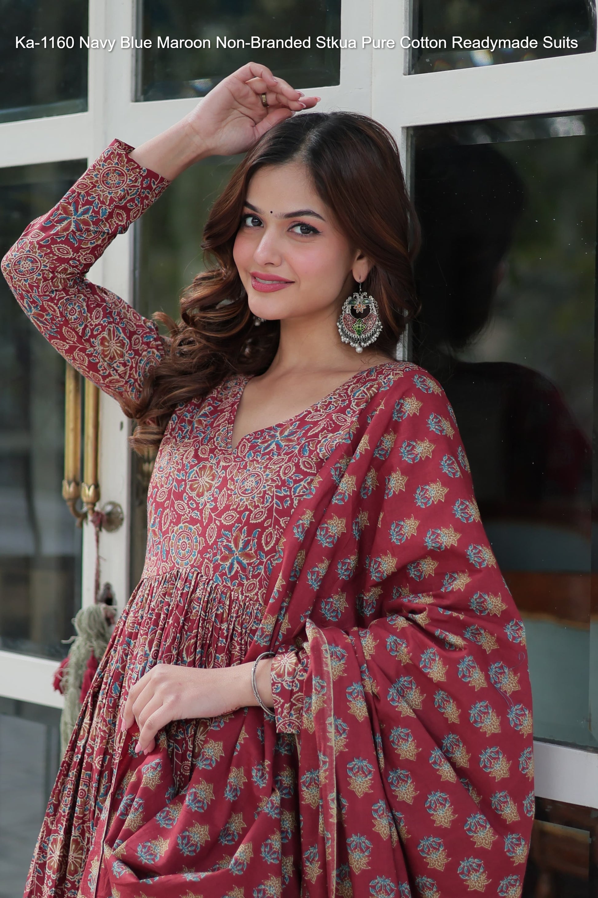 Ka-1160 Navy Blue Maroon Non-Branded Stkua Pure Cotton Readymade Suits