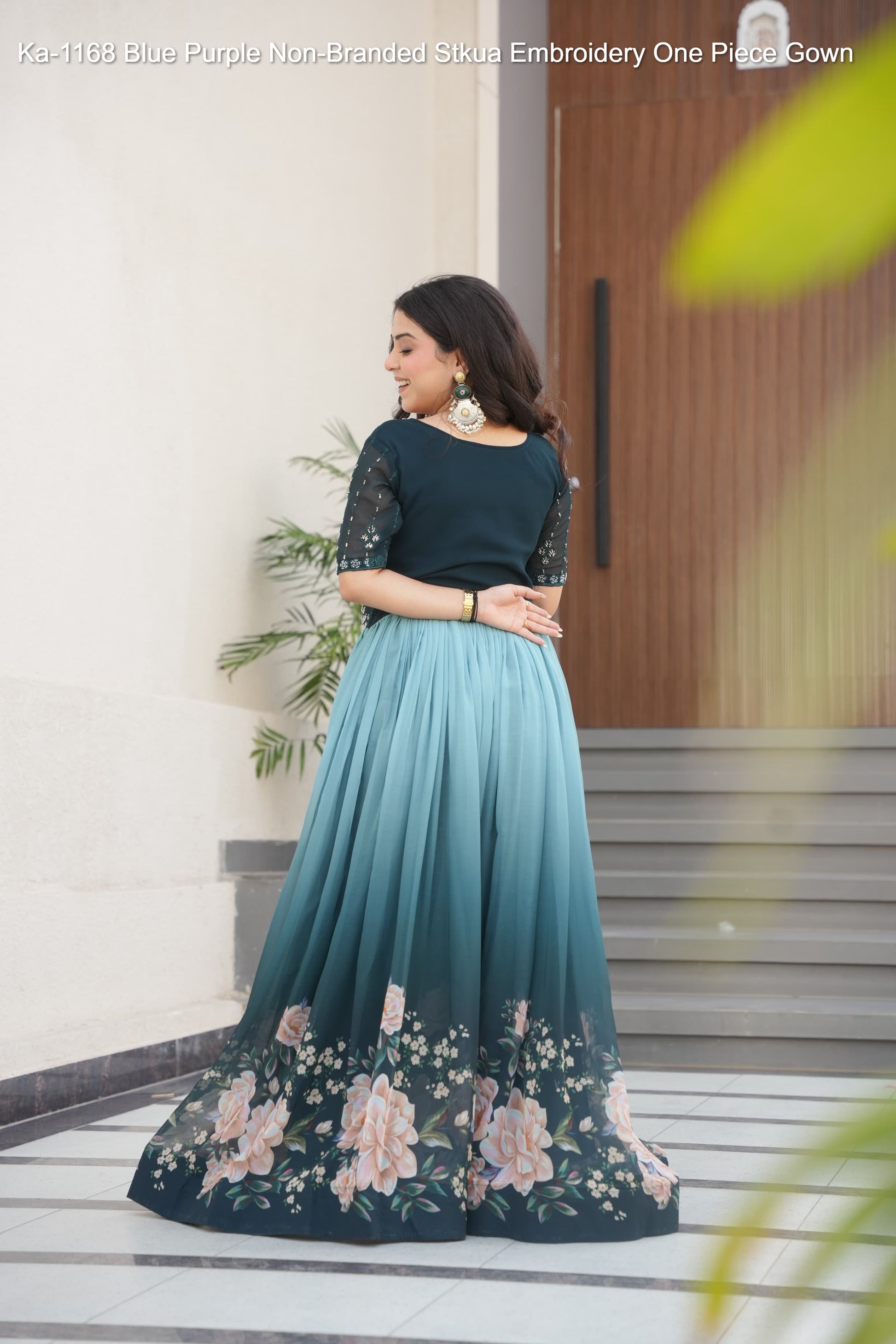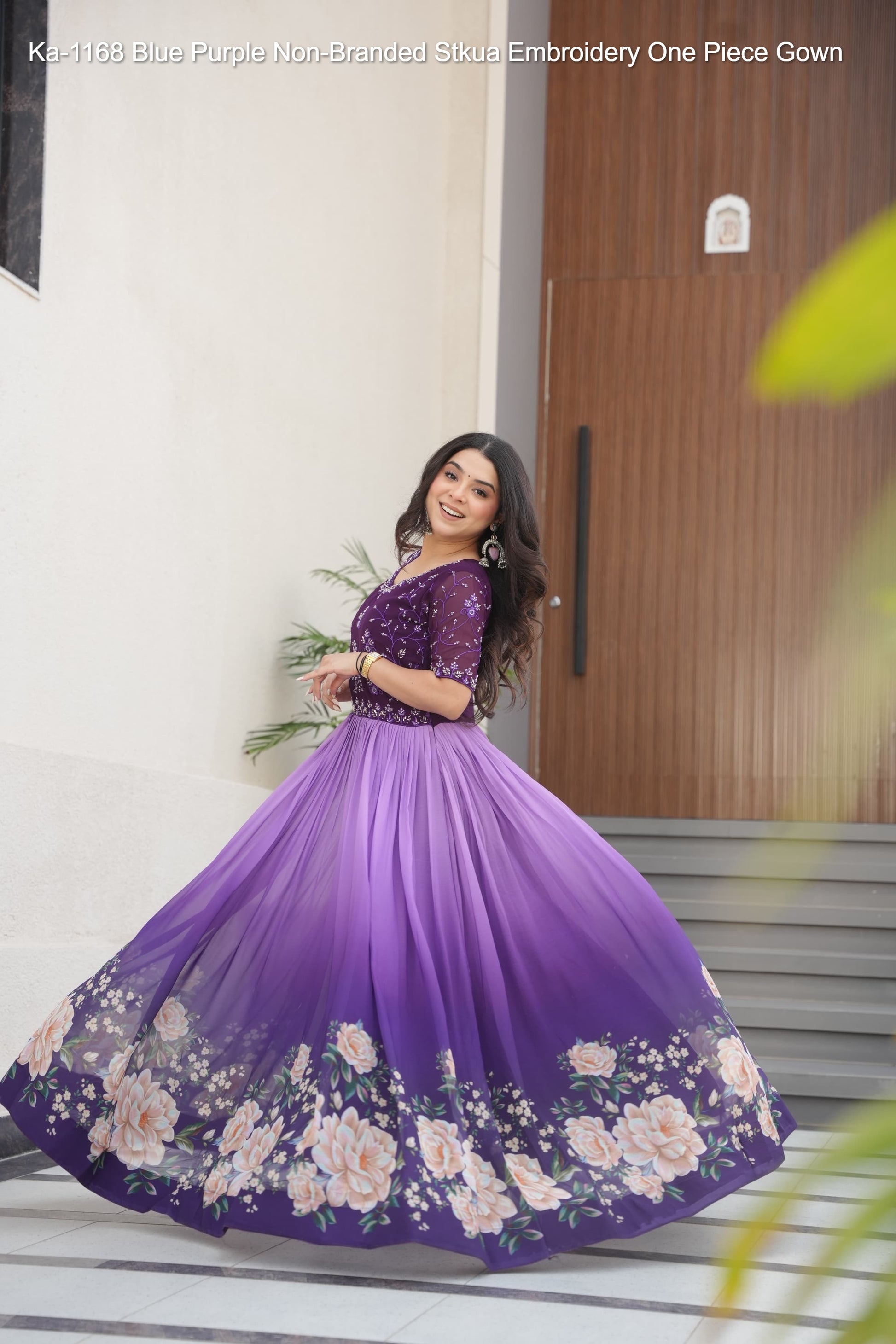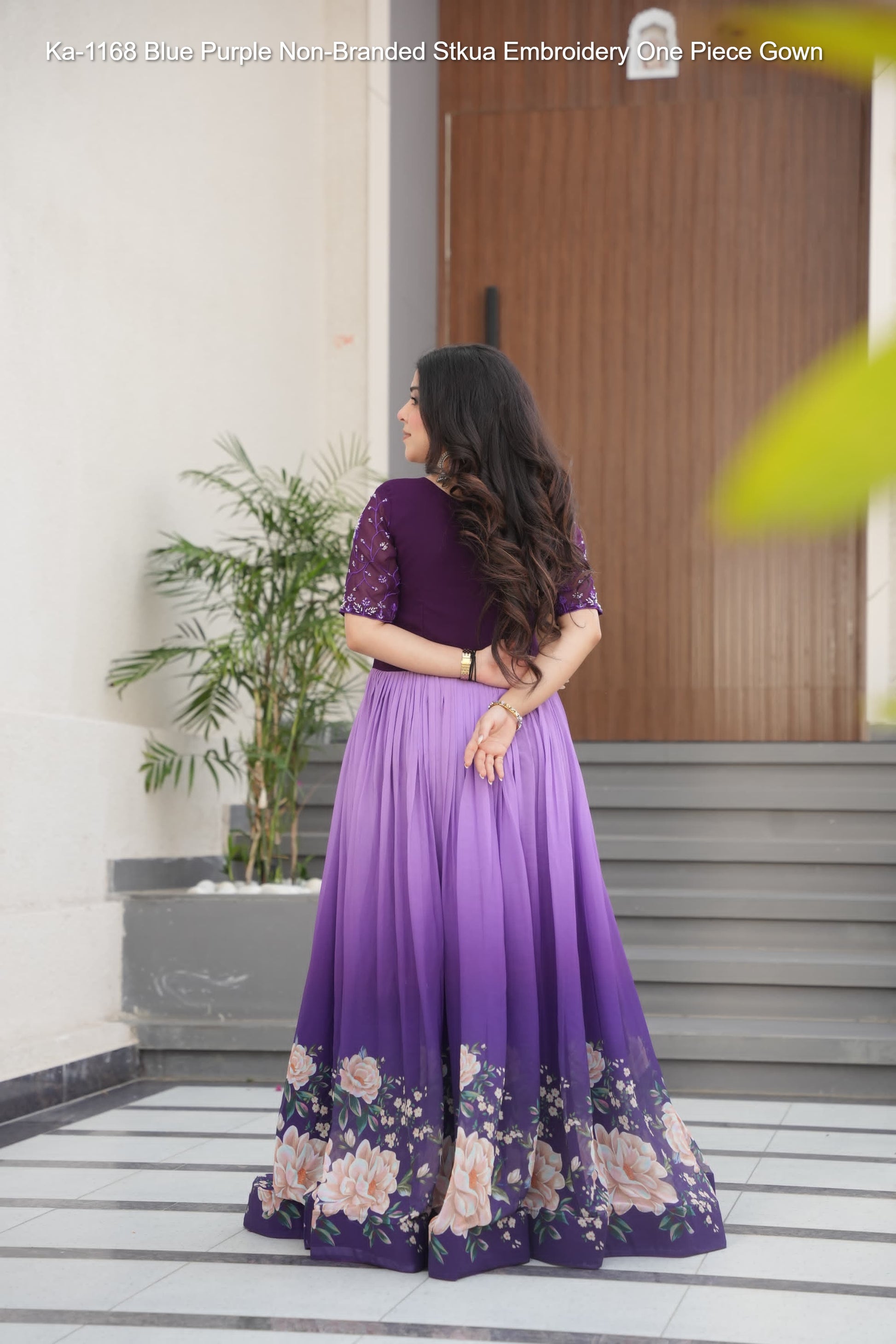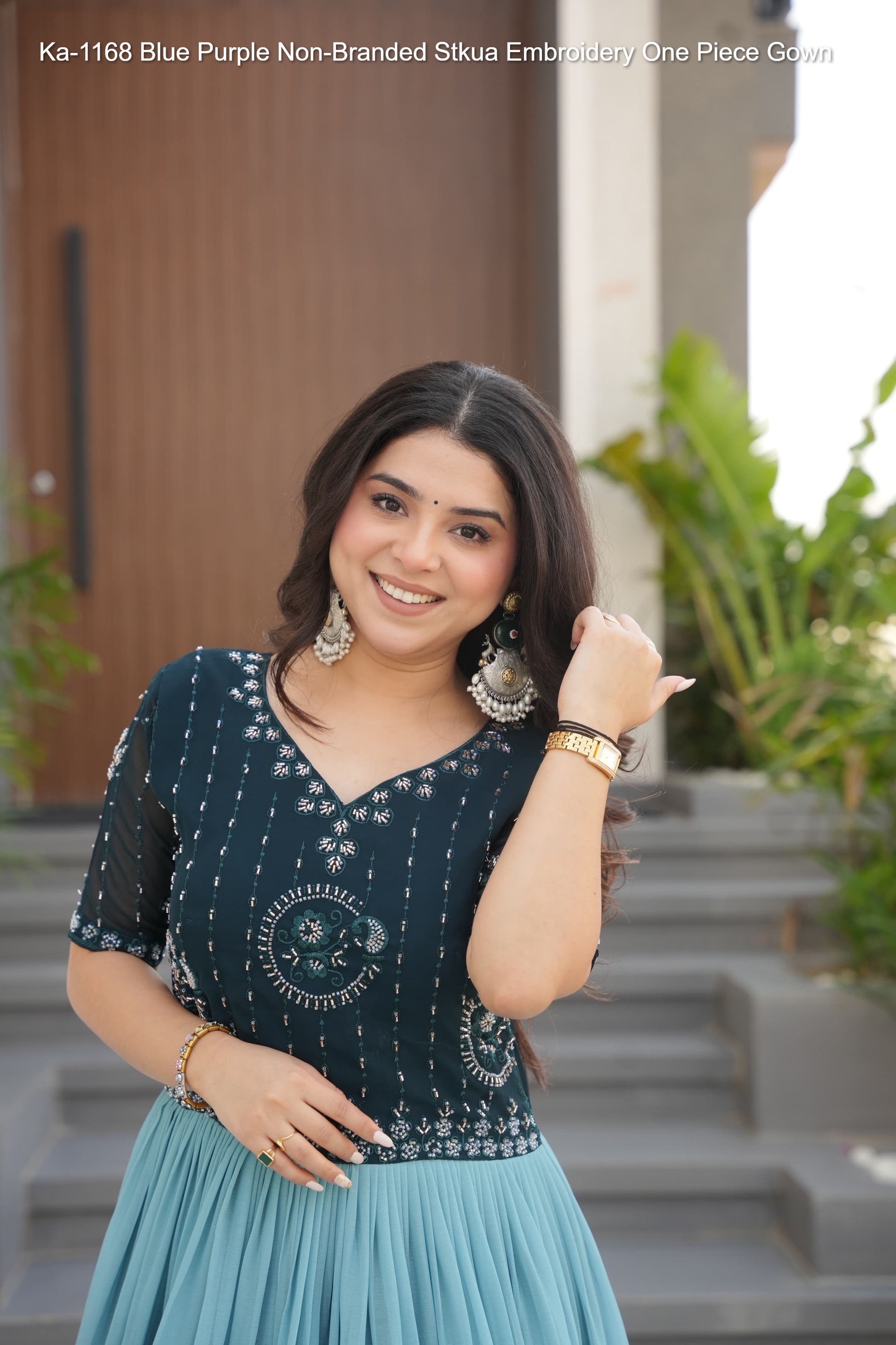- Ka-1168 Blue Purple Non-Branded Stkua Embroidery One Piece Gown Dealer Ahmedabad Surat Wholesale Gujarat India Lowest Price Best Quality Buy Purchase Shipping Kurta Salwaar Kameez Also free Cash on delivery