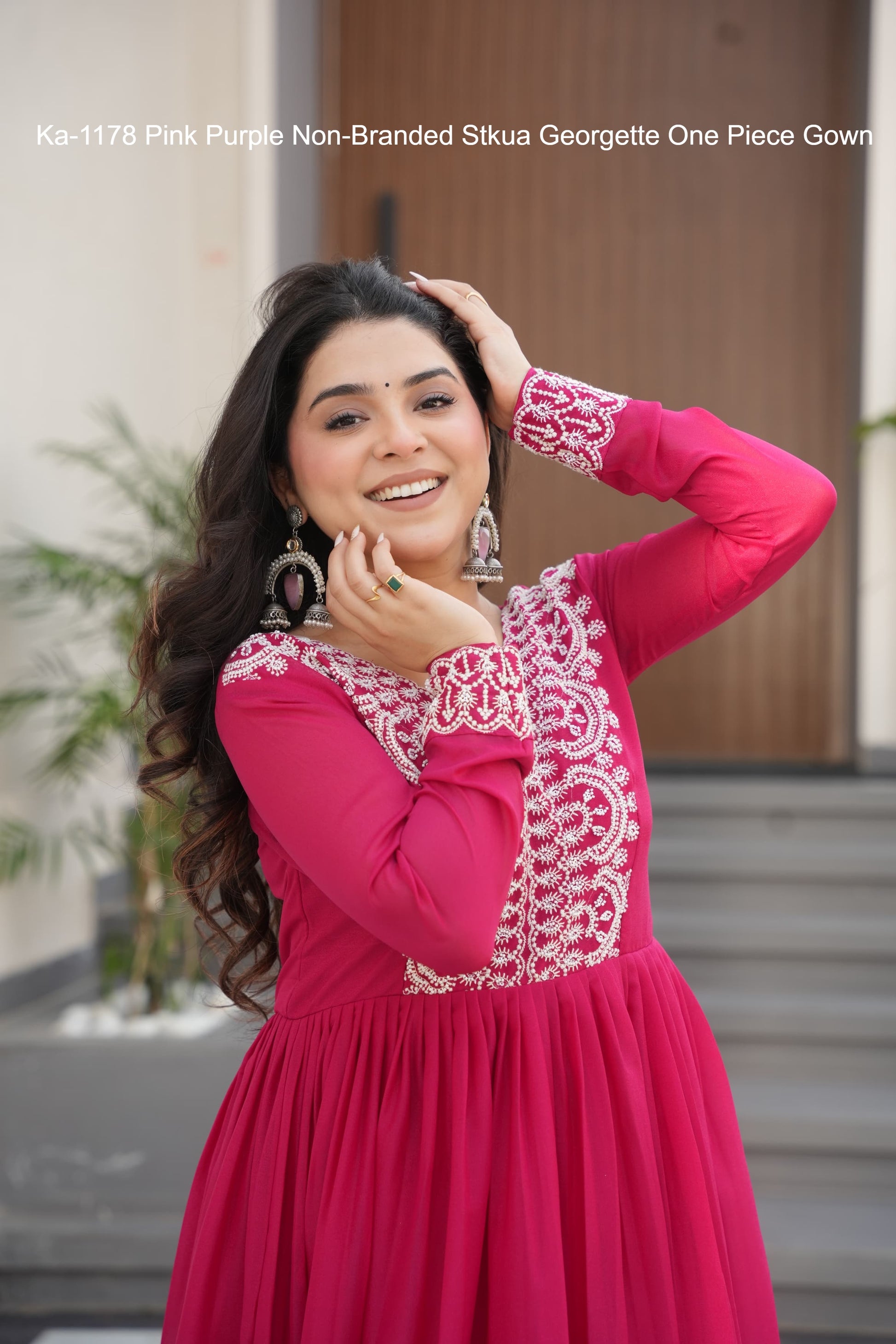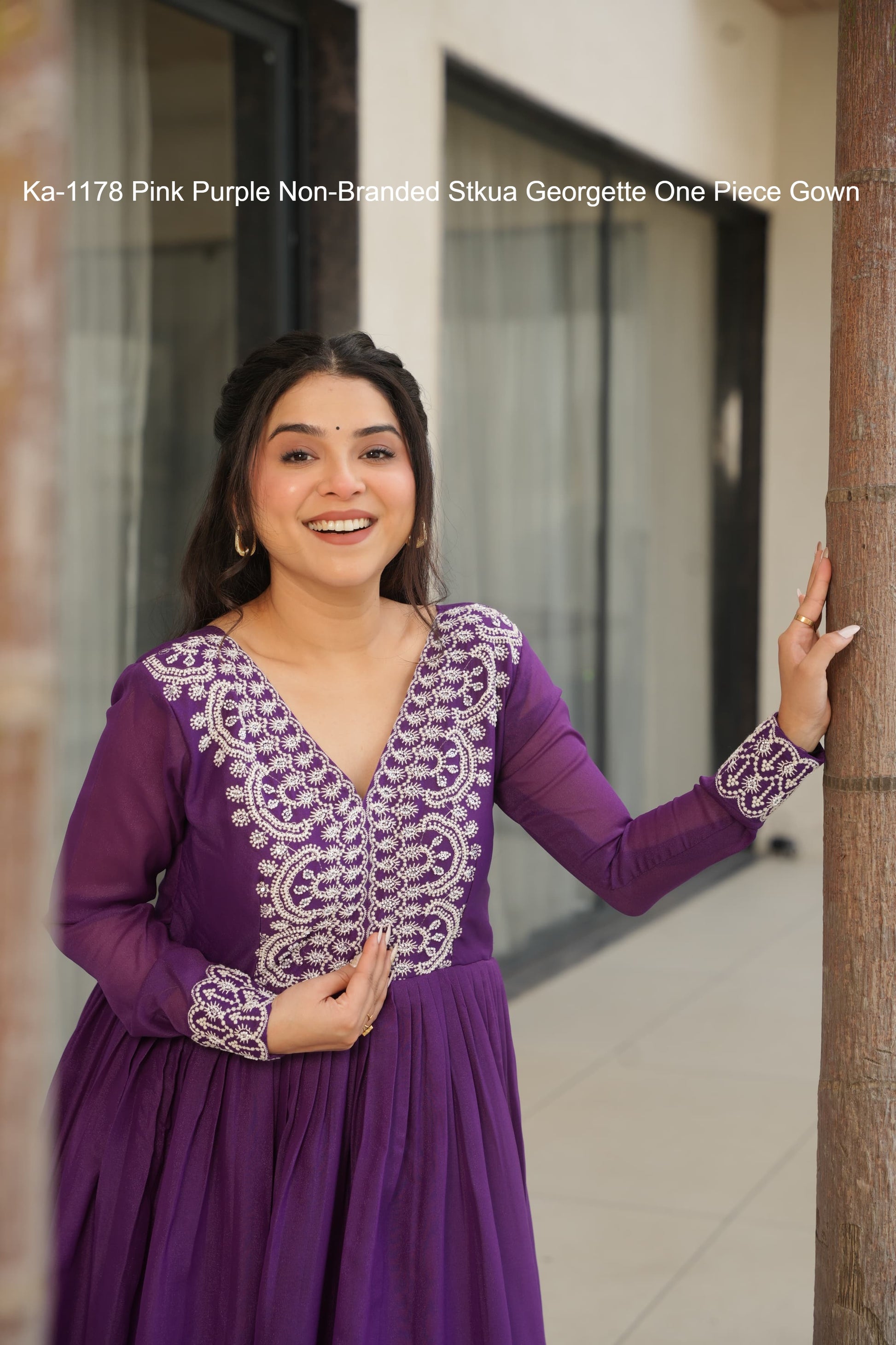 Ka-1178 Pink Purple Non-Branded Stkua Georgette One Piece Gown