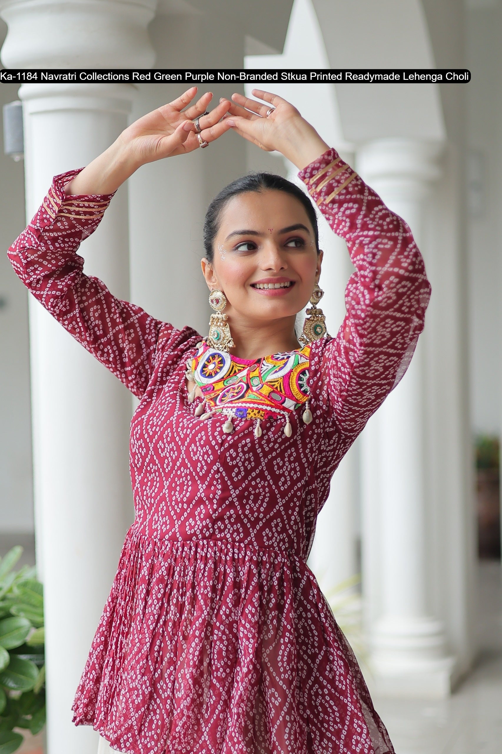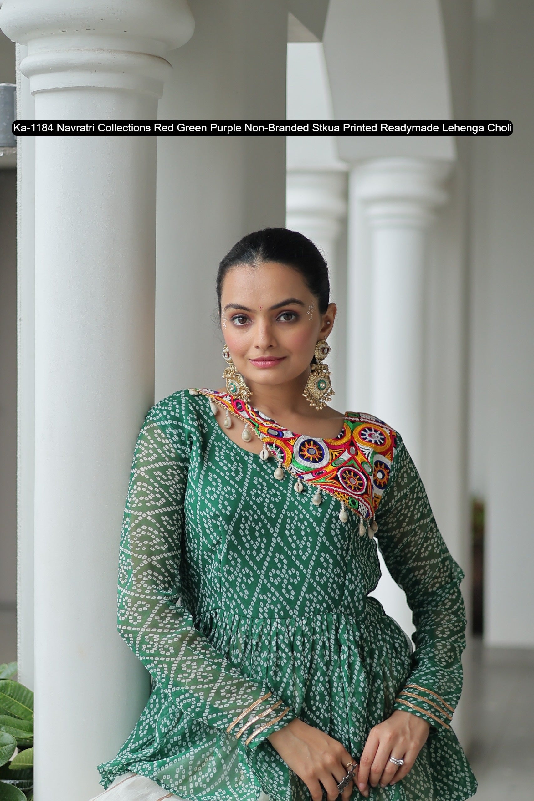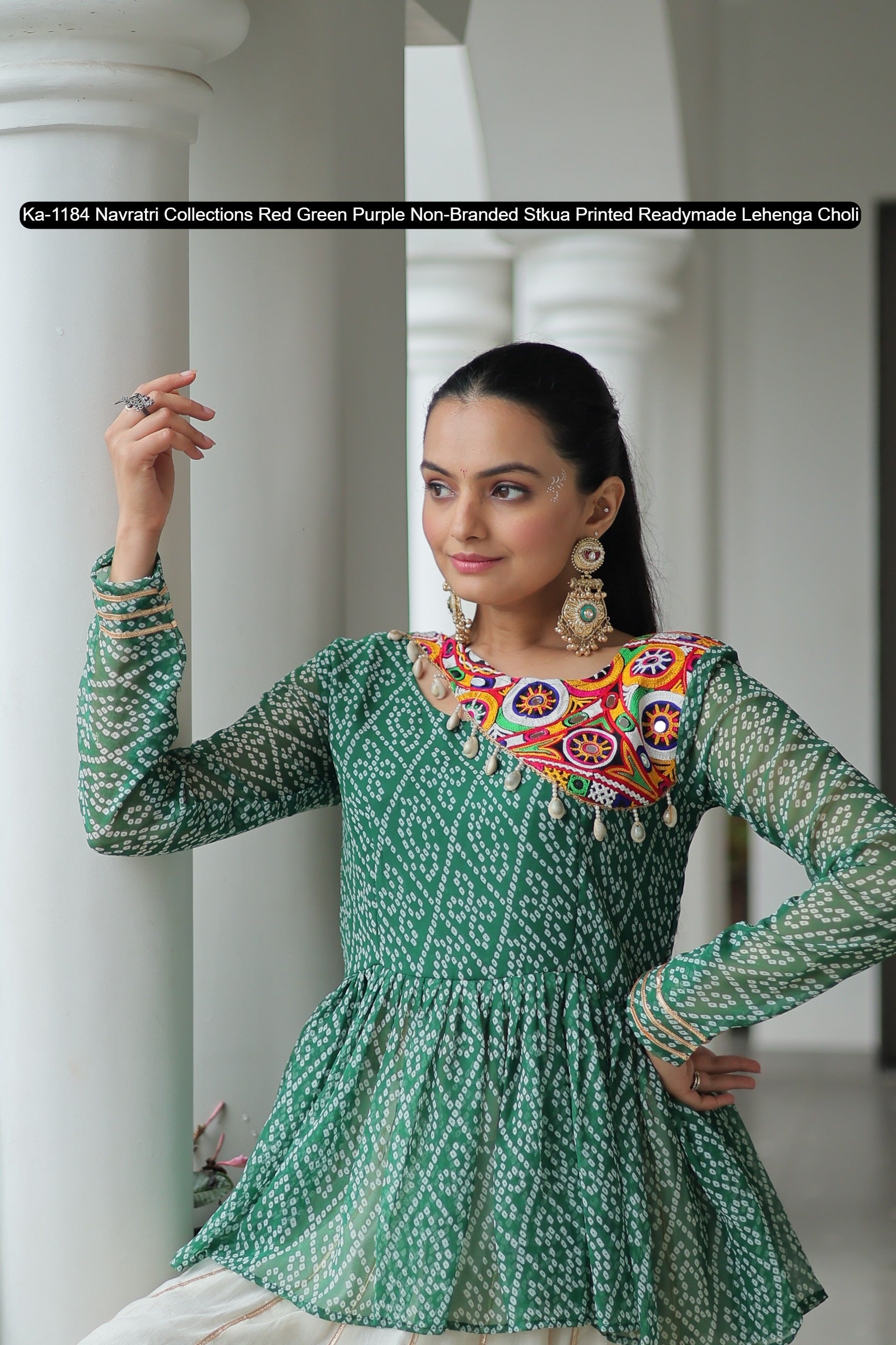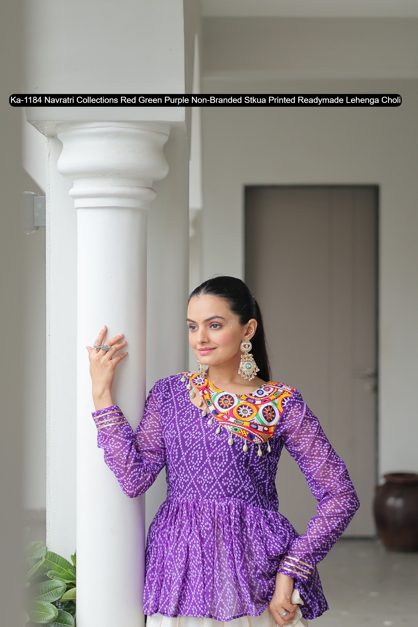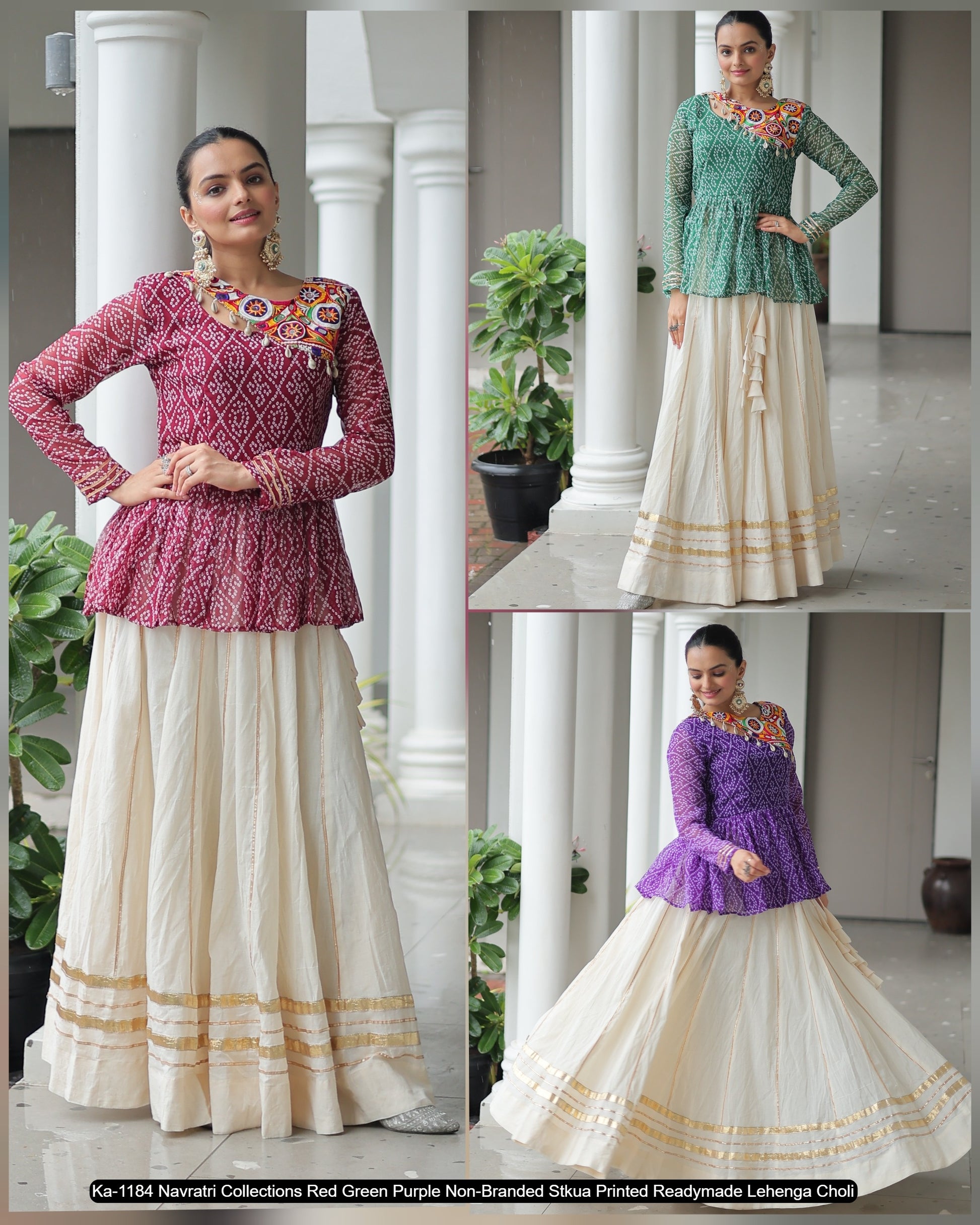 Ka-1184 Navratri Collections Red Green Purple Non-Branded Stkua Printed Readymade Lehenga Choli