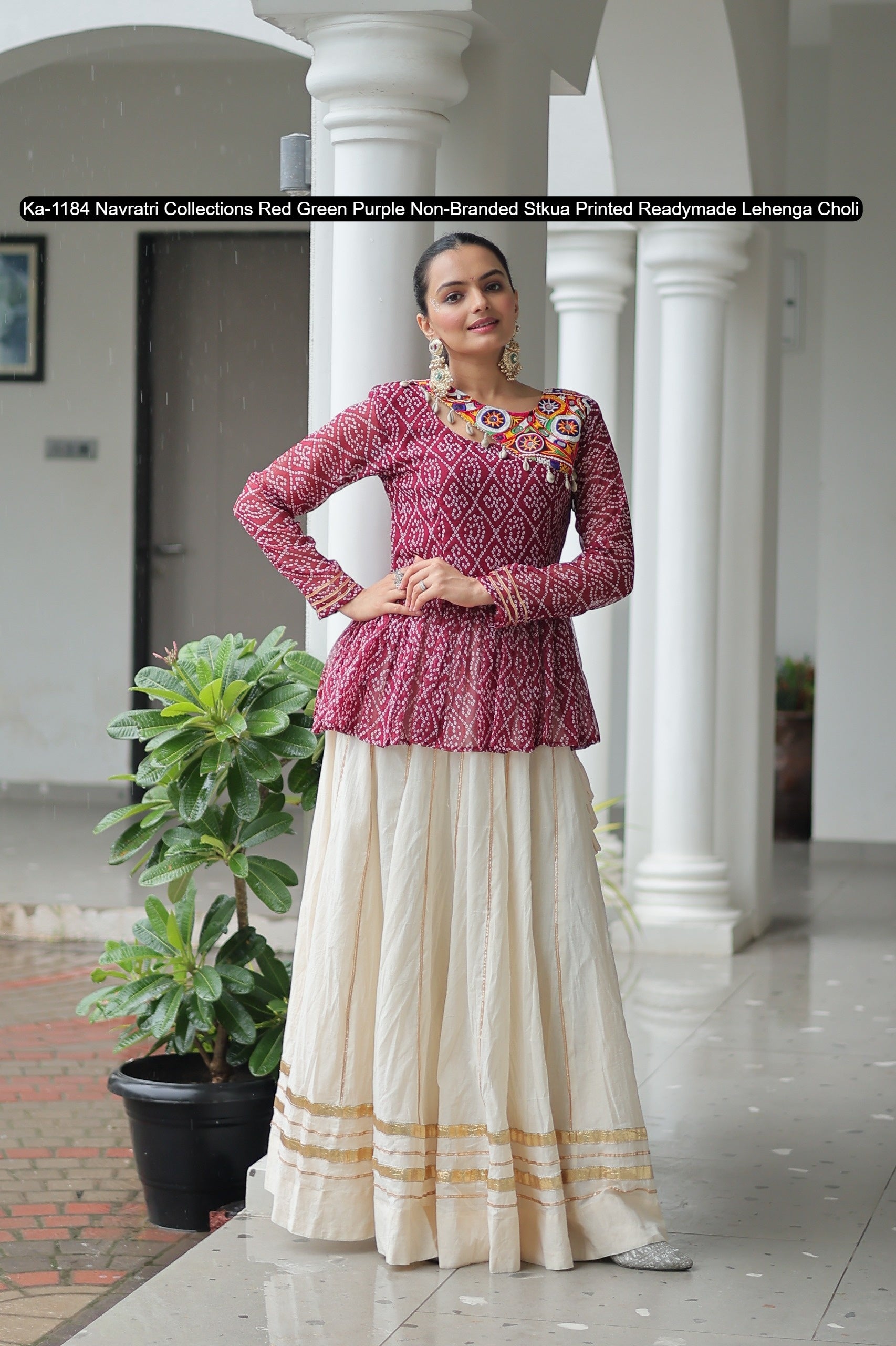- Ka-1184 Navratri Collections Red Green Purple Non-Branded Stkua Printed Readymade Lehenga Choli Dealer Ahmedabad Surat Wholesale Gujarat India Lowest Price Best Quality Buy Purchase Shipping Kurta Salwaar Kameez Also free Cash on delivery