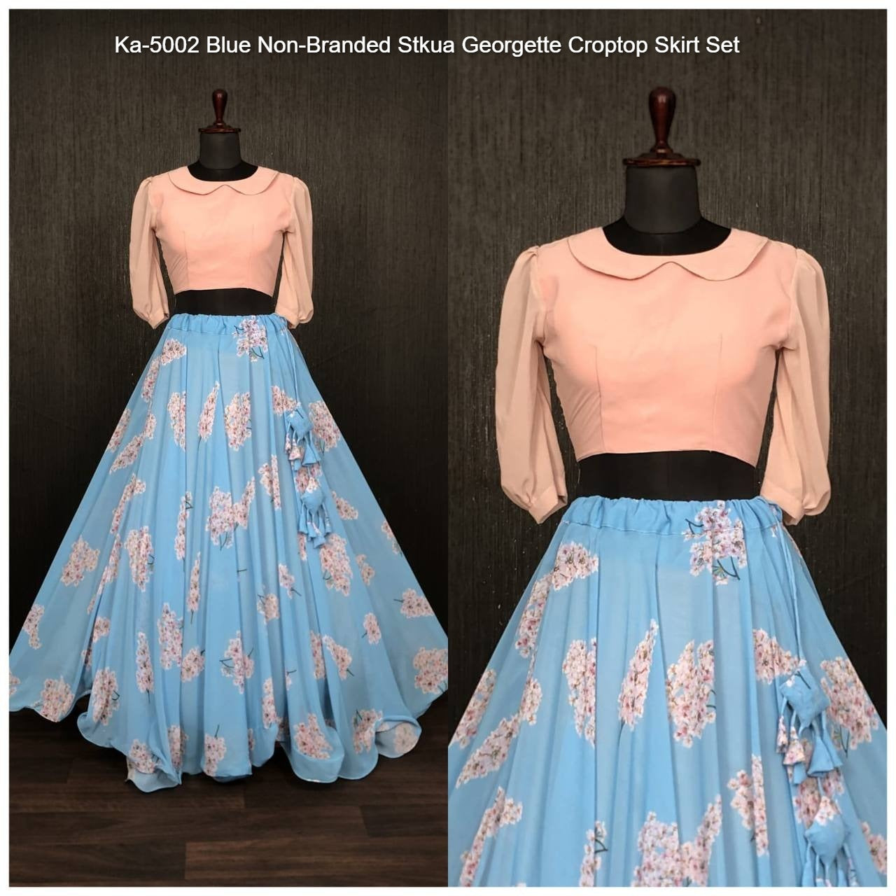- Ka-5002 Blue Non-Branded Stkua Georgette Croptop Skirt Set Dealer Ahmedabad Surat Wholesale Gujarat India Lowest Price Best Quality Buy Purchase Shipping Kurta Salwaar Kameez Also free Cash on delivery