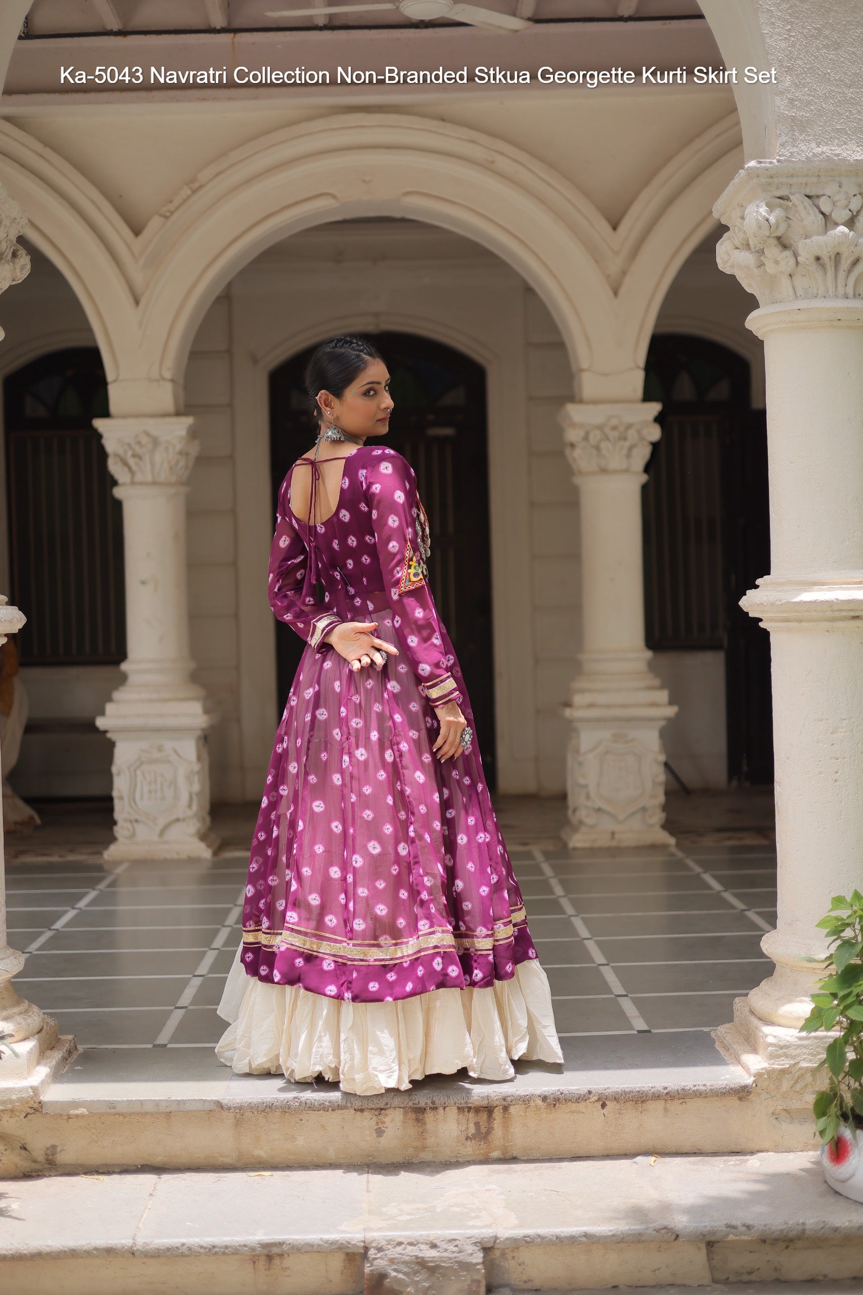 Ka-5043 Navratri Collection Non-Branded Stkua Georgette Kurti Skirt Set