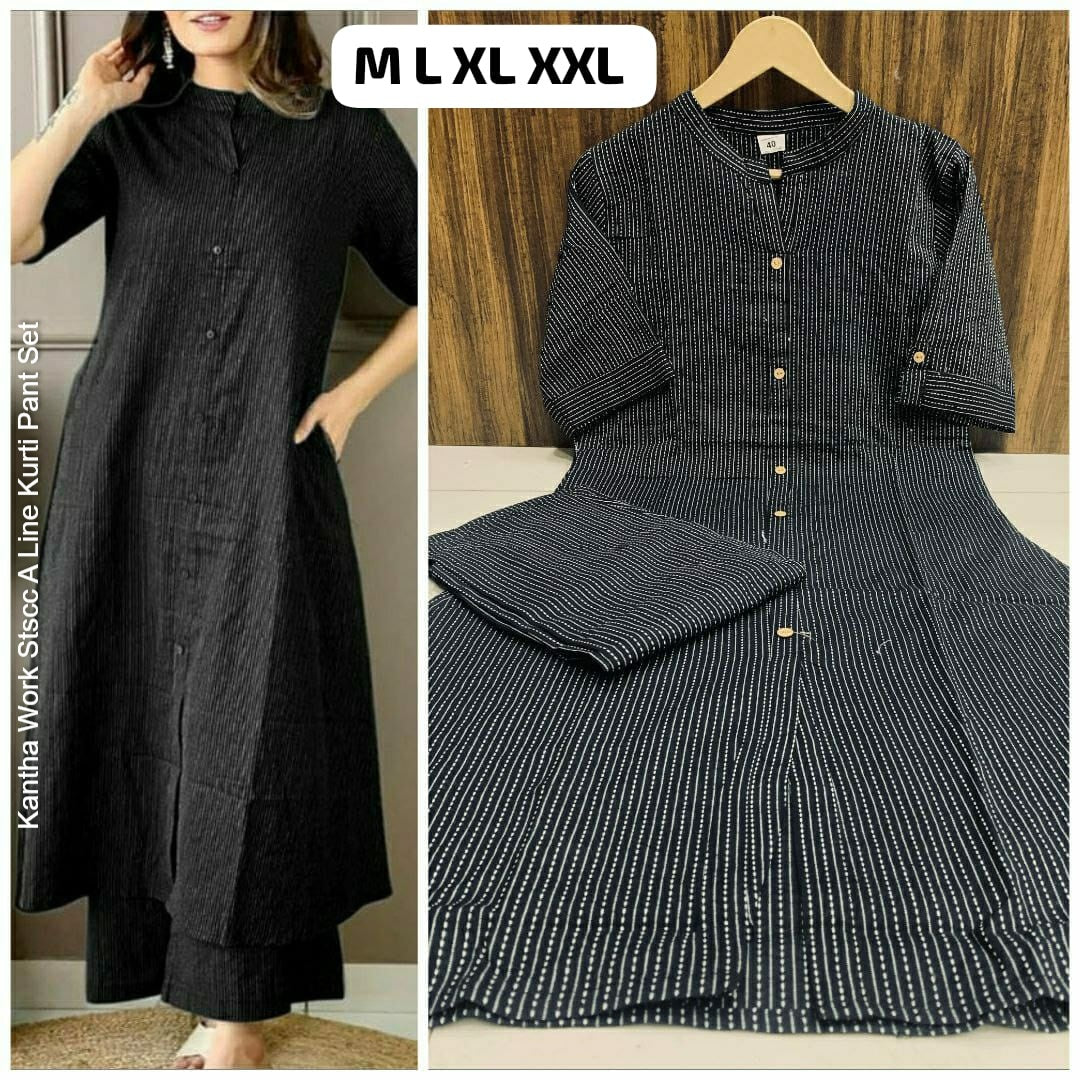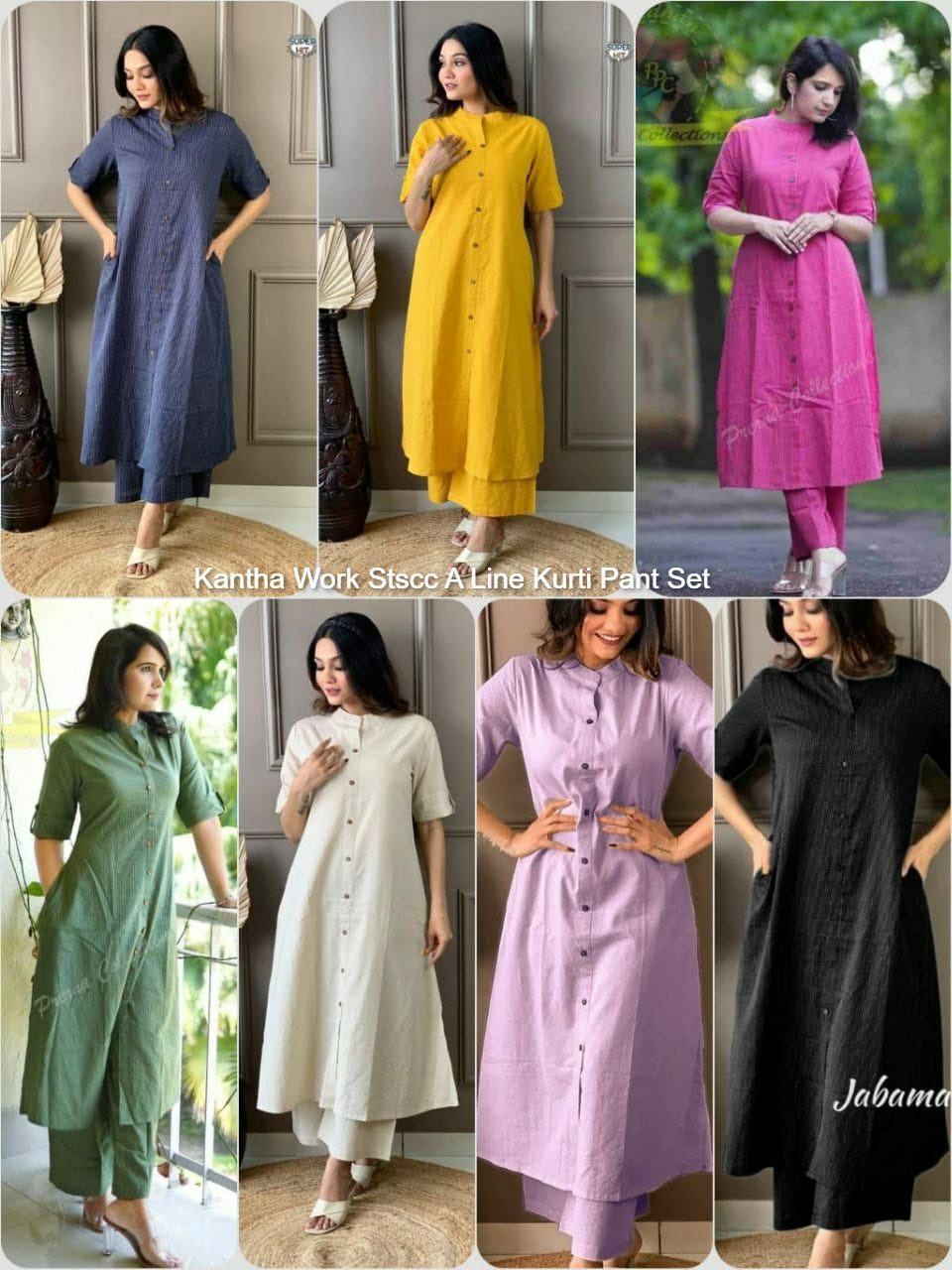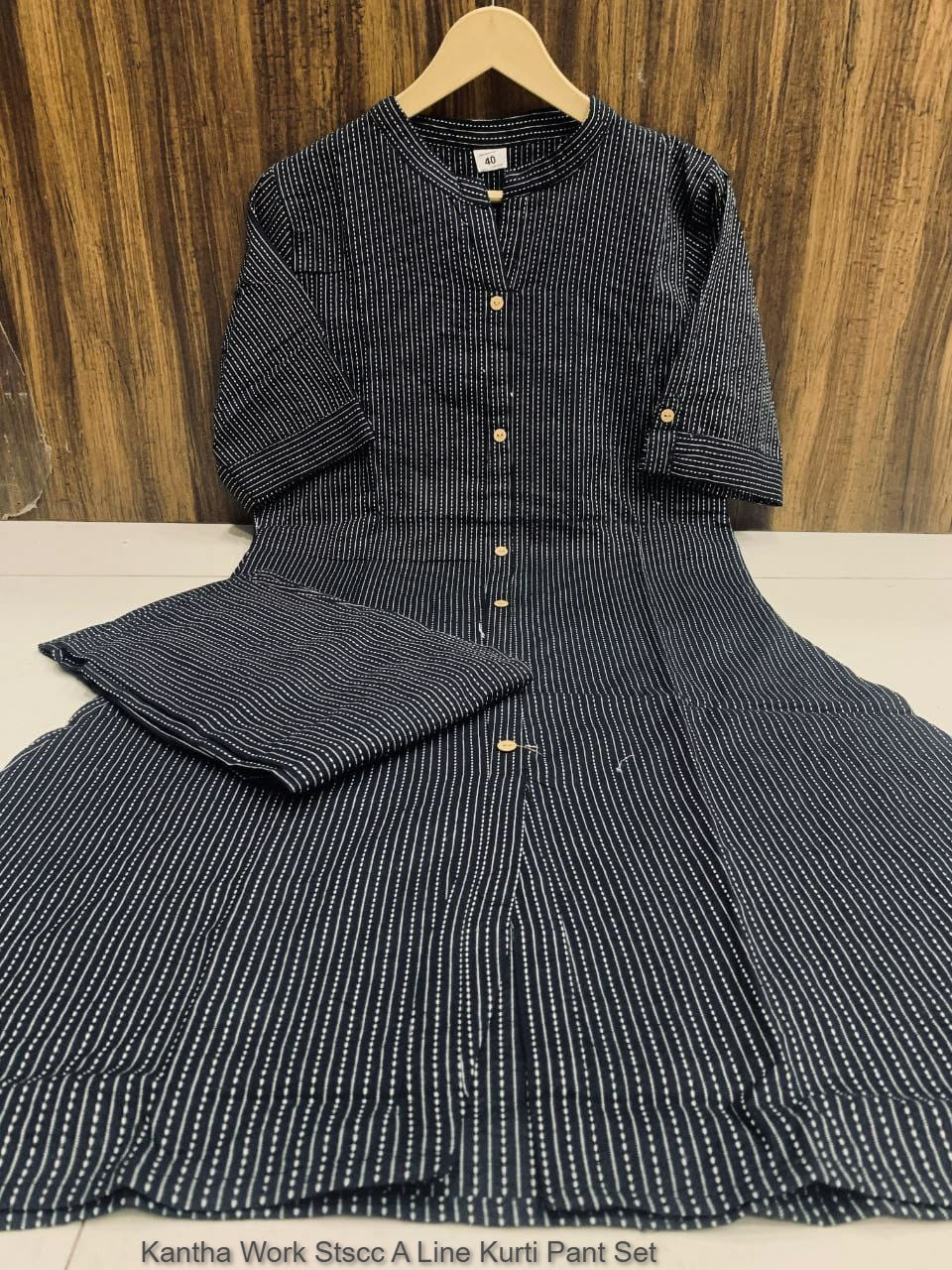- Kantha Work Stscc A Line Kurti Pant Set Dealer Ahmedabad Surat Wholesale Gujarat India Lowest Price Best Quality Buy Purchase Shipping Kurta Salwaar Kameez Also free Cash on delivery