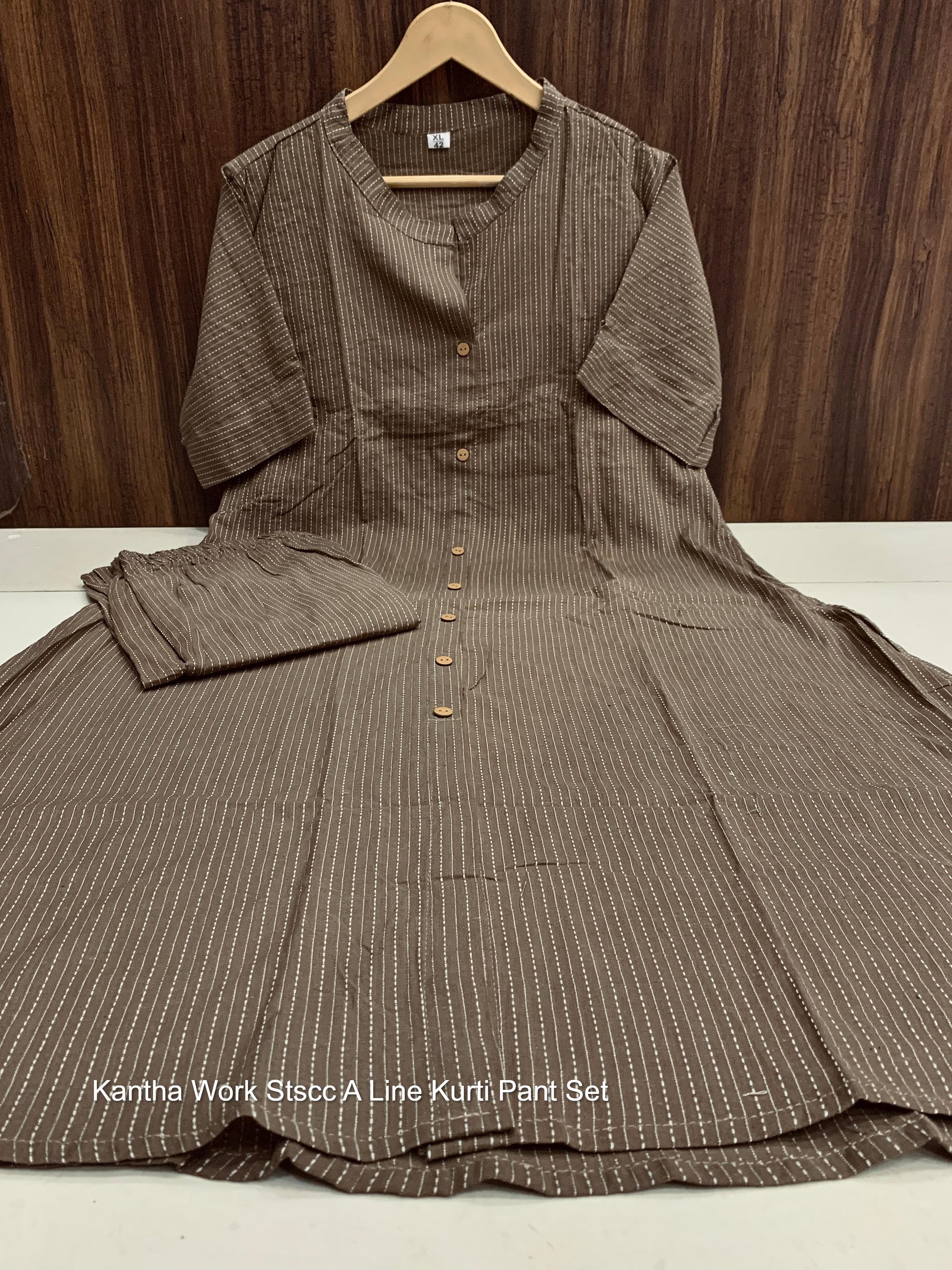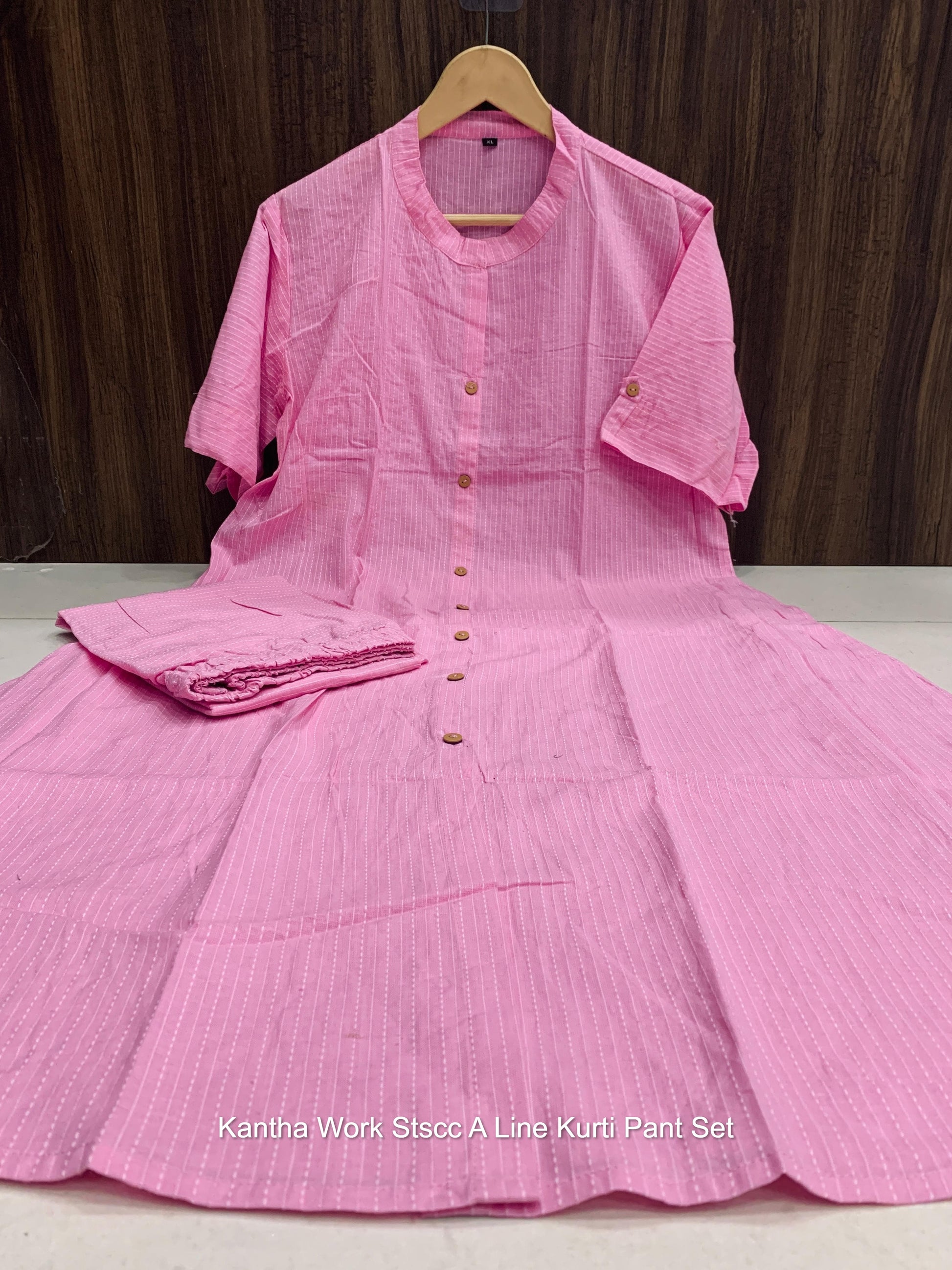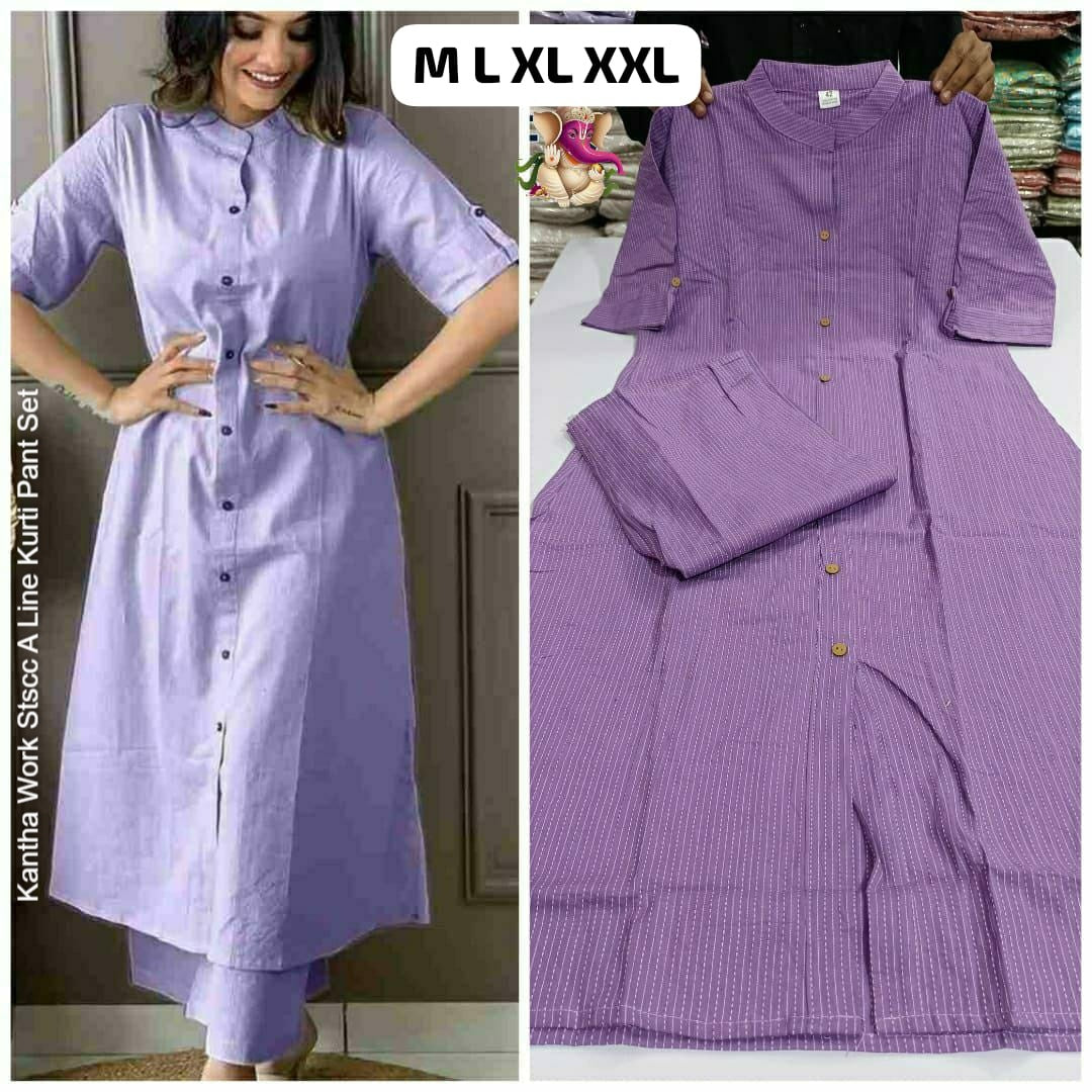 - Kantha Work Stscc A Line Kurti Pant Set Dealer Ahmedabad Surat Wholesale Gujarat India Lowest Price Best Quality Buy Purchase Shipping Kurta Salwaar Kameez Also free Cash on delivery