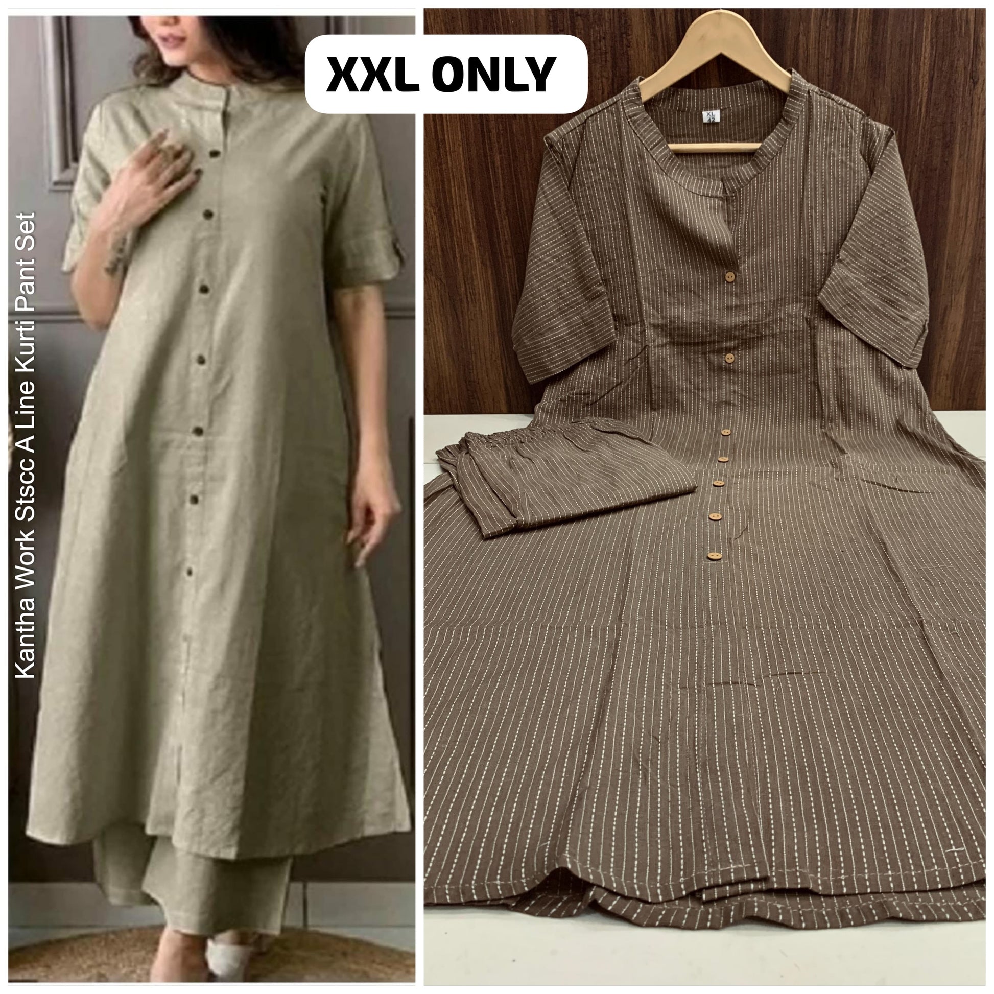 - Fabric Detail: Top : Cotton Full Heavy A Line Kantha Work Beautifully Decorated , Bottom : Cotton , , Size : M, L, Xl, 2Xl