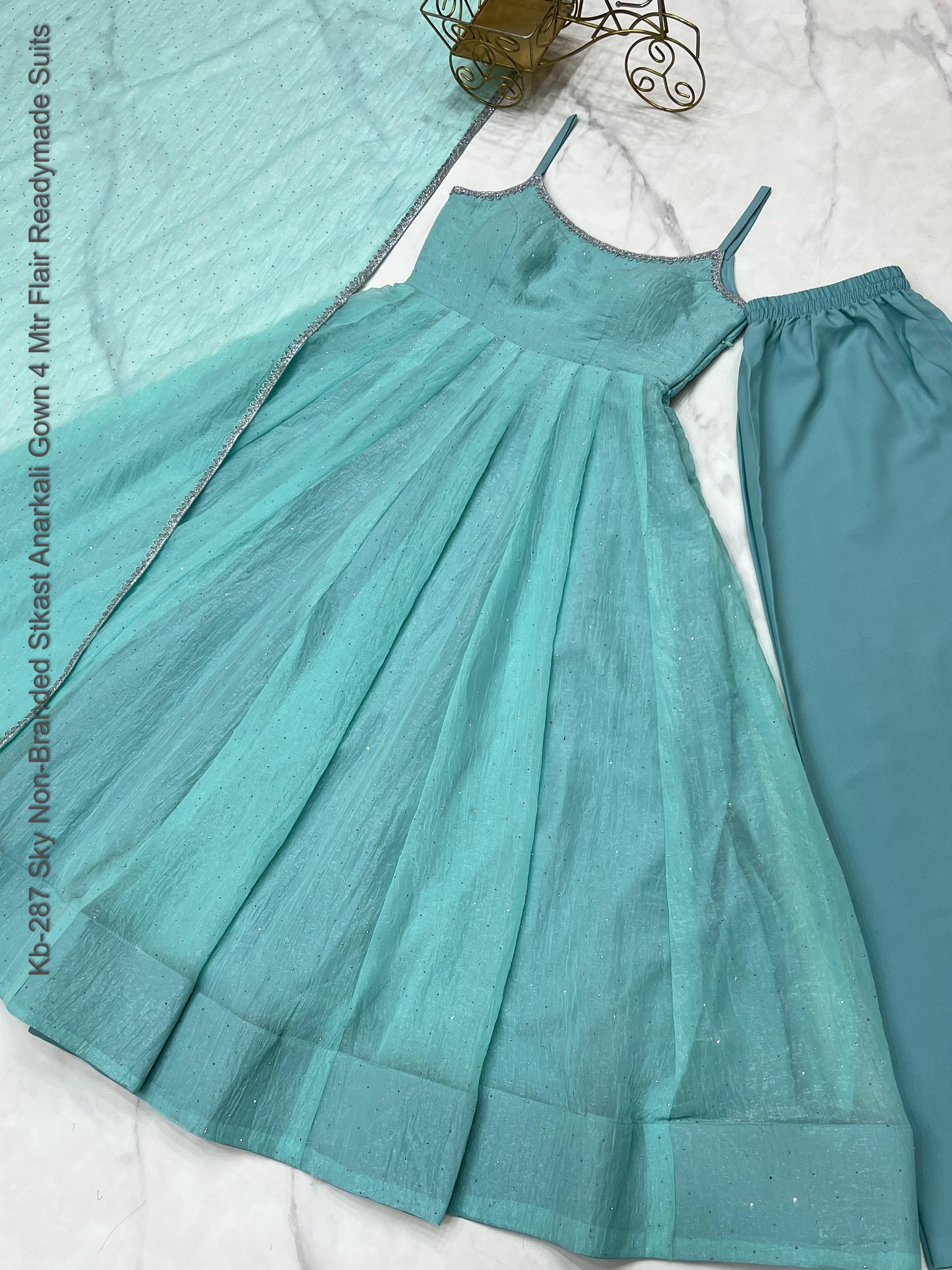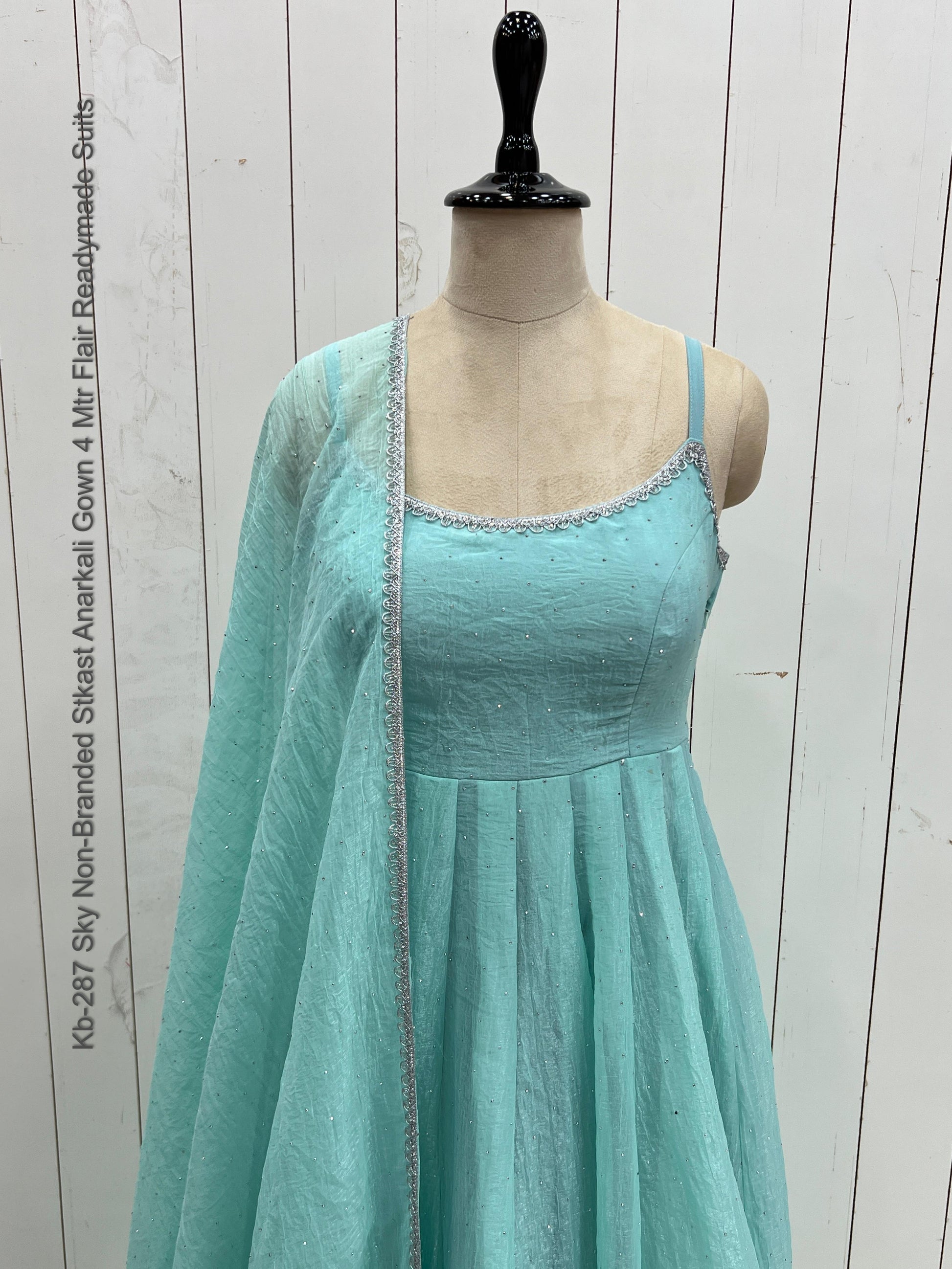 Kb-287 Sky Non-Branded Stkast Anarkali Gown 4 Mtr Flair Readymade Suits