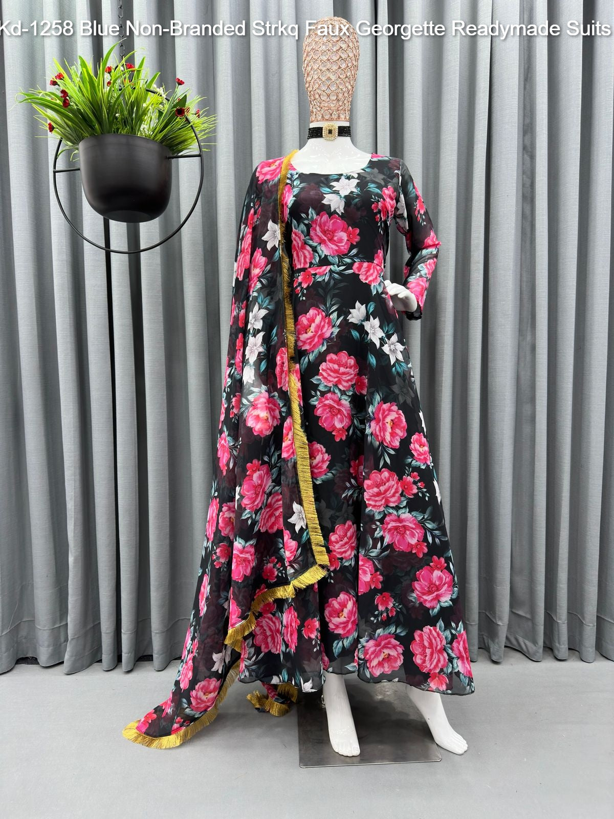Kd-1258 Blue Non-Branded Strkq Faux Georgette Readymade Suits