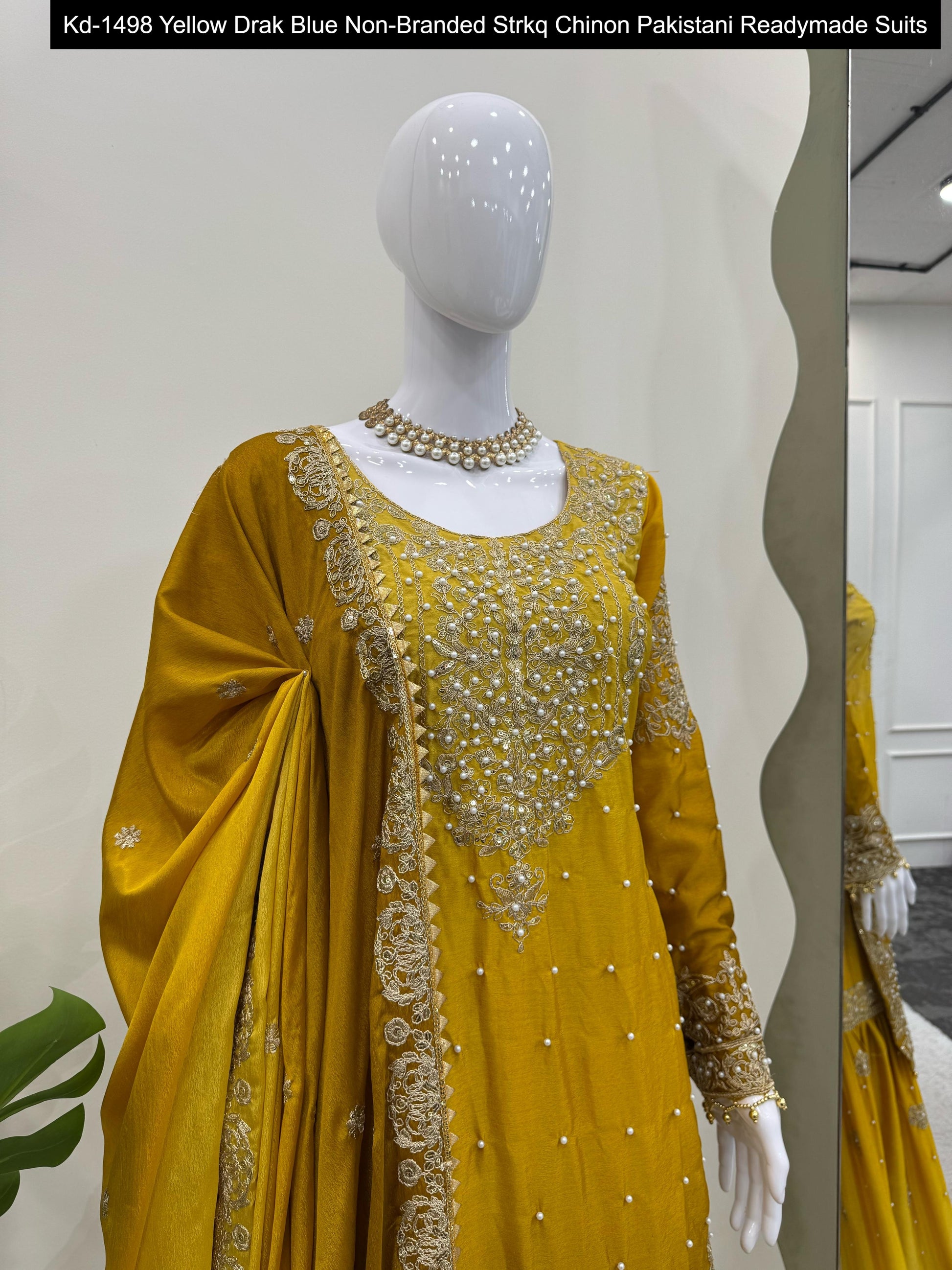 Kd-1498 Yellow Drak Blue Non-Branded Strkq Chinon Pakistani Readymade Suits