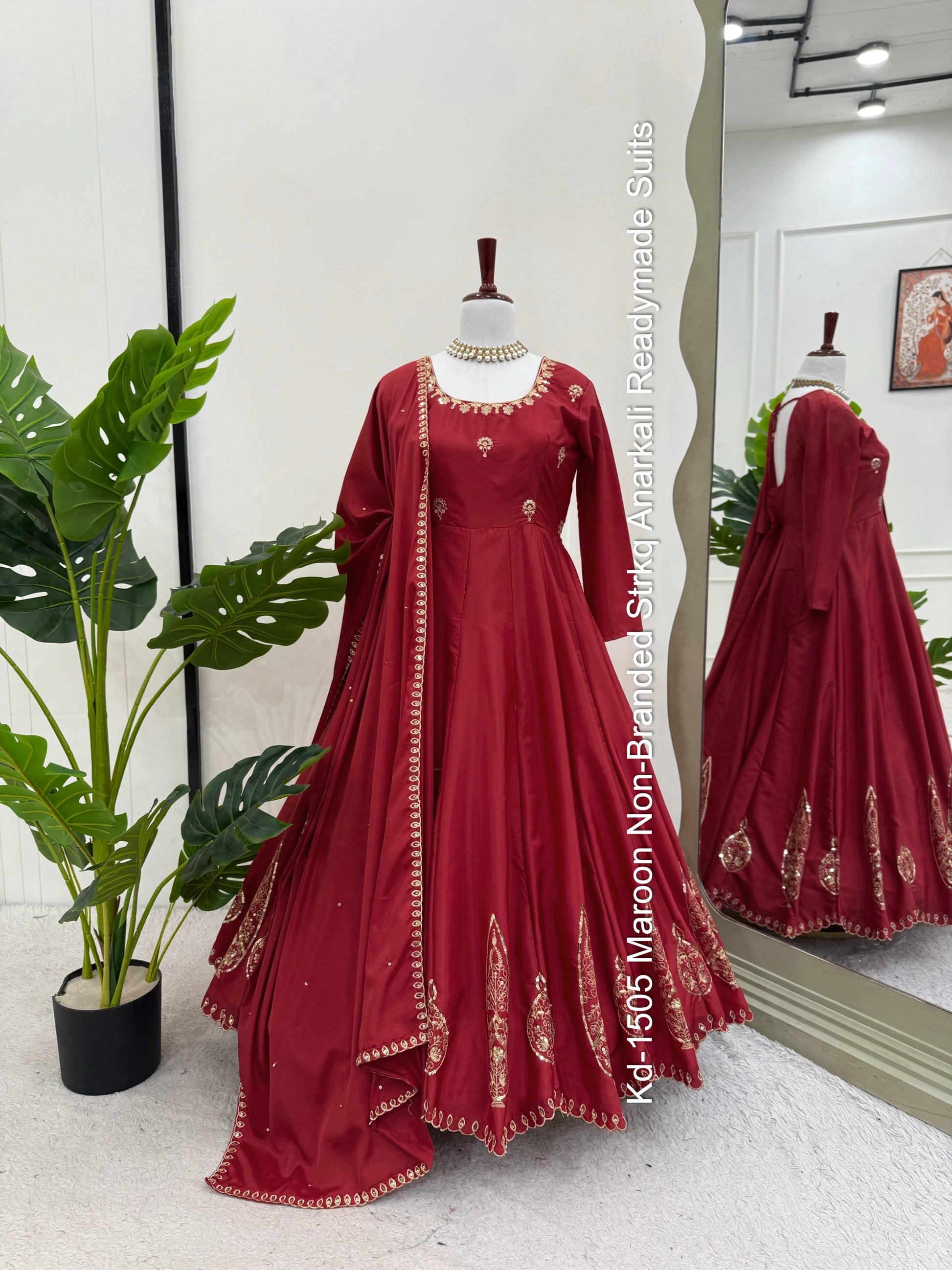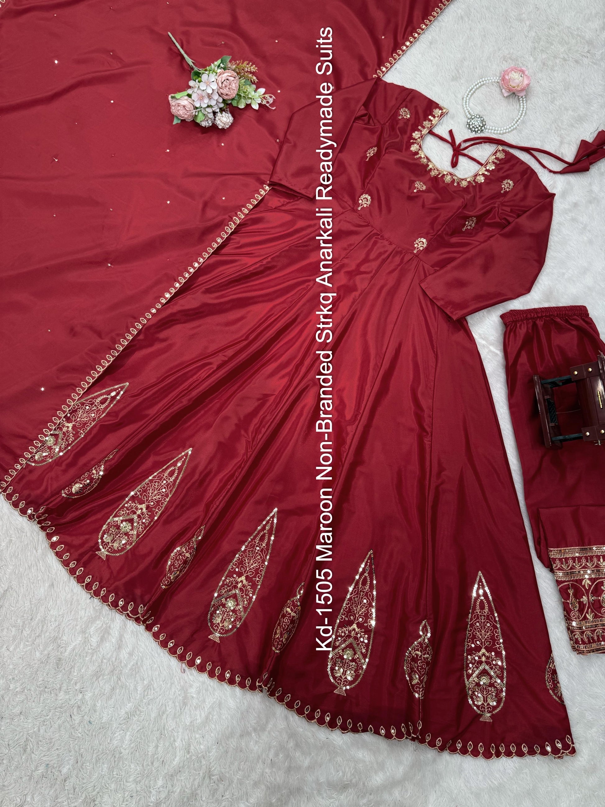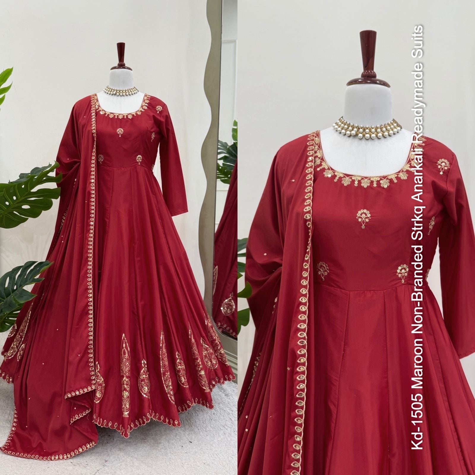Kd-1505 Maroon Non-Branded Strkq Anarkali Readymade Suits
