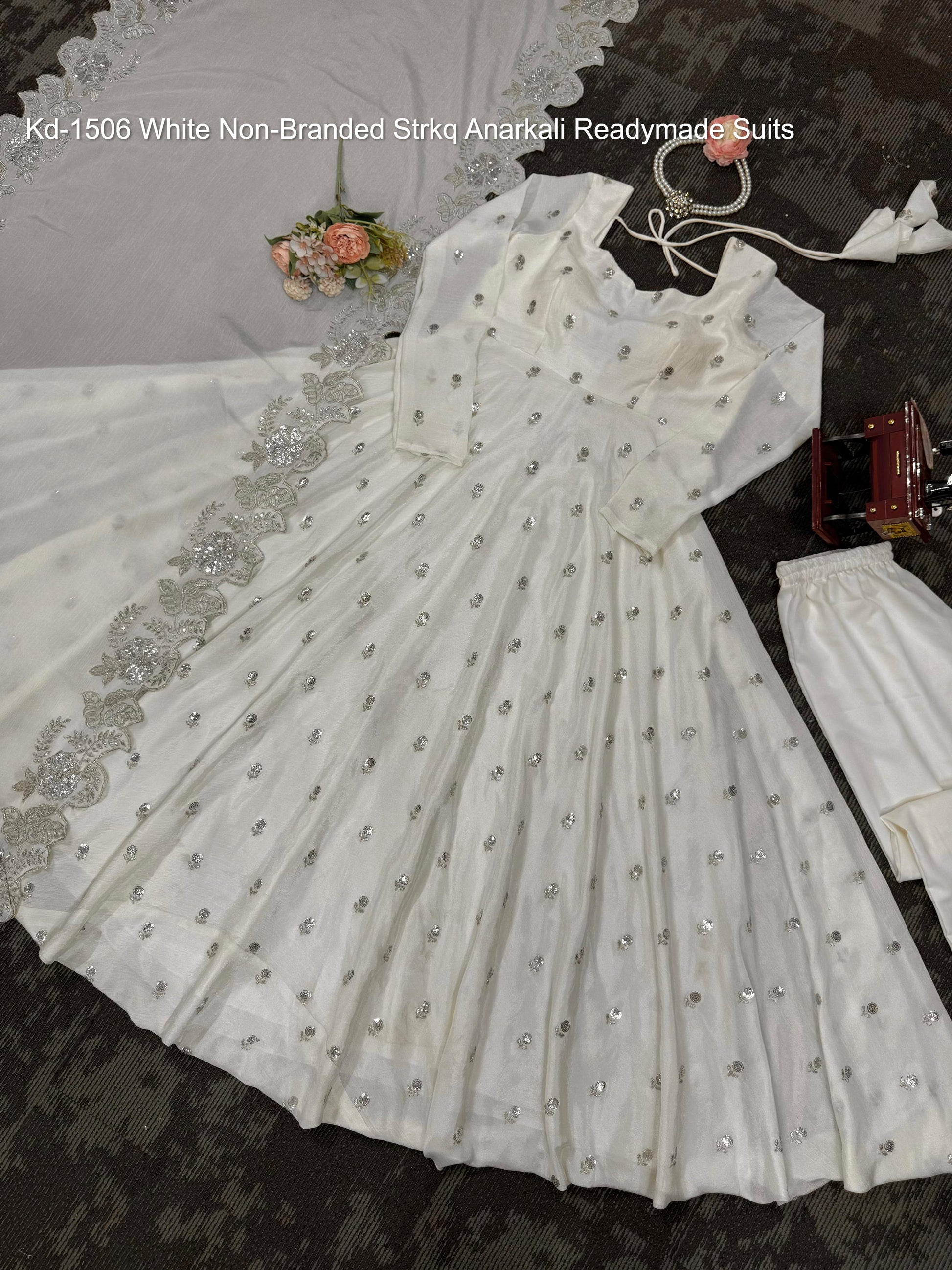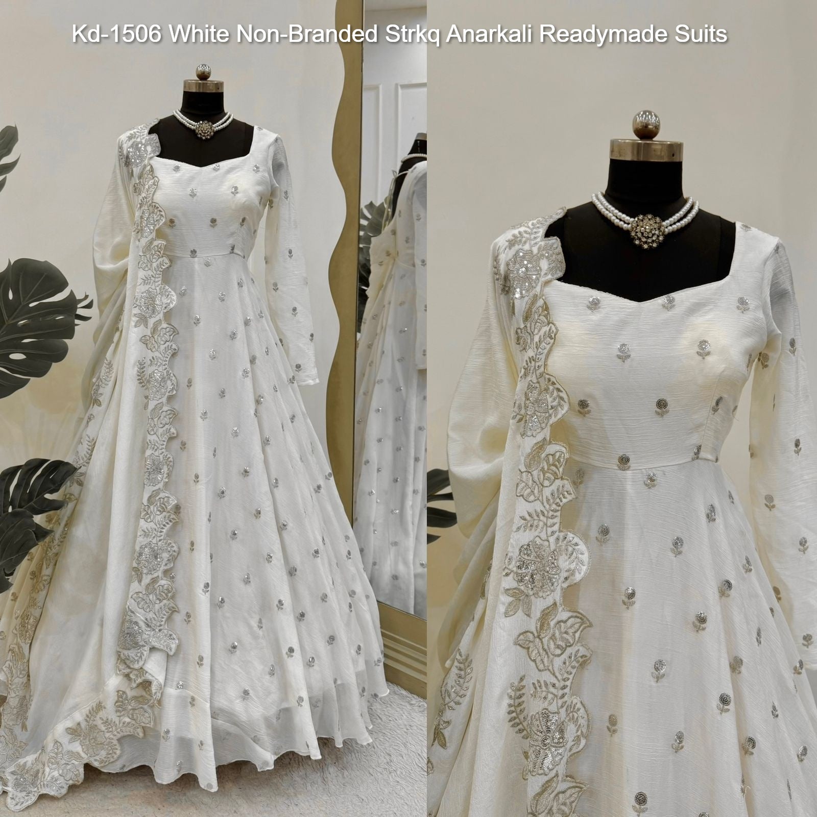 Kd-1506 White Non-Branded Strkq Anarkali Readymade Suits