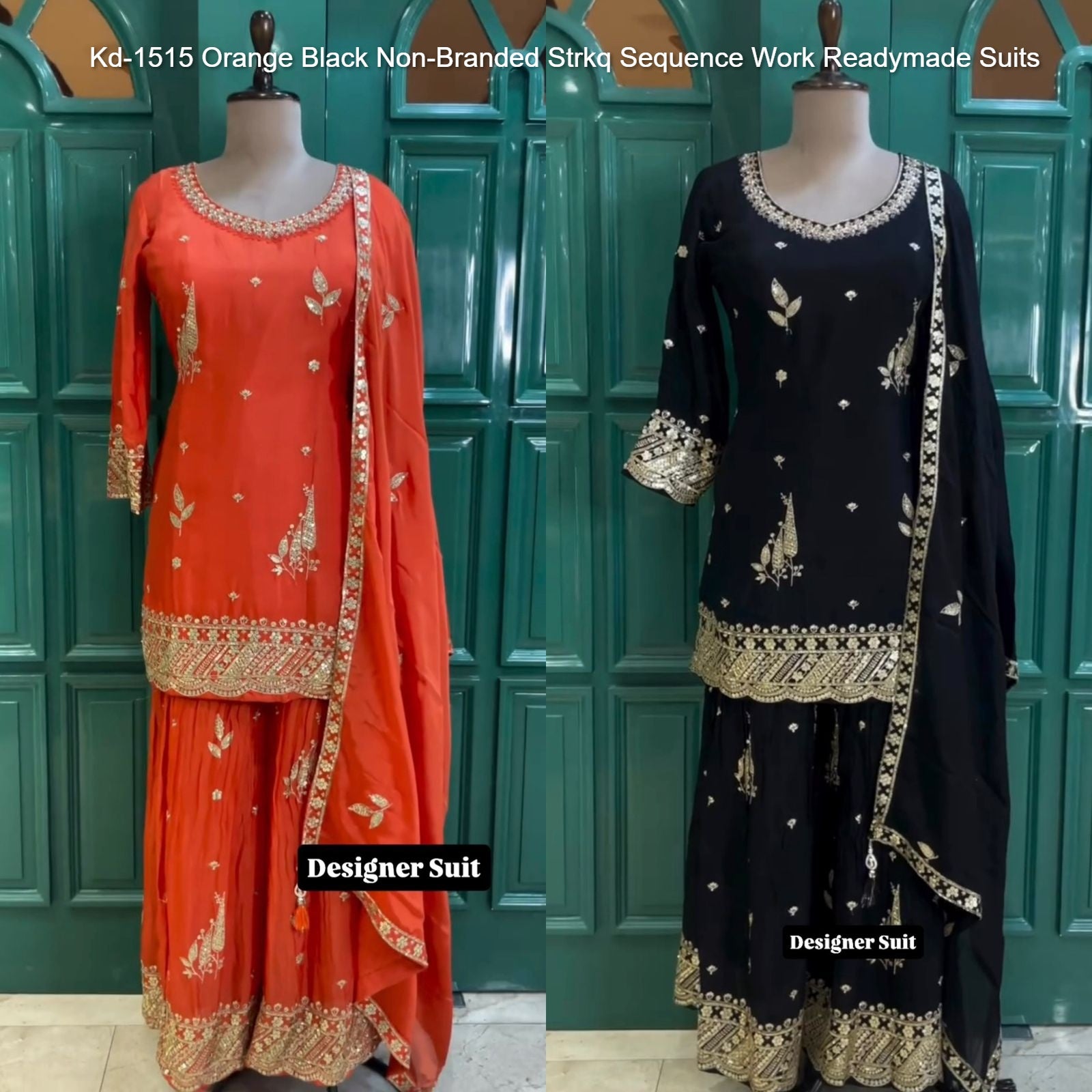 - Kd-1515 Orange Black Non-Branded Strkq Sequence Work Readymade Suits Dealer Ahmedabad Surat Wholesale Gujarat India Lowest Price Best Quality Buy Purchase Shipping Kurta Salwaar Kameez Also free Cash on delivery