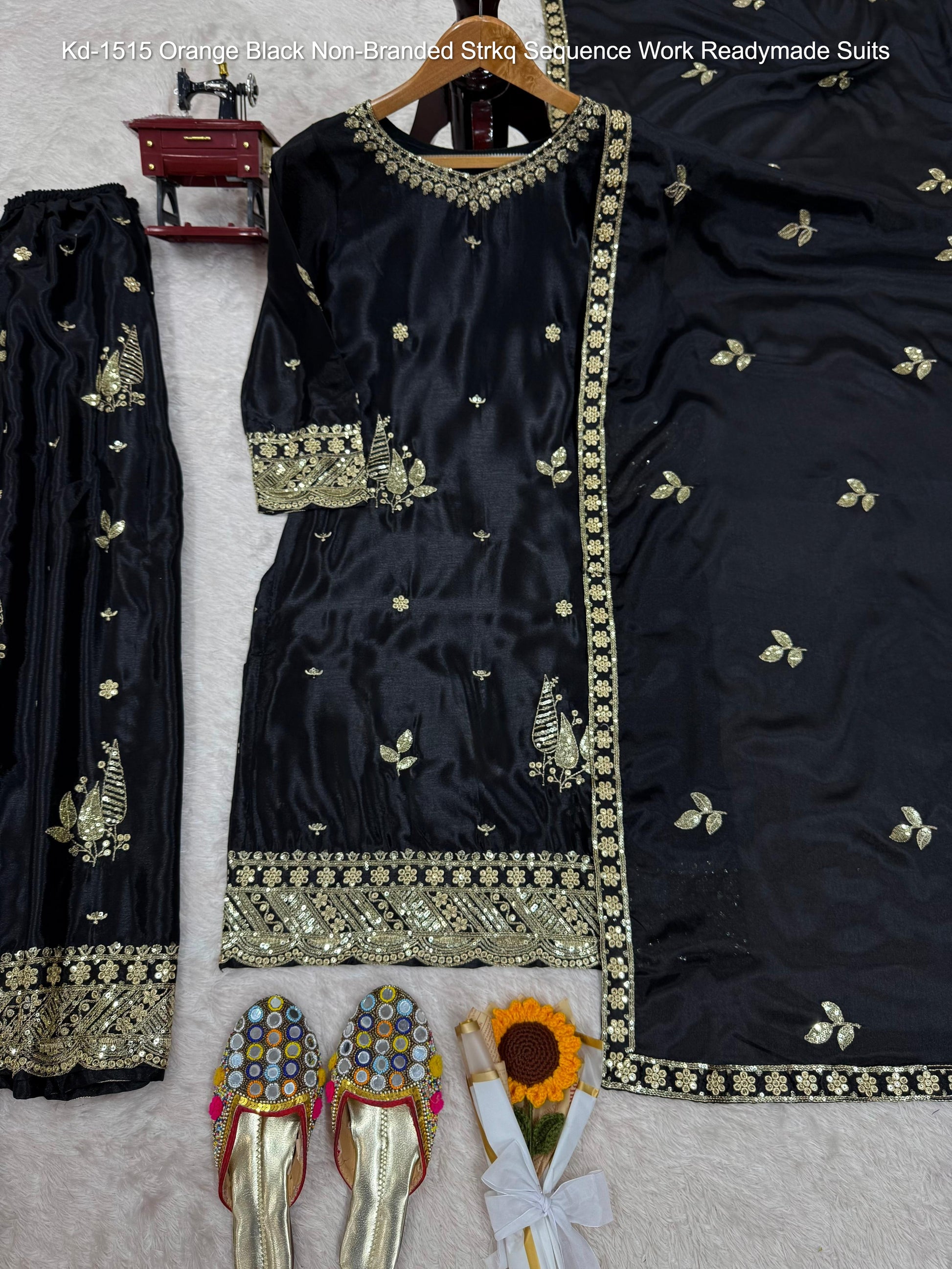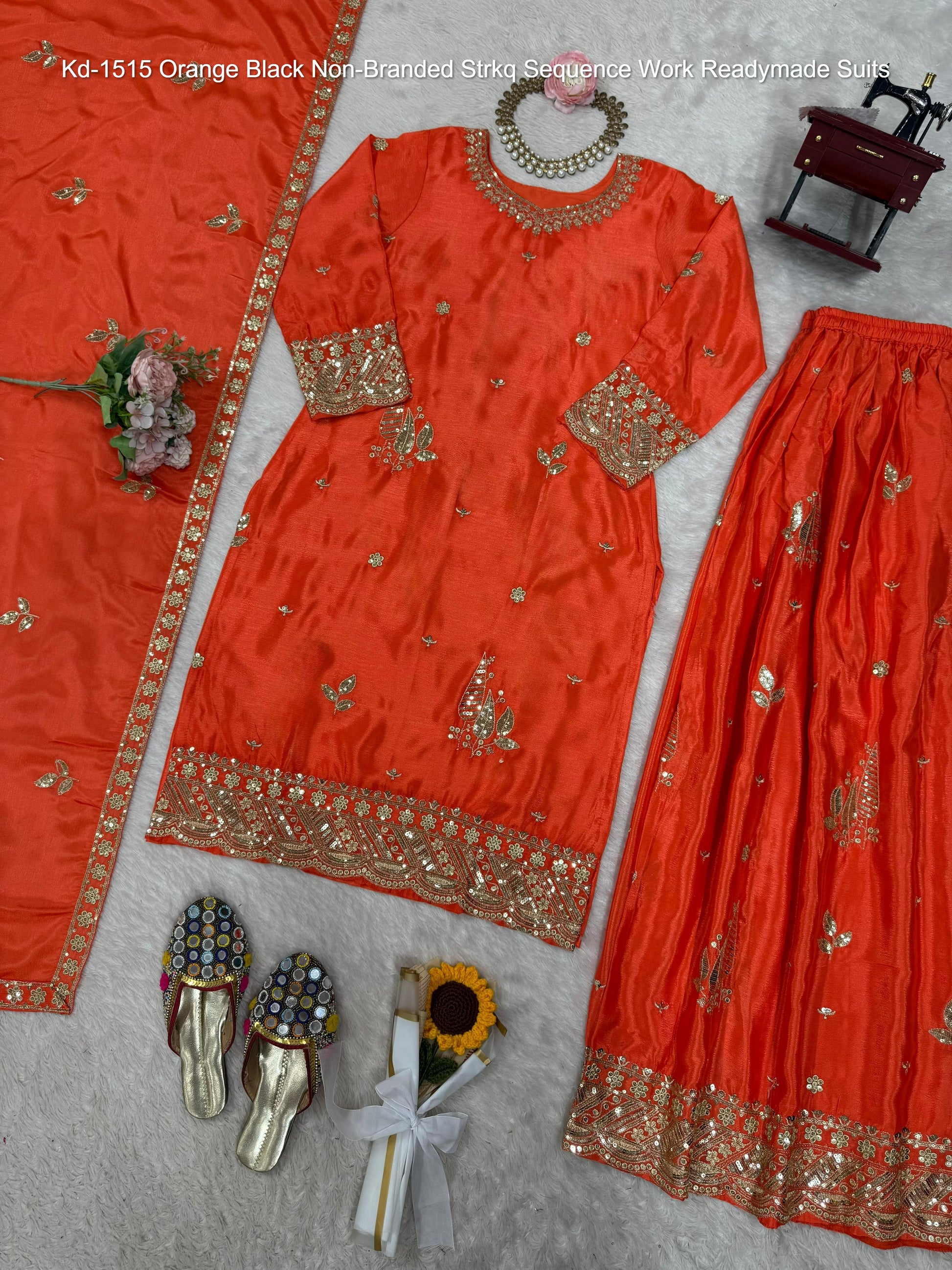 Kd-1515 Orange Black Non-Branded Strkq Sequence Work Readymade Suits