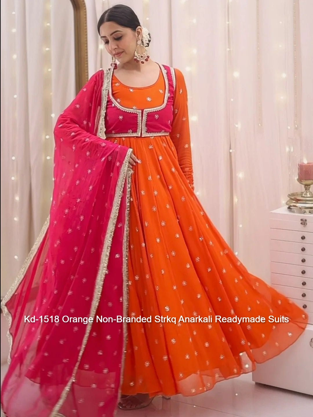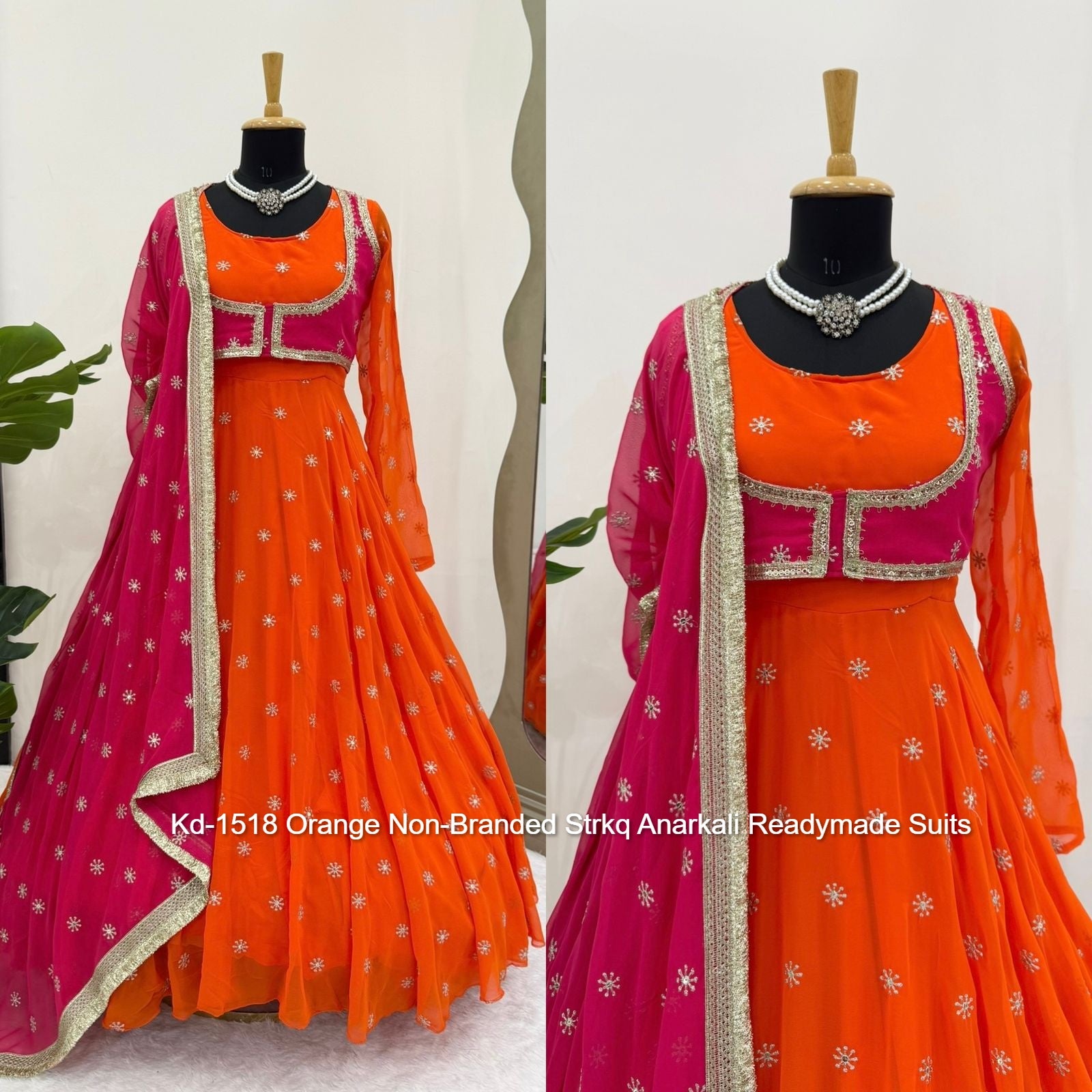 Kd-1518 Orange Non-Branded Strkq Anarkali Readymade Suits