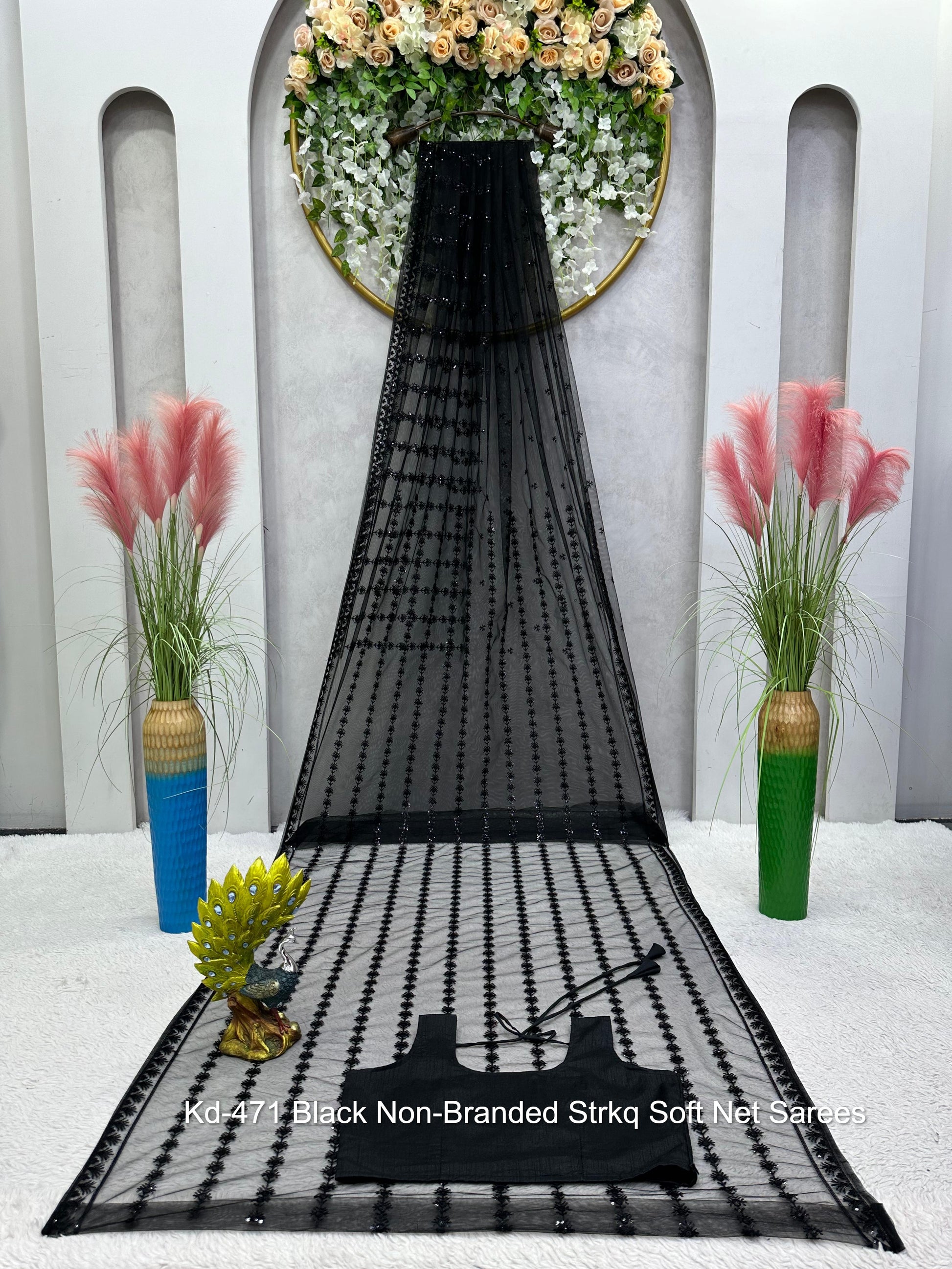 Kd-471 Black Non-Branded Strkq Soft Net Sarees