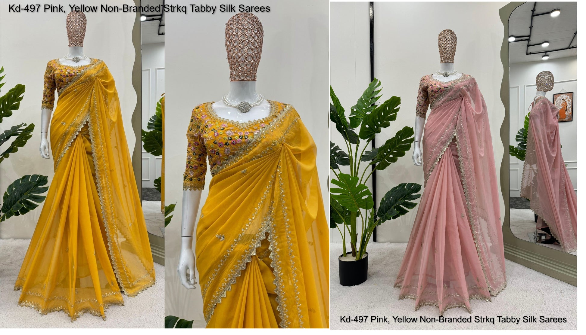 - Kd-497 Pink, Yellow Non-Branded Strkq Tabby Silk Sarees Dealer Ahmedabad Surat Wholesale Gujarat India Lowest Price Best Quality Buy Purchase Shipping Kurta Salwaar Kameez Also free Cash on delivery