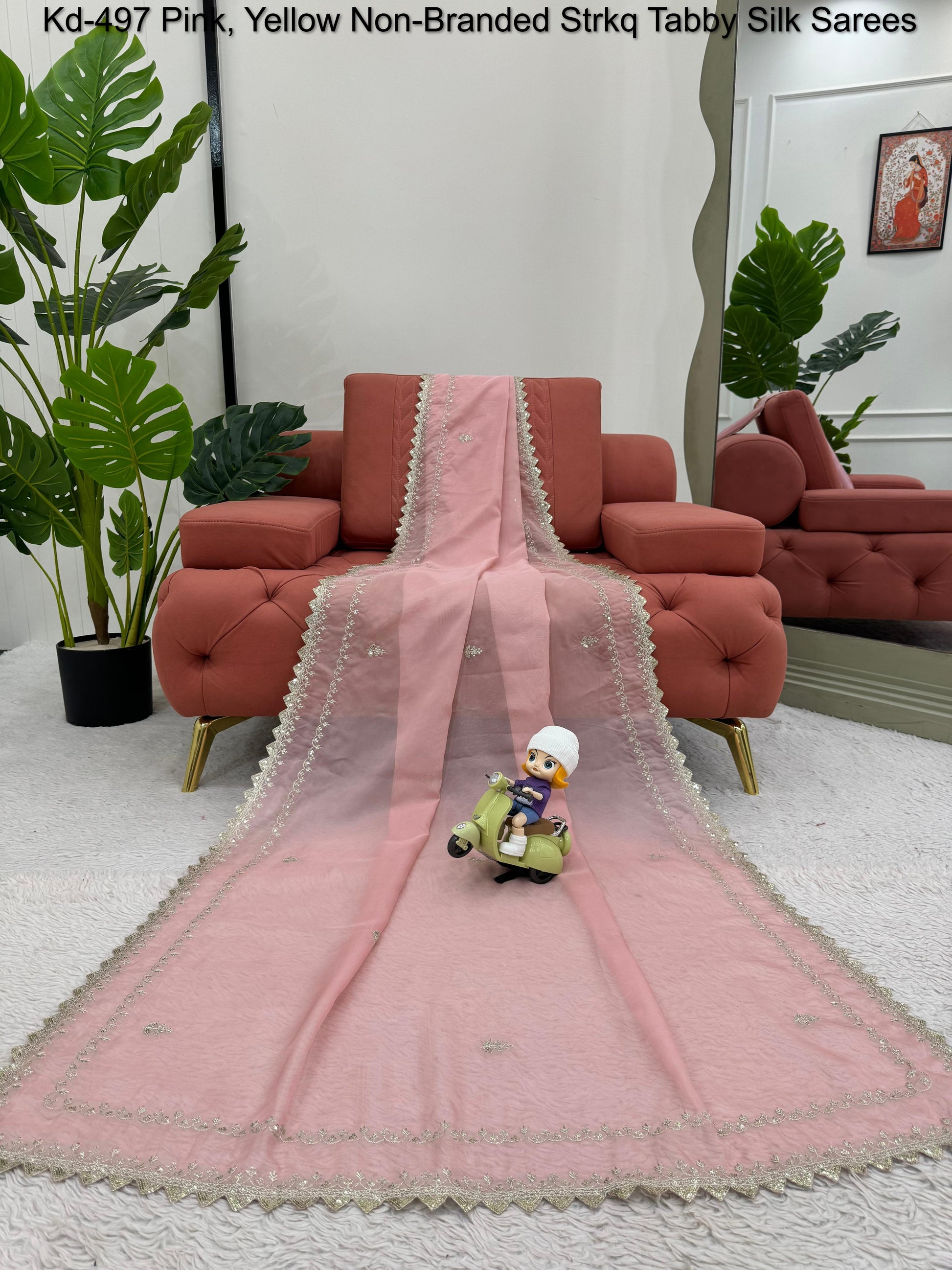 Kd-497 Pink, Yellow Non-Branded Strkq Tabby Silk Sarees