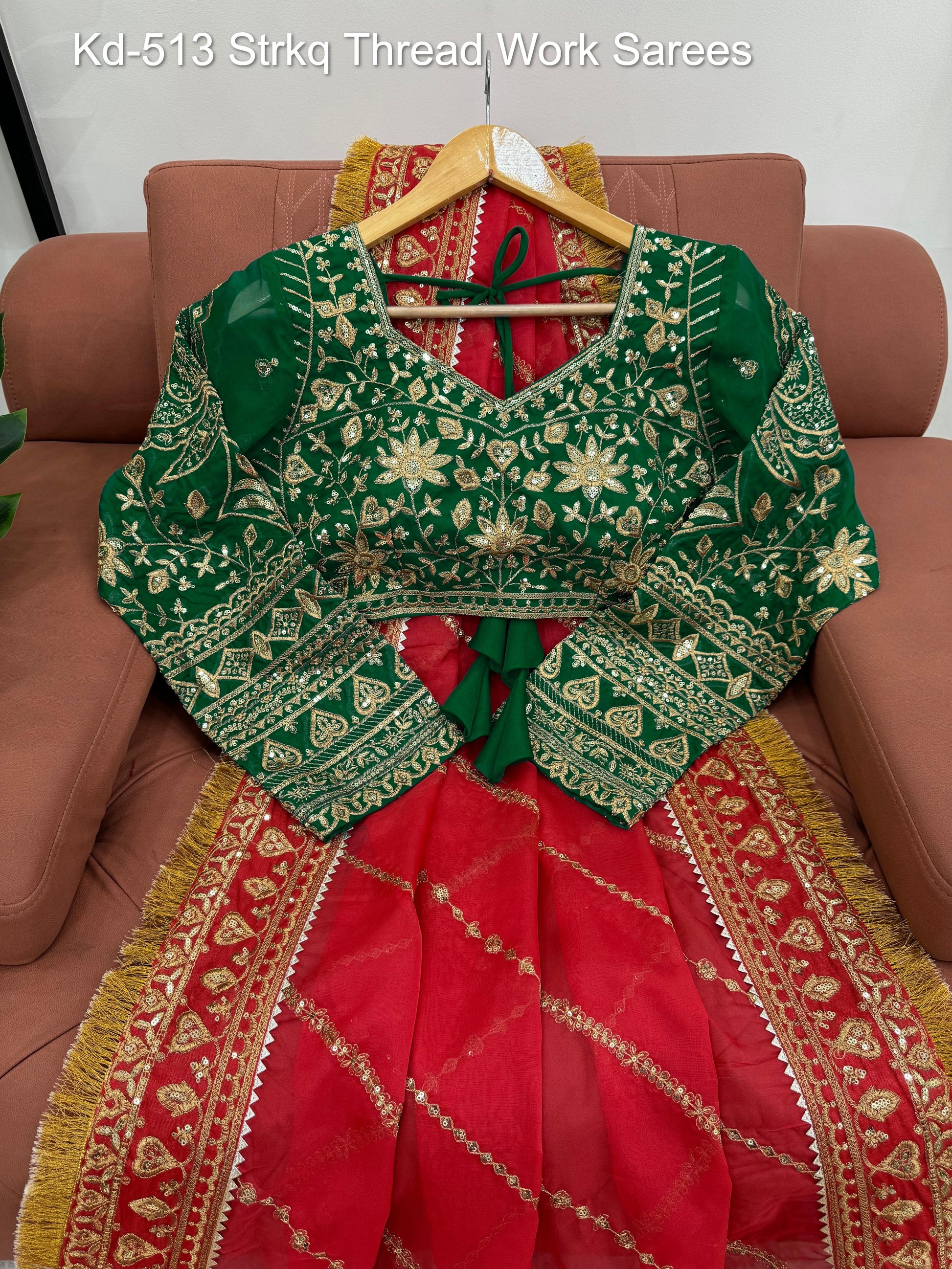 - Kd-513 Strkq Thread Work Sarees Dealer Ahmedabad Surat Wholesale Gujarat India Lowest Price Best Quality Buy Purchase Shipping Kurta Salwaar Kameez Also free Cash on delivery