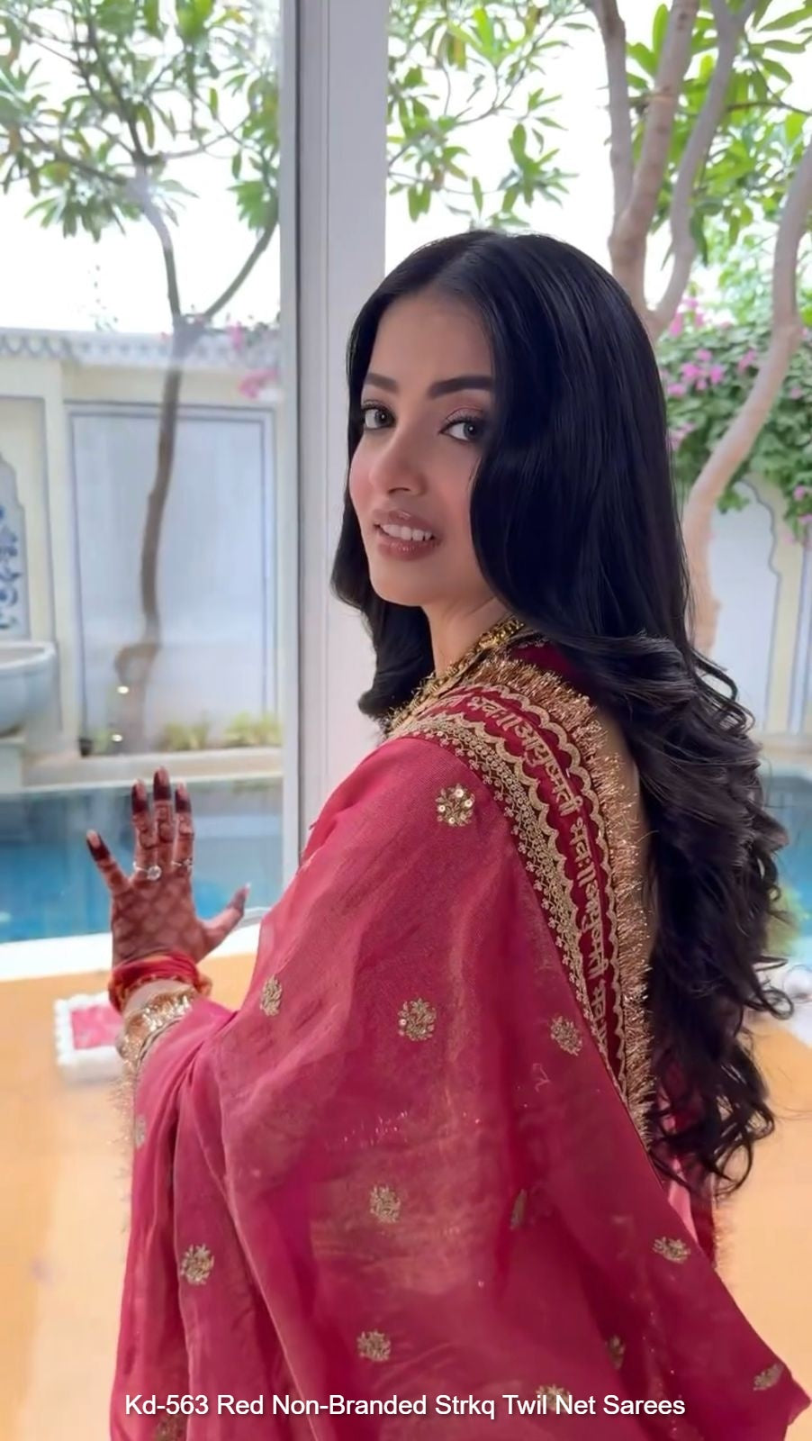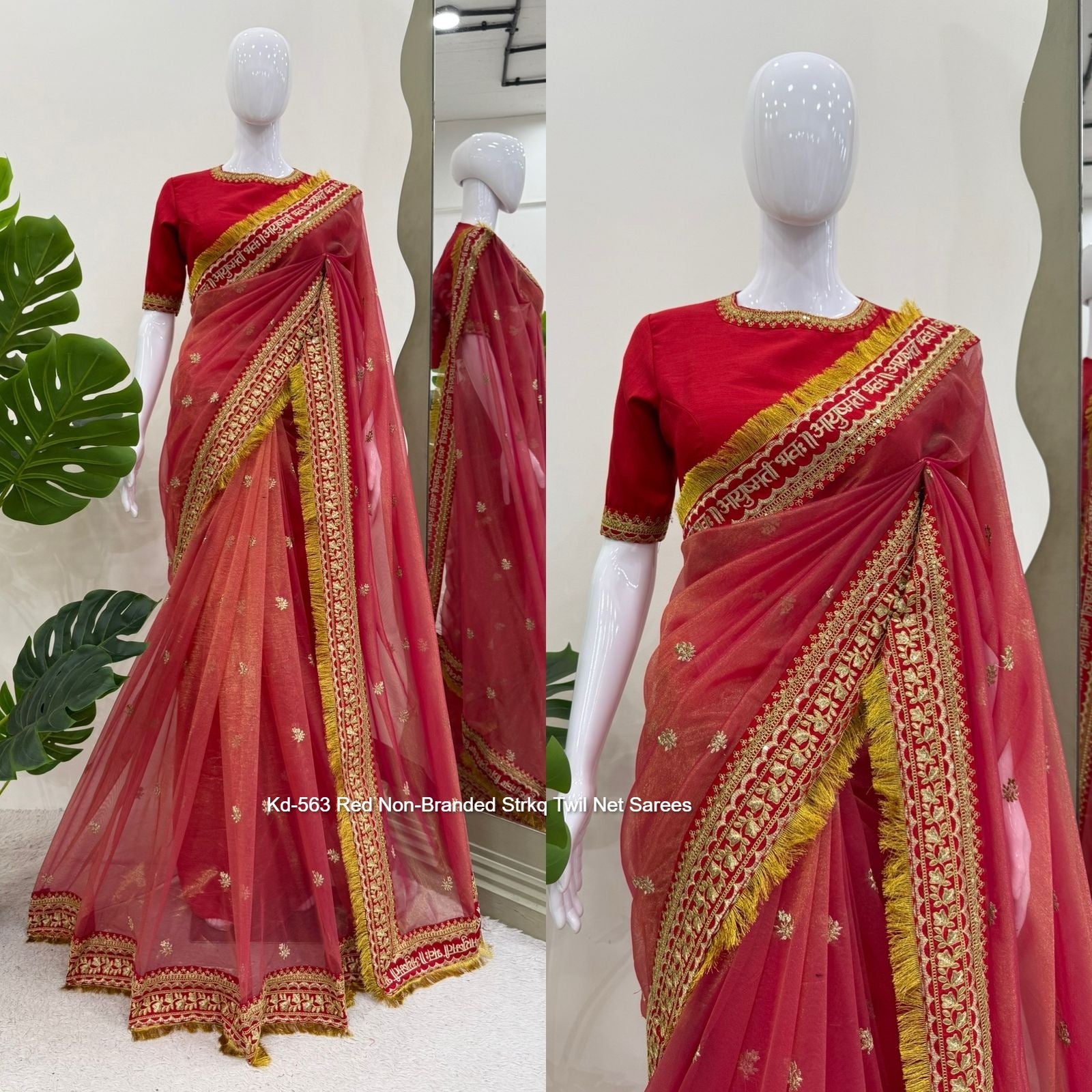 Kd-563 Red Non-Branded Strkq Twil Net Sarees