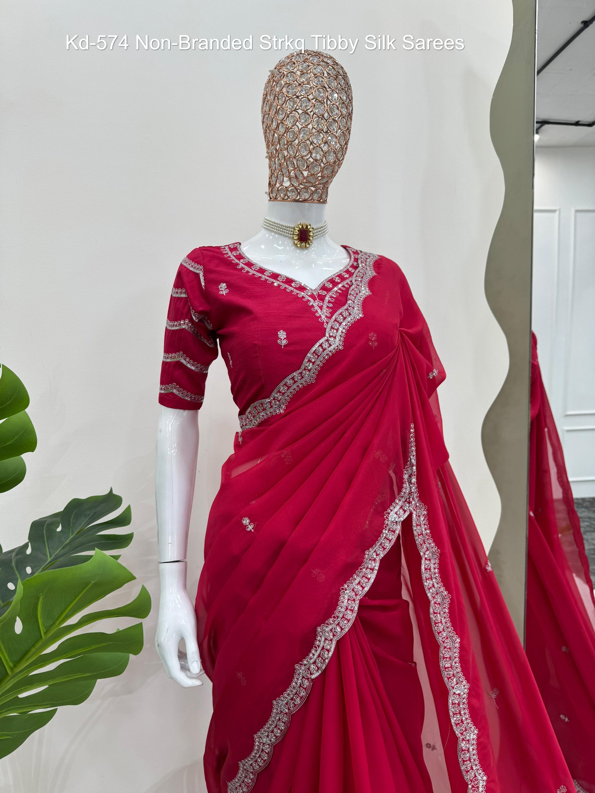 Kd-574 Non-Branded Strkq Tibby Silk Sarees