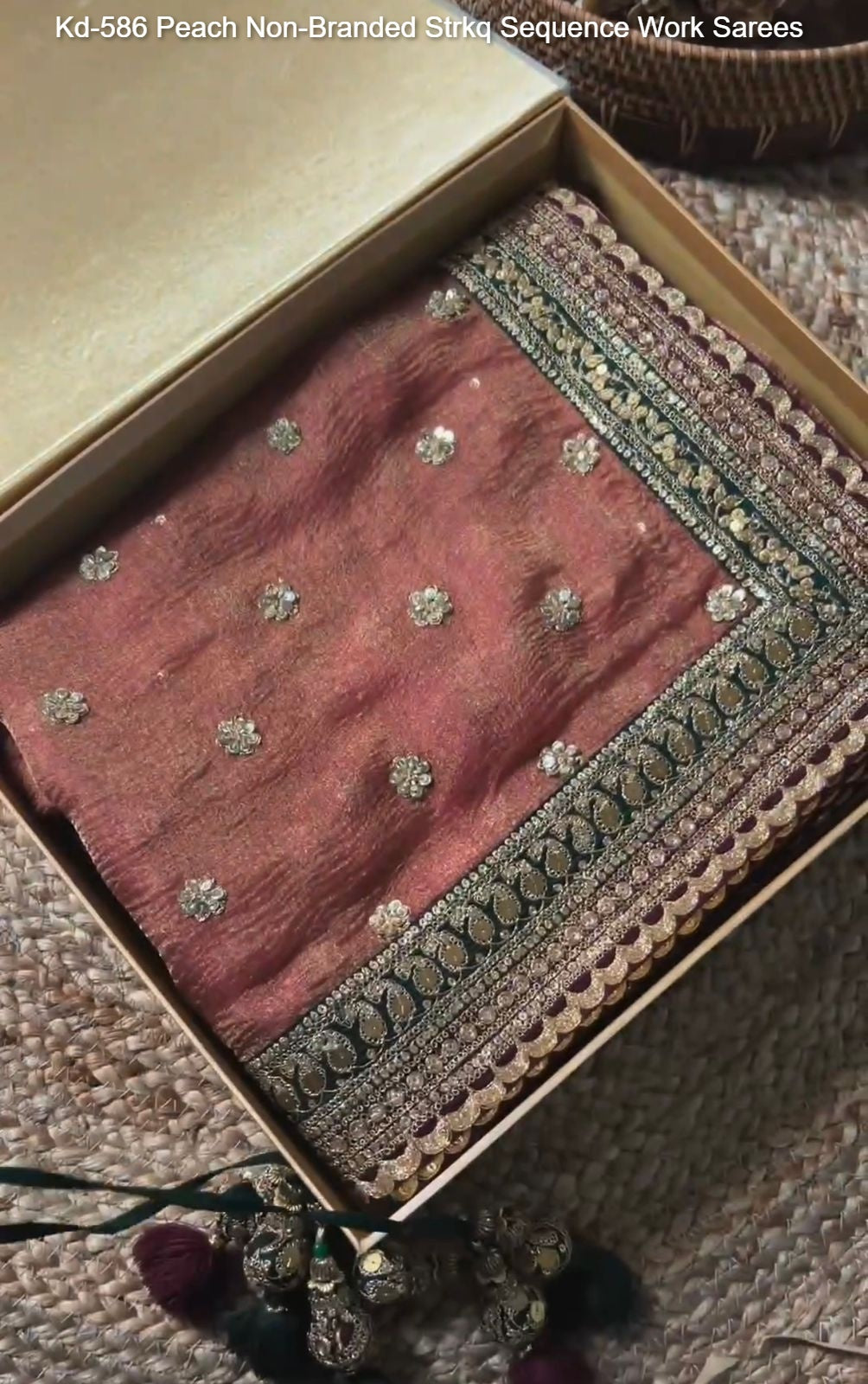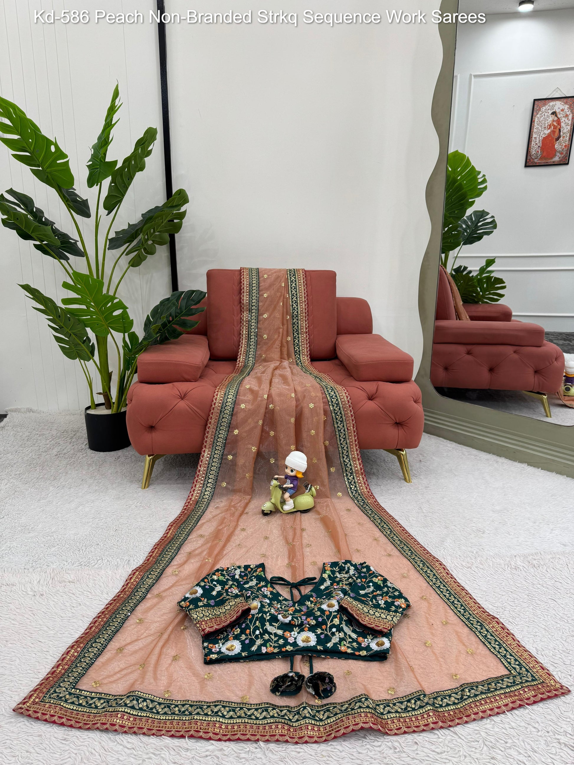 Kd-586 Peach Non-Branded Strkq Sequence Work Sarees