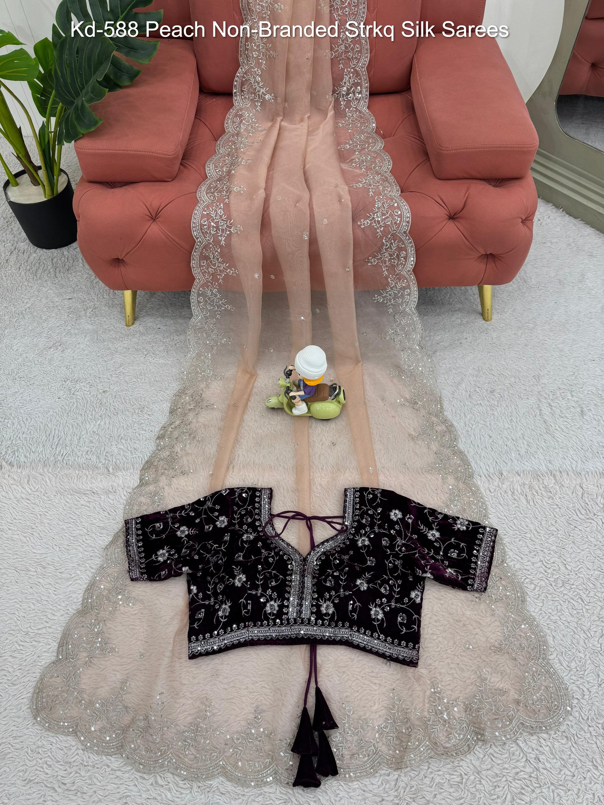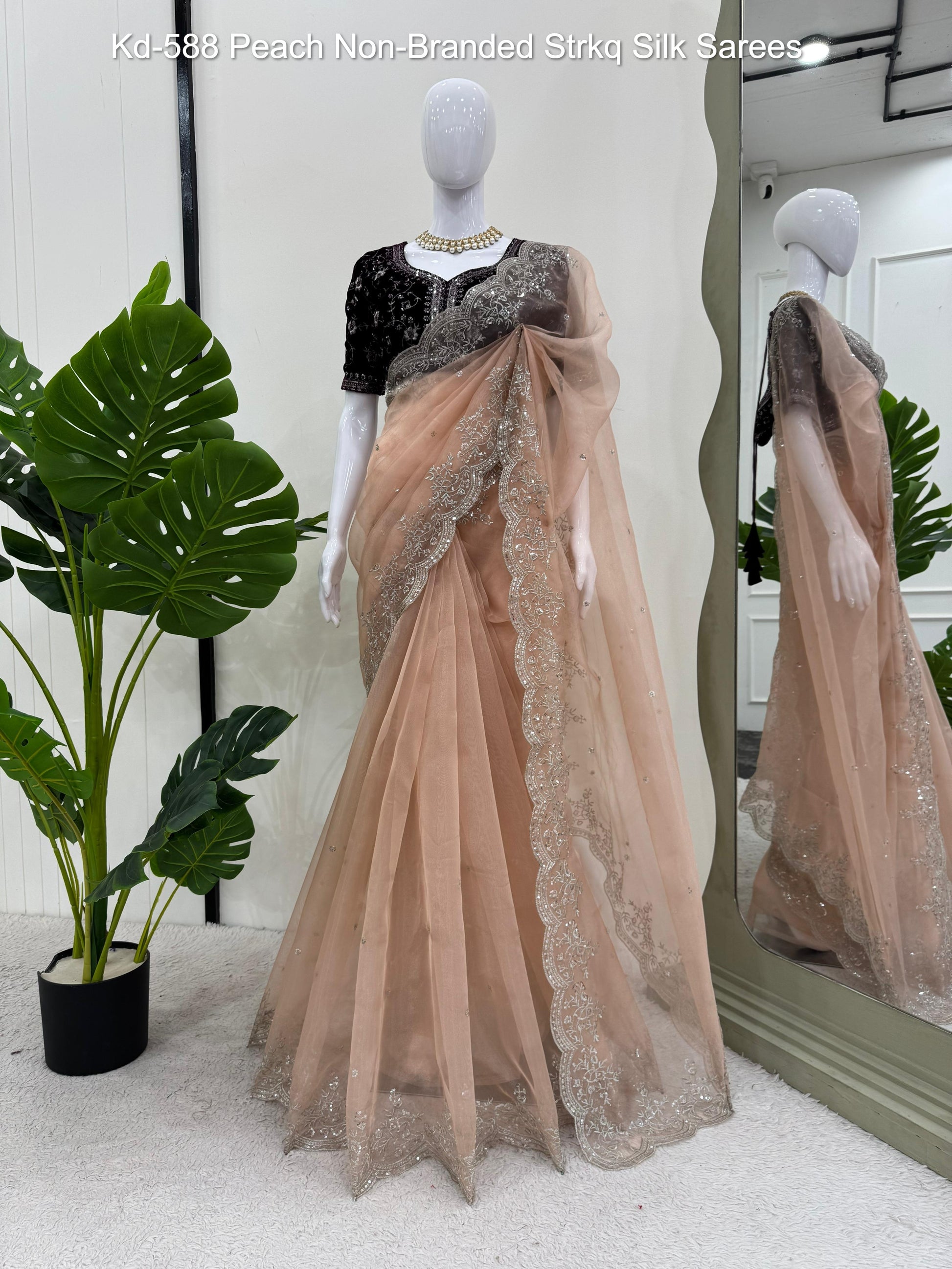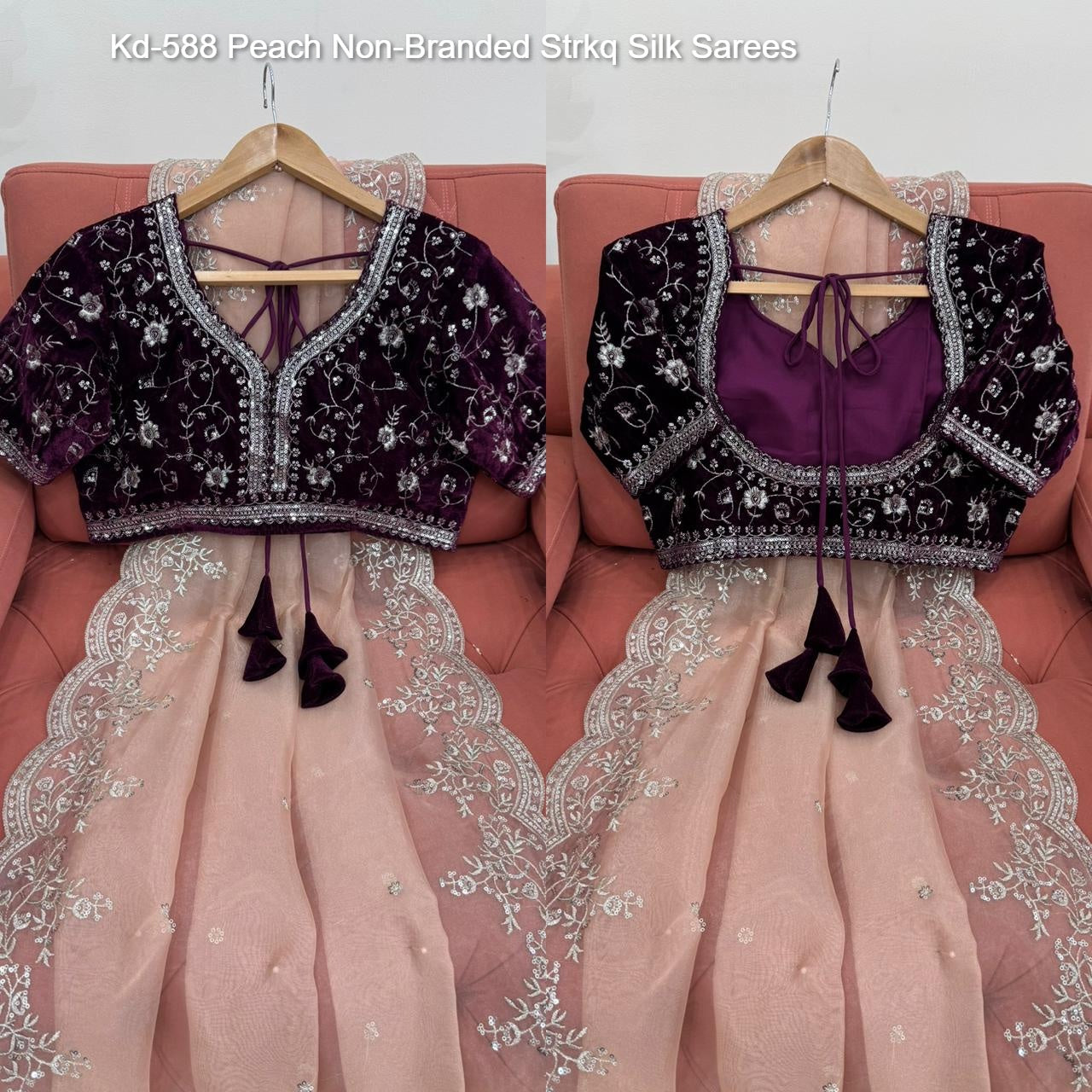 Kd-588 Peach Non-Branded Strkq Silk Sarees