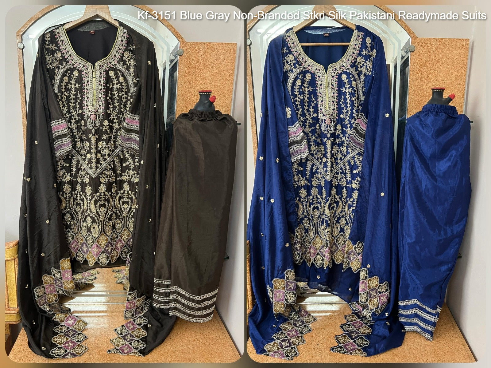 - Kf-3151 Blue Gray Non-Branded Stkri Silk Pakistani Readymade Suits Dealer Ahmedabad Surat Wholesale Gujarat India Lowest Price Best Quality Buy Purchase Shipping Kurta Salwaar Kameez Also free Cash on delivery