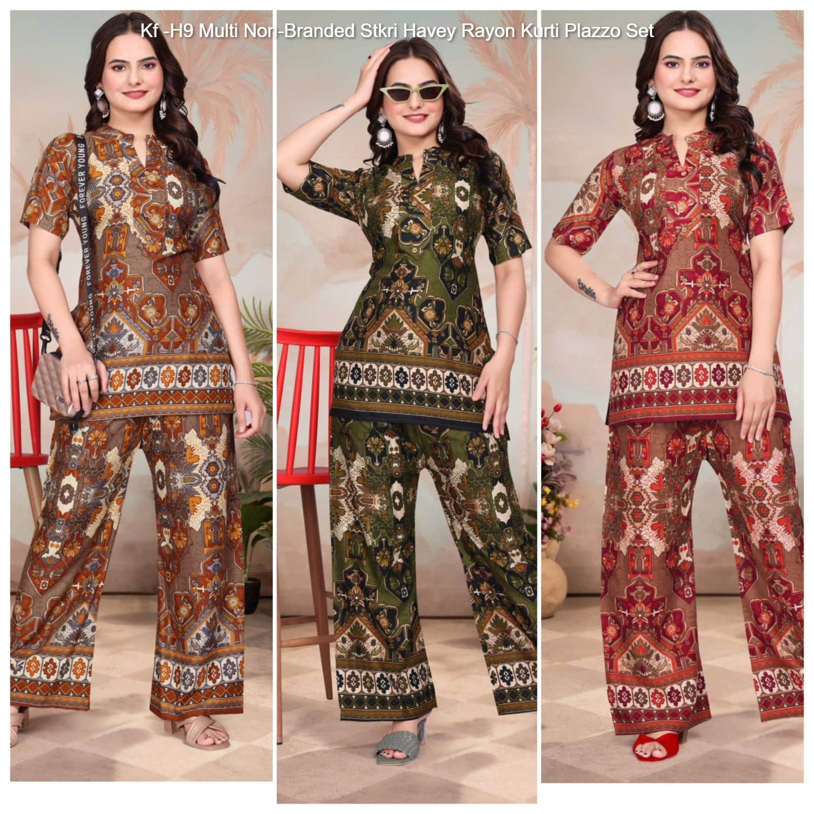Kf -H9 Multi Non-Branded Stkri Havey Rayon Kurti Plazzo Set
