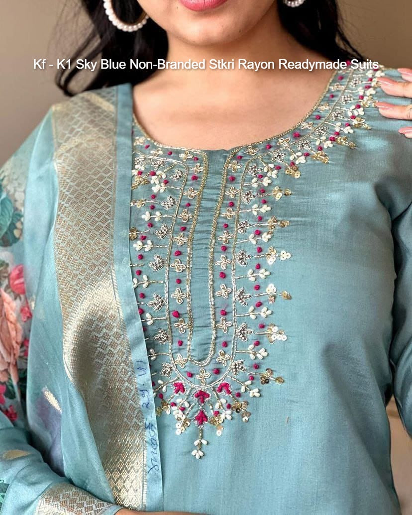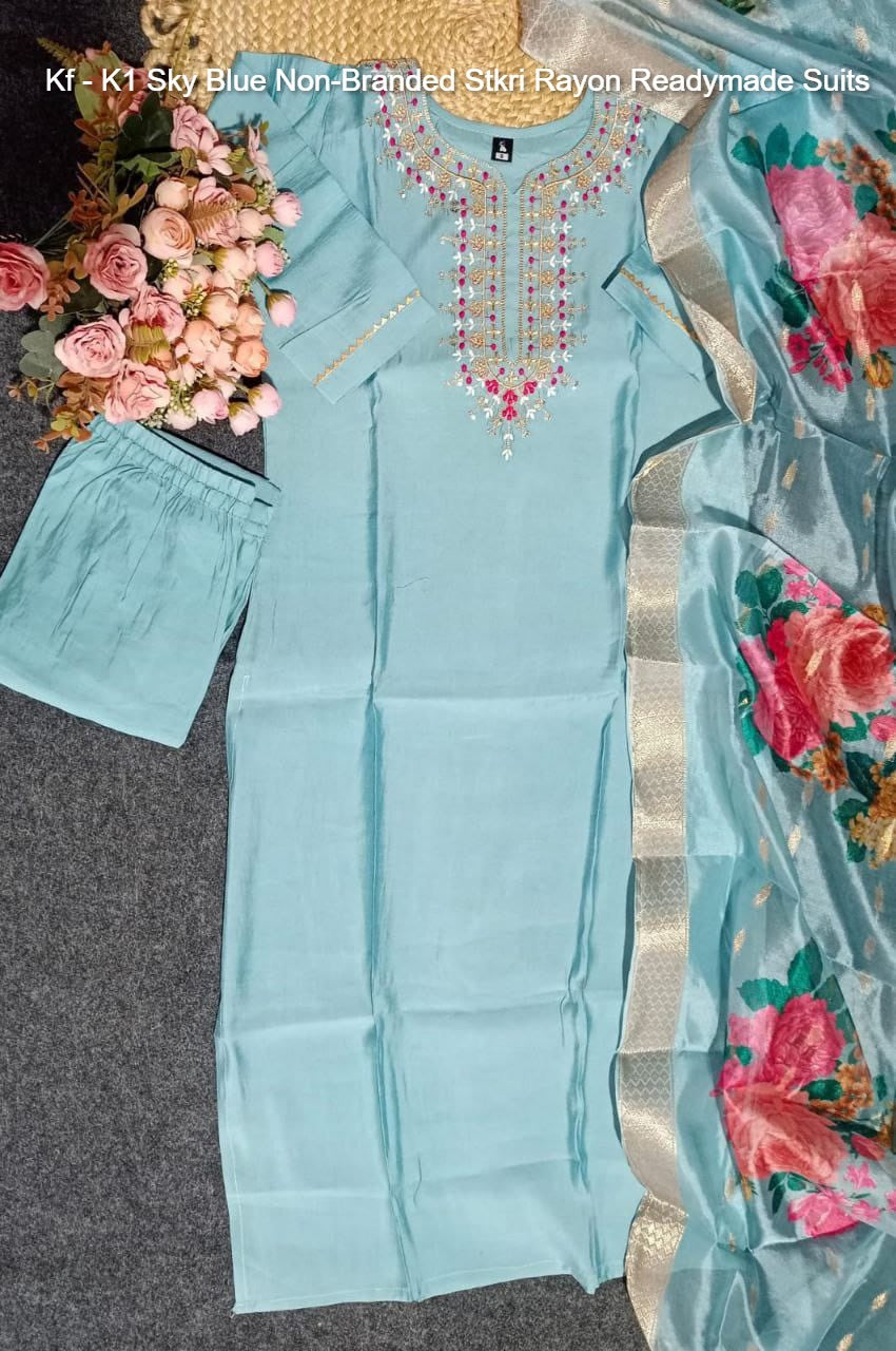 Kf - K1 Sky Blue Non-Branded Stkri Rayon Readymade Suits