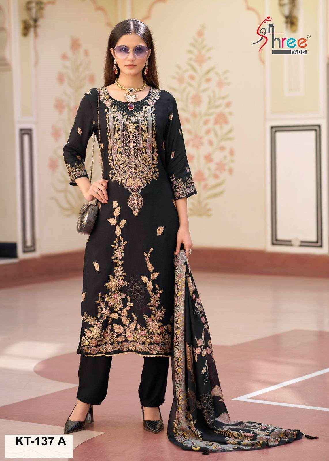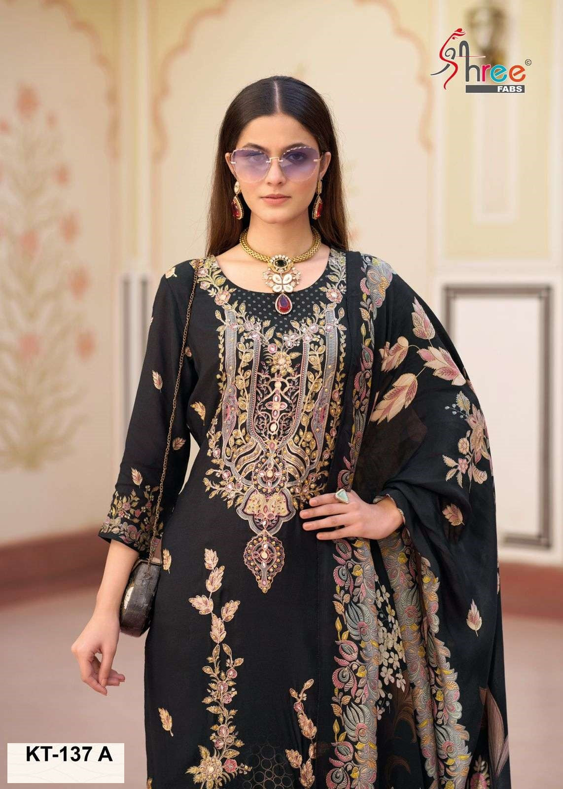 Kt-137 A Shree Fabs Viscose Muslin Karachi Unstitched Suits