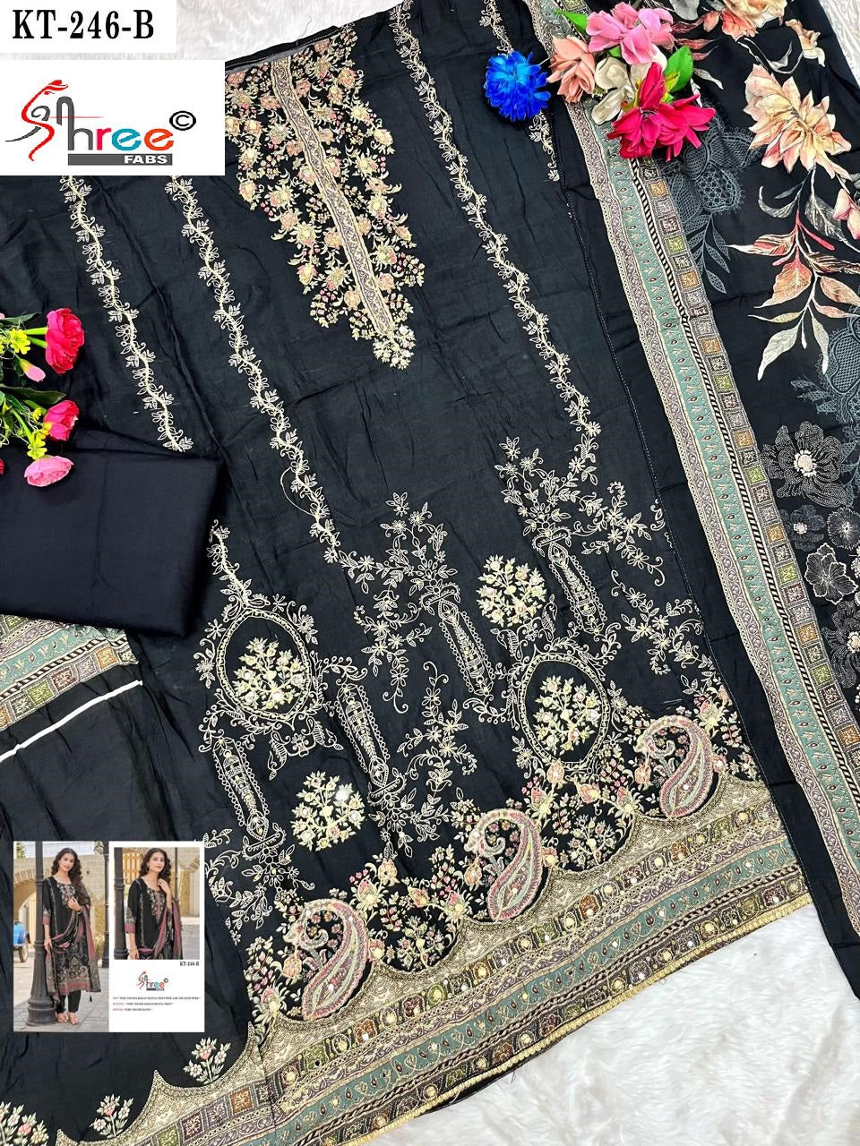 - Kt-246-B Shree Fabs Viscose Karachi Unstitched Suits Dealer Ahmedabad Surat Wholesale Gujarat India Lowest Price Best Quality Buy Purchase Shipping Kurta Salwaar Kameez Also free Cash on delivery