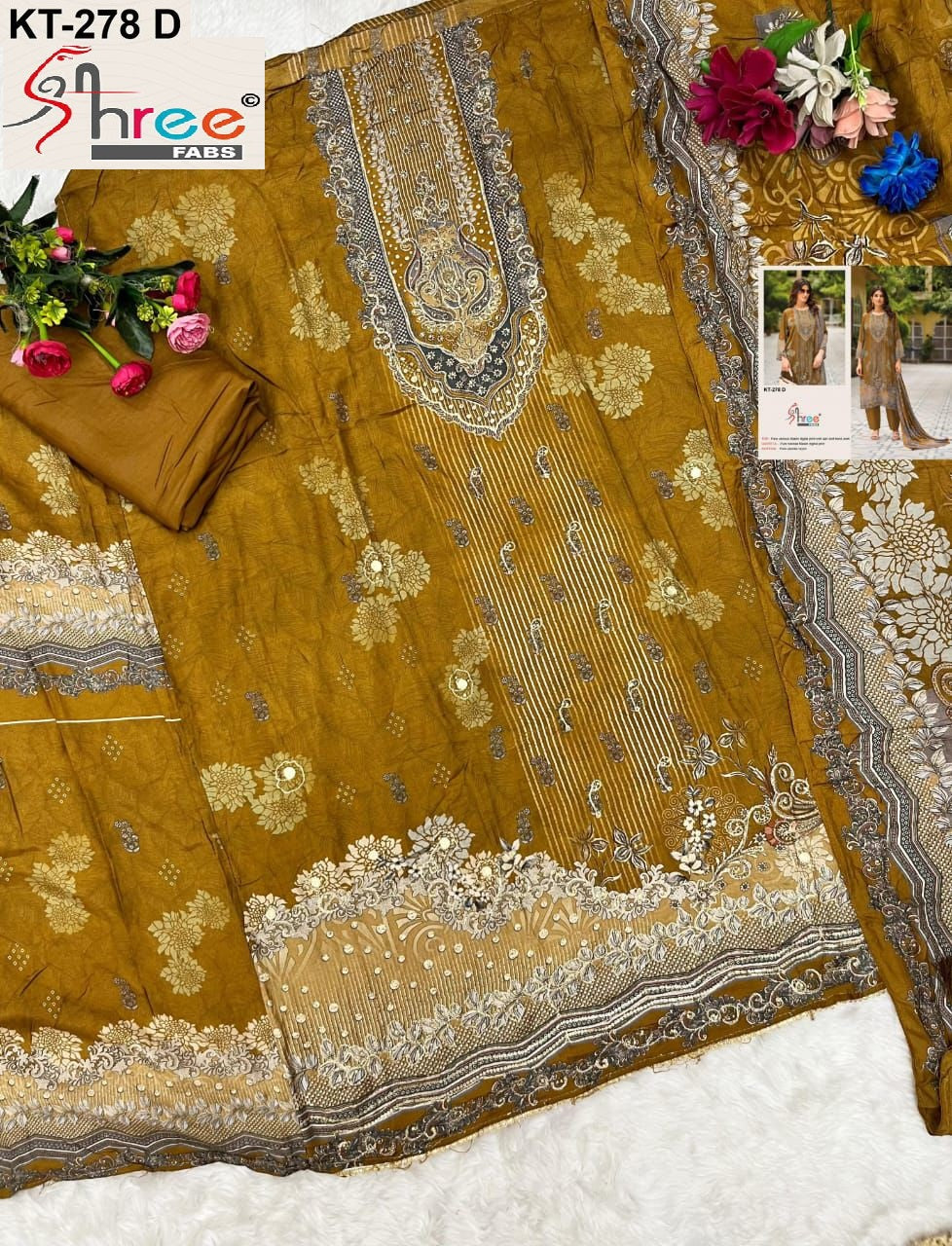 - Kt-278 D Shree Fabs Printed Karachi Unstitched Suits Dealer Ahmedabad Surat Wholesale Gujarat India Lowest Price Best Quality Buy Purchase Shipping Kurta Salwaar Kameez Also free Cash on delivery
