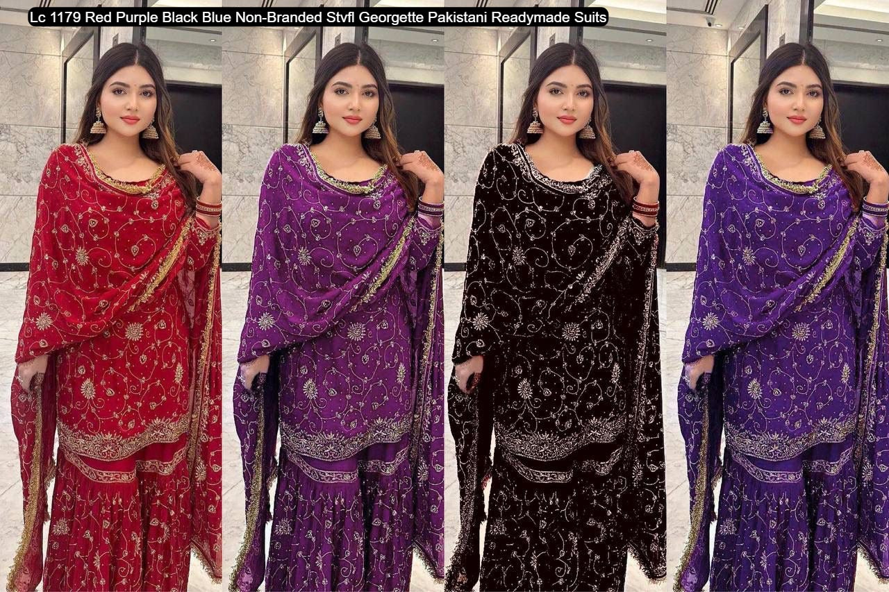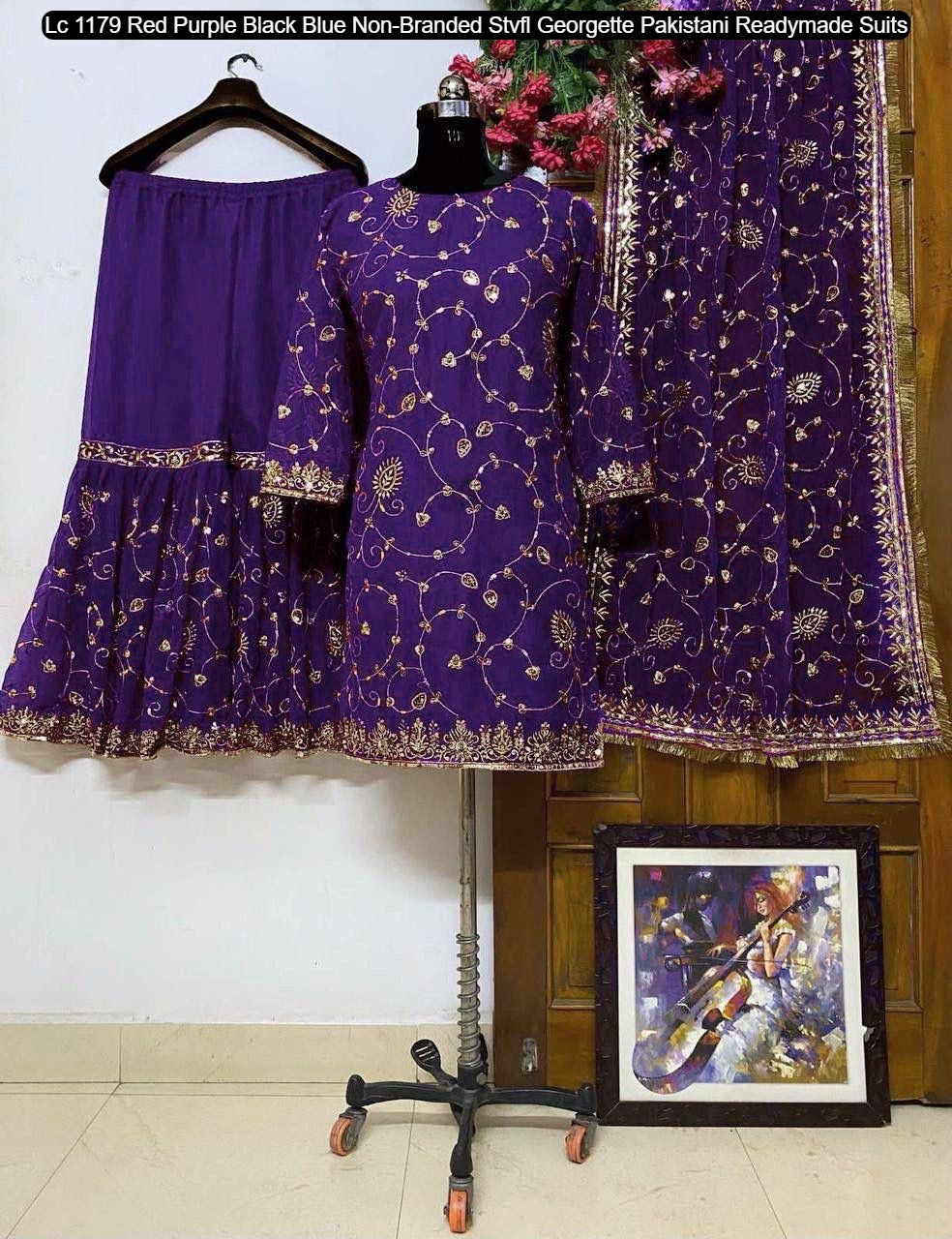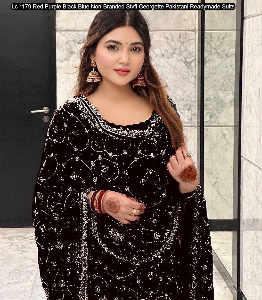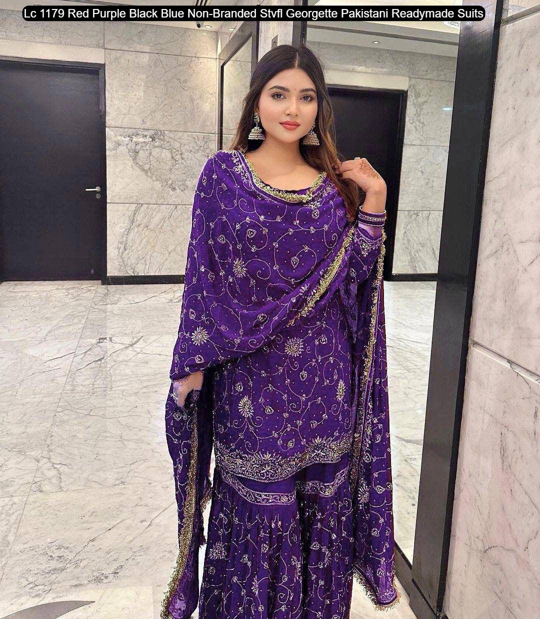 - Lc 1179 Red Purple Black Blue Non-Branded Stvfl Georgette Pakistani Readymade Suits Dealer Ahmedabad Surat Wholesale Gujarat India Lowest Price Best Quality Buy Purchase Shipping Kurta Salwaar Kameez Also free Cash on delivery