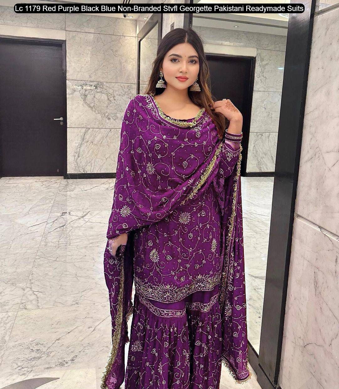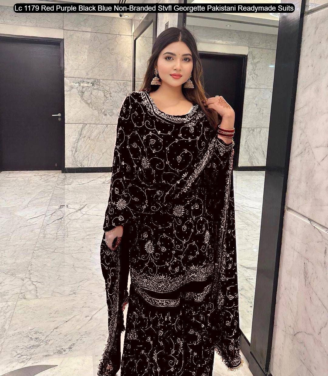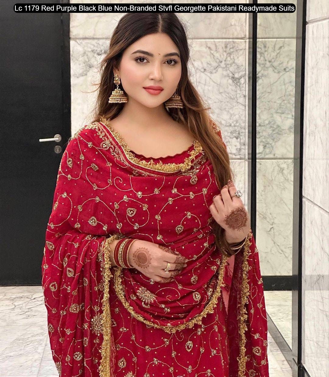 - Lc 1179 Red Purple Black Blue Non-Branded Stvfl Georgette Pakistani Readymade Suits Dealer Ahmedabad Surat Wholesale Gujarat India Lowest Price Best Quality Buy Purchase Shipping Kurta Salwaar Kameez Also free Cash on delivery