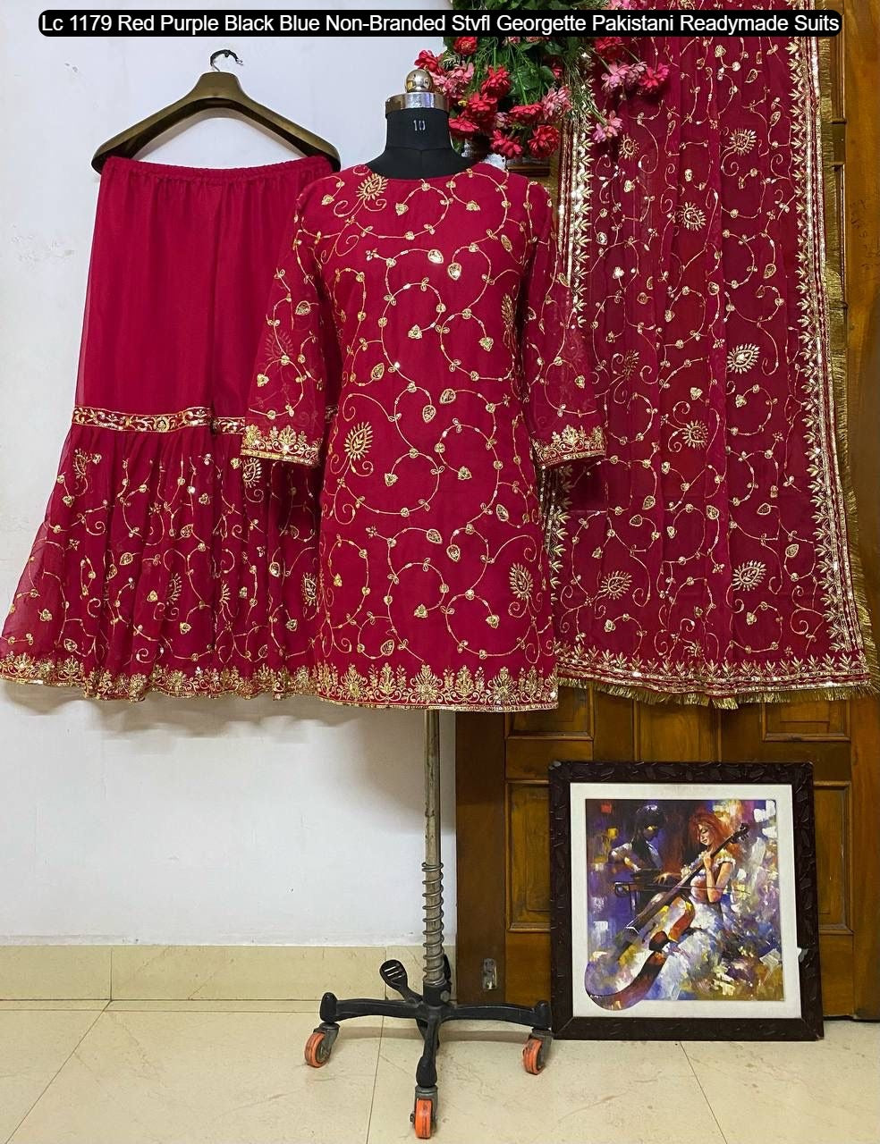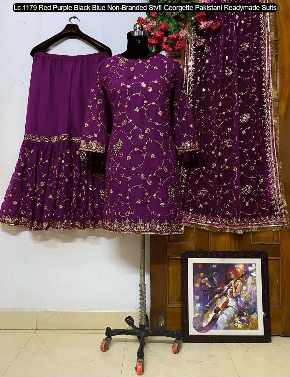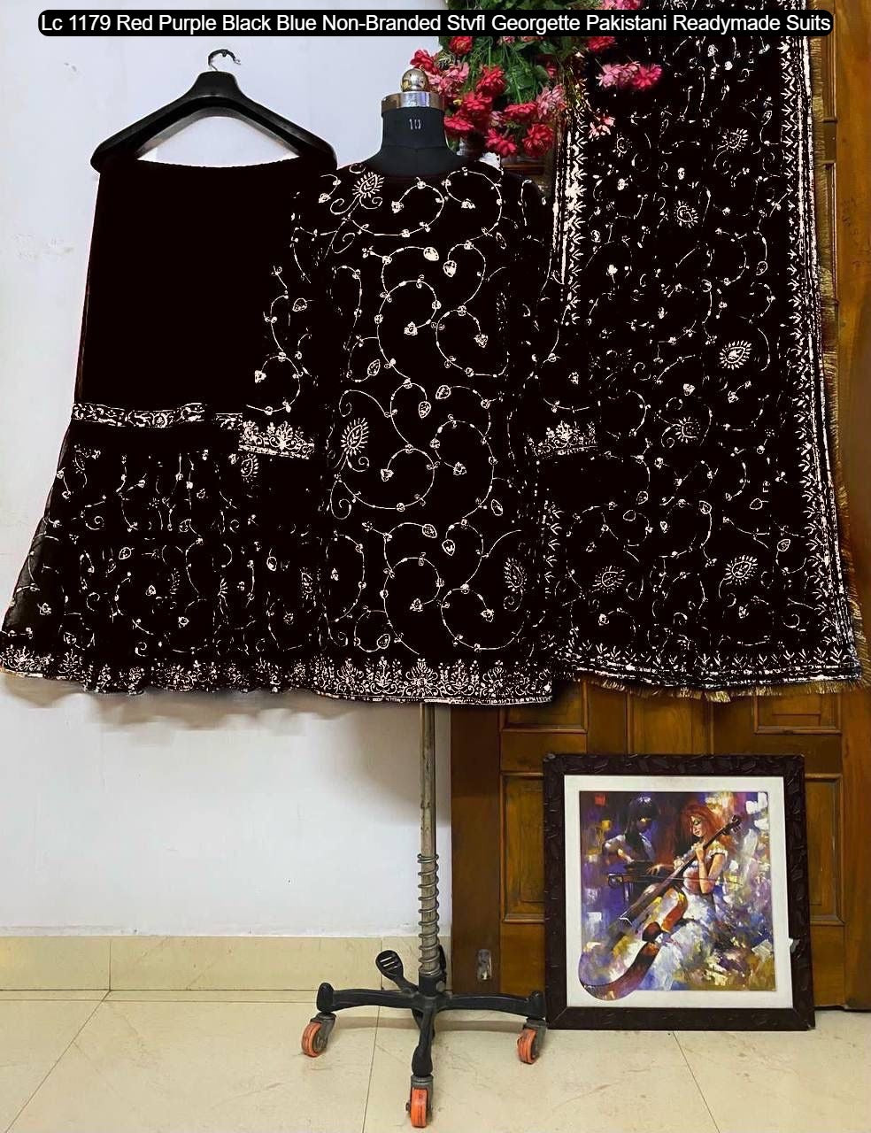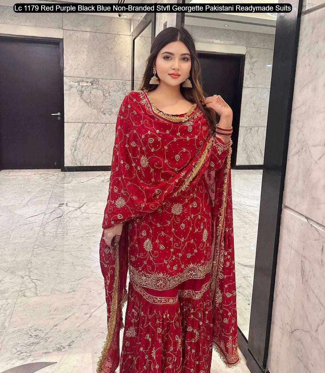 - Lc 1179 Red Purple Black Blue Non-Branded Stvfl Georgette Pakistani Readymade Suits Dealer Ahmedabad Surat Wholesale Gujarat India Lowest Price Best Quality Buy Purchase Shipping Kurta Salwaar Kameez Also free Cash on delivery